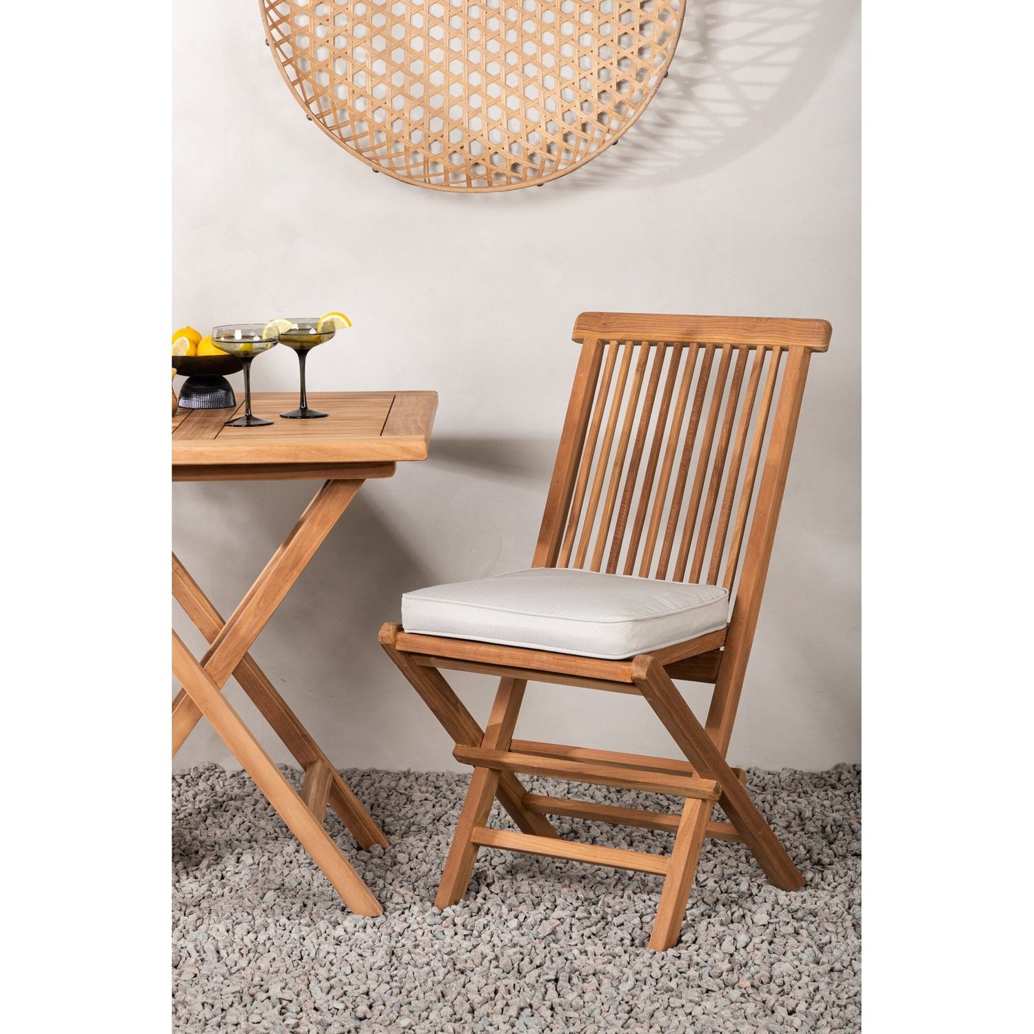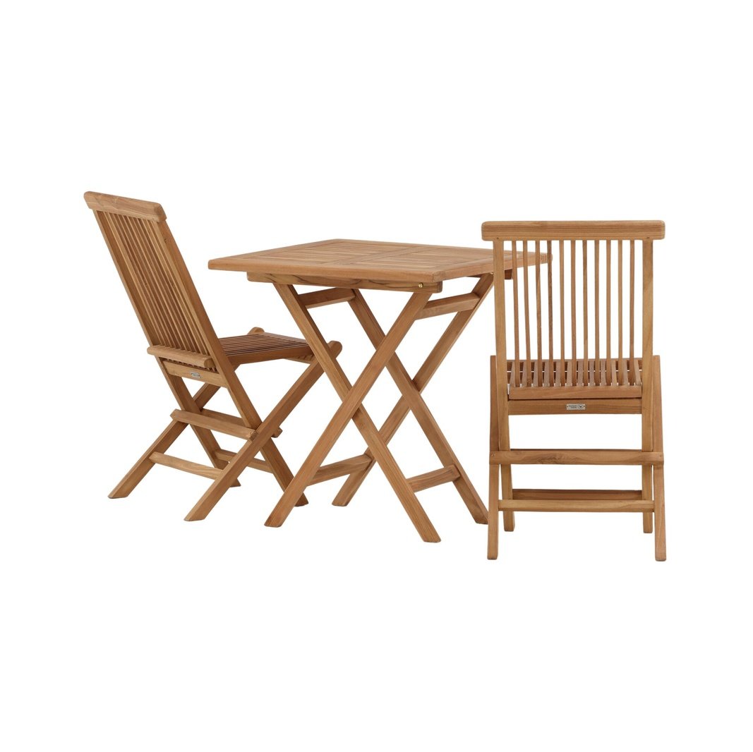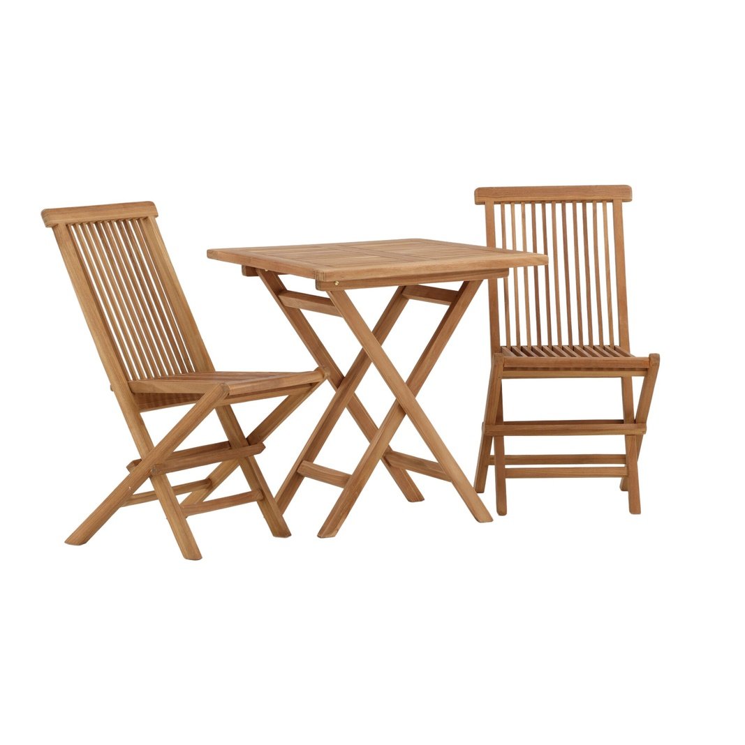 En koselig kafégruppe fra Kenya-serien er akkurat det uteplassen din trenger! Det pene bordet er sammenleggbart og kommer i vakkert teaktre. Med sitt klassiske håndverk og glatte design er bordet enkelt å matche og enkelt å flytte rundt. Mål: 7x7 cm. Stolene kan foldes i flere posisjoner og har armlener for ekstra komfort. Også laget av smakfullt teak i et rillet design som gir et veldig moderne inntrykk. La tiden her være dagens høydepunkt!
