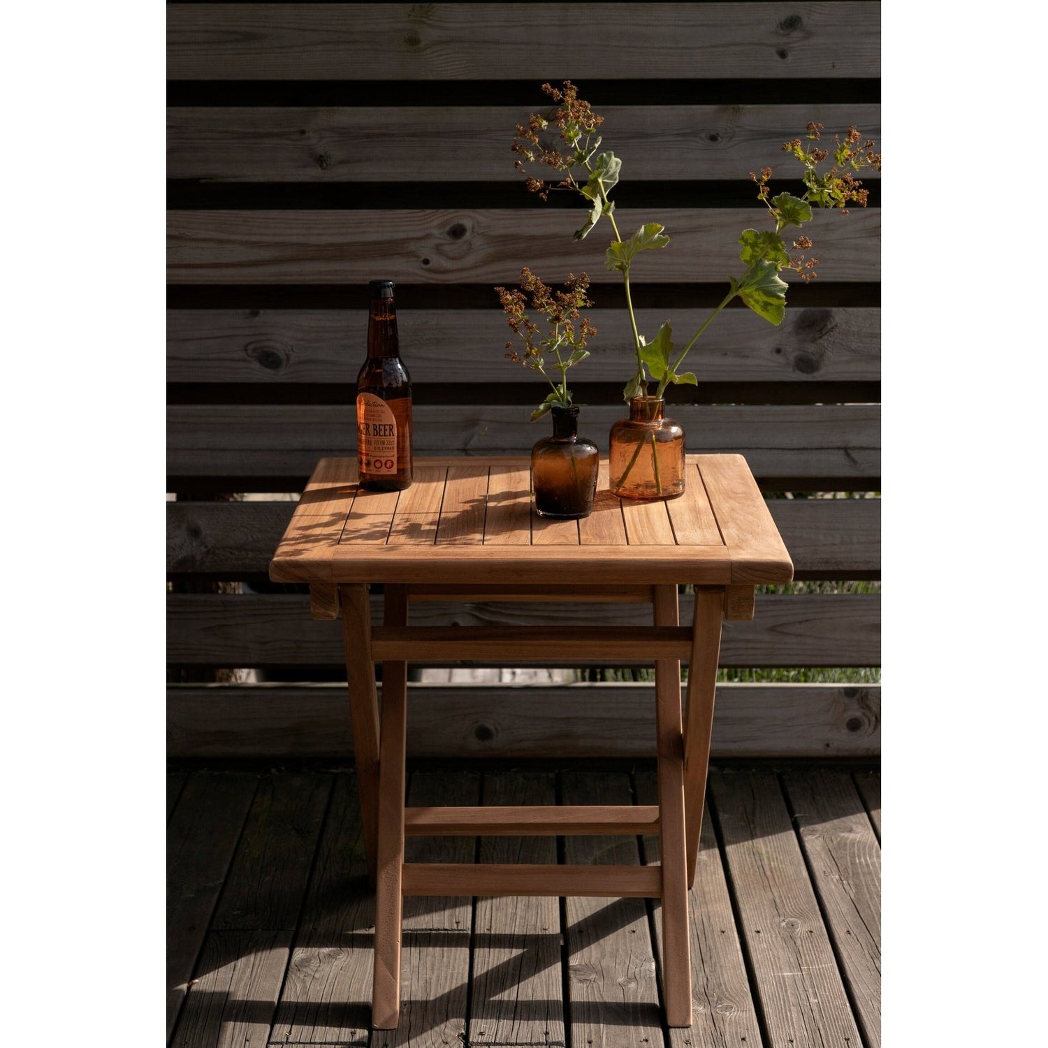 Den perfekte kafébordet for sommerfrokoster eller solfylte kaffegrinder. Kenya er et firkantet kafébord i stilig teak. Like praktisk som iøynefallende, gir bordet et innbydende inntrykk og vil sikkert forgylle nattelivet denne sommeren. Følg våre vedlikeholdsråd for tips om hvordan du kan få bordet til å vare lenge. Pleieanbefalinger: Våre teakmøbler er laget av sertifisert teak som dyrkes til formålet og ikke ødelagt fra delikate regnskoger. Som et av de mest holdbare treslagene inneholder teak mye olje som vanligvis trengs for at materialet ikke sprekker. Fordi treet inneholder mye olje naturlig, trenger ikke møblene å impregneres så ofte.
