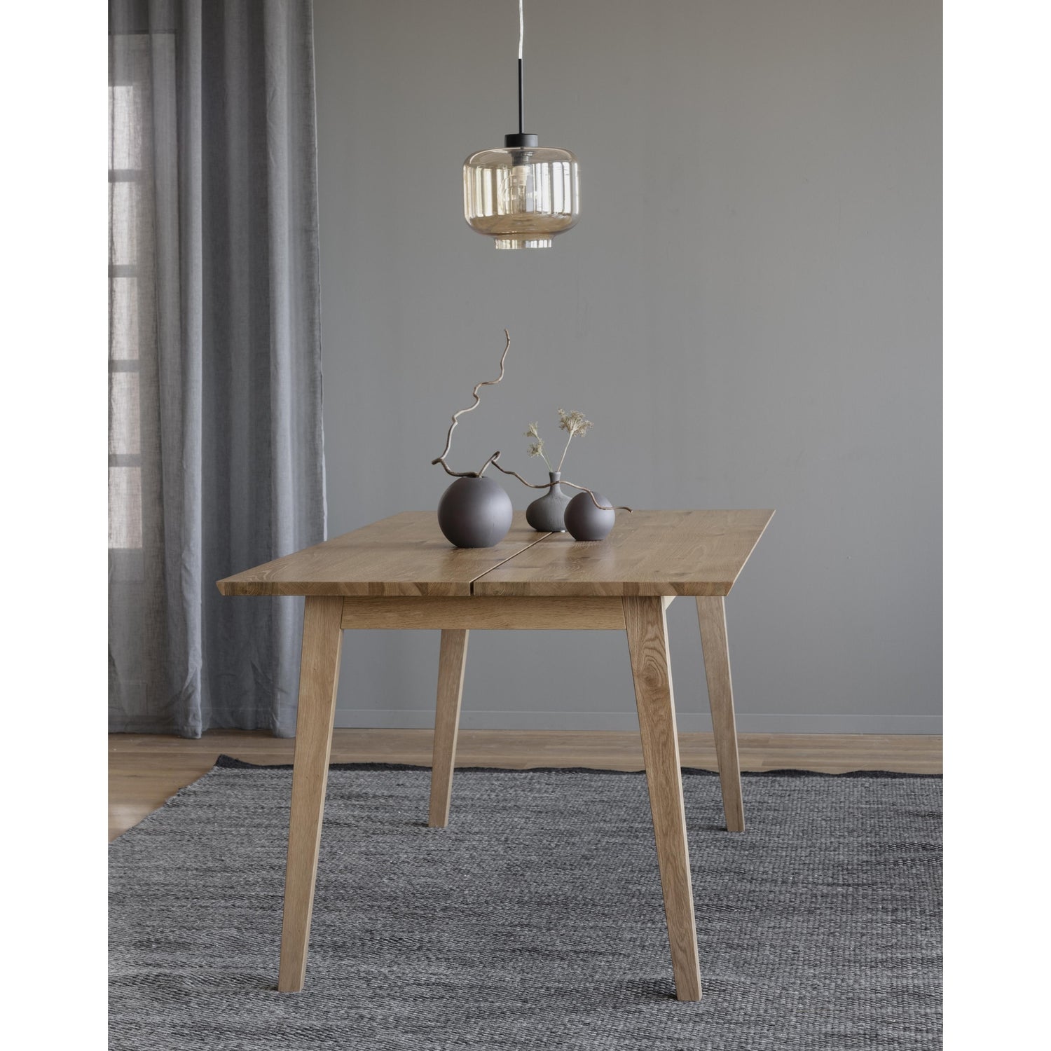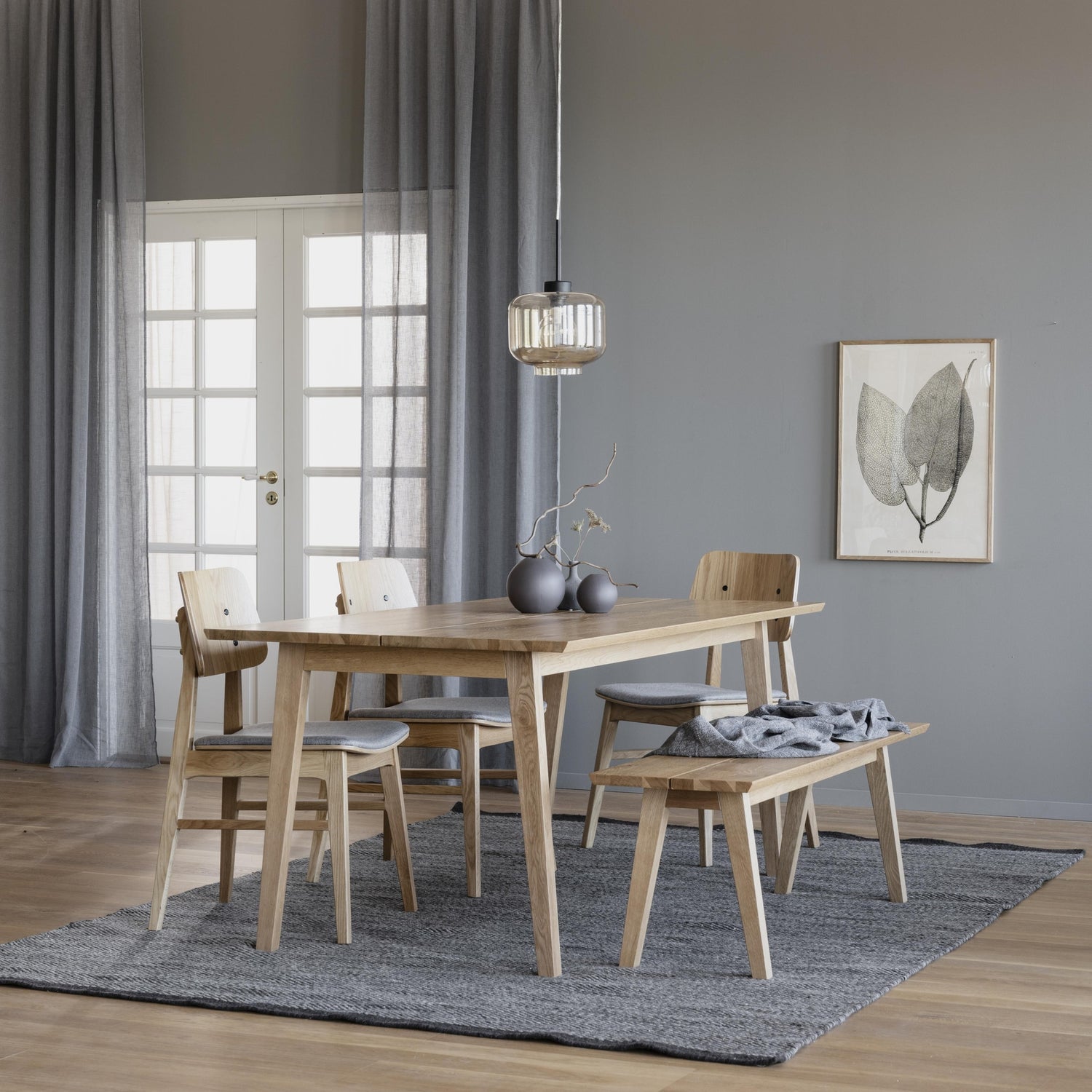 Oppdag Melfort spisebord på 180 cm, laget av børstet villfiner med solide ben. Dette stilige spisebordet er perfekt for både hverdagsbruk og spesielle anledninger. Med muligheten for å forlenge bordet på begge sider ved hjelp av separate tilleggselementer, kan du enkelt tilpasse bordet til antall gjester. Det dekorative to-delte bordplaten gir et moderne preg, samtidig som det er praktisk og funksjonelt. I tillegg til bordet, finnes det en matchende sittebenk i serien, som gir en helhetlig og innbydende atmosfære til ditt spiserom. Melfort spisebord er ikke bare et møbel, men en samlingsplass for familie og venner. Gjør måltidene dine enda mer spesielle med dette elegante og allsidige spisebordet.