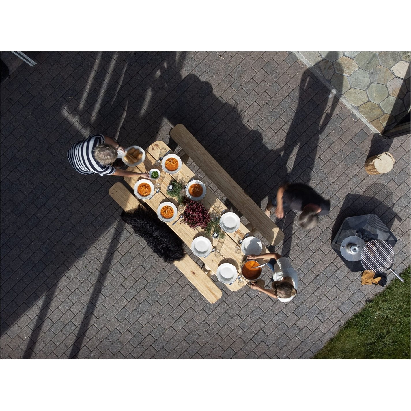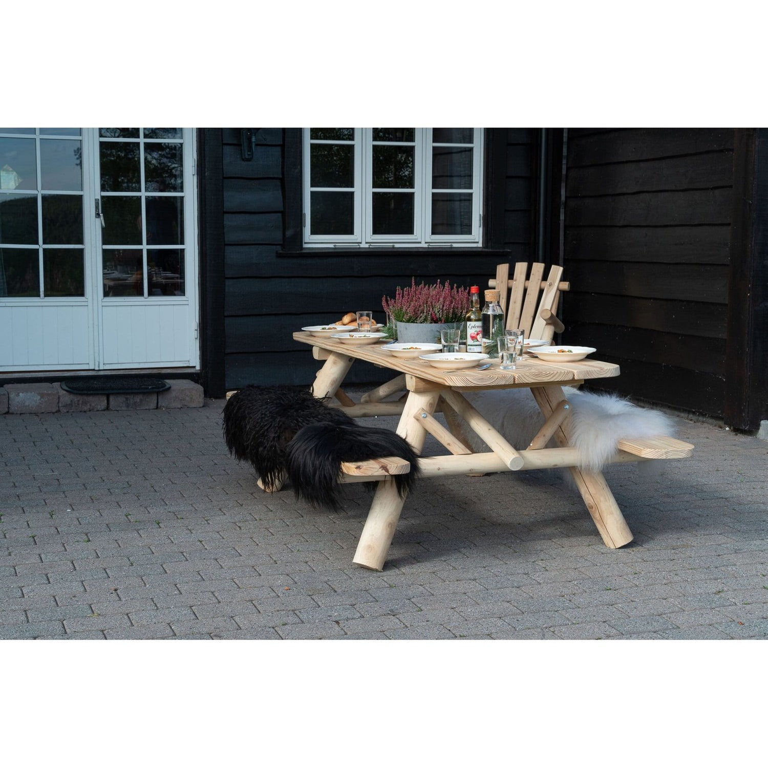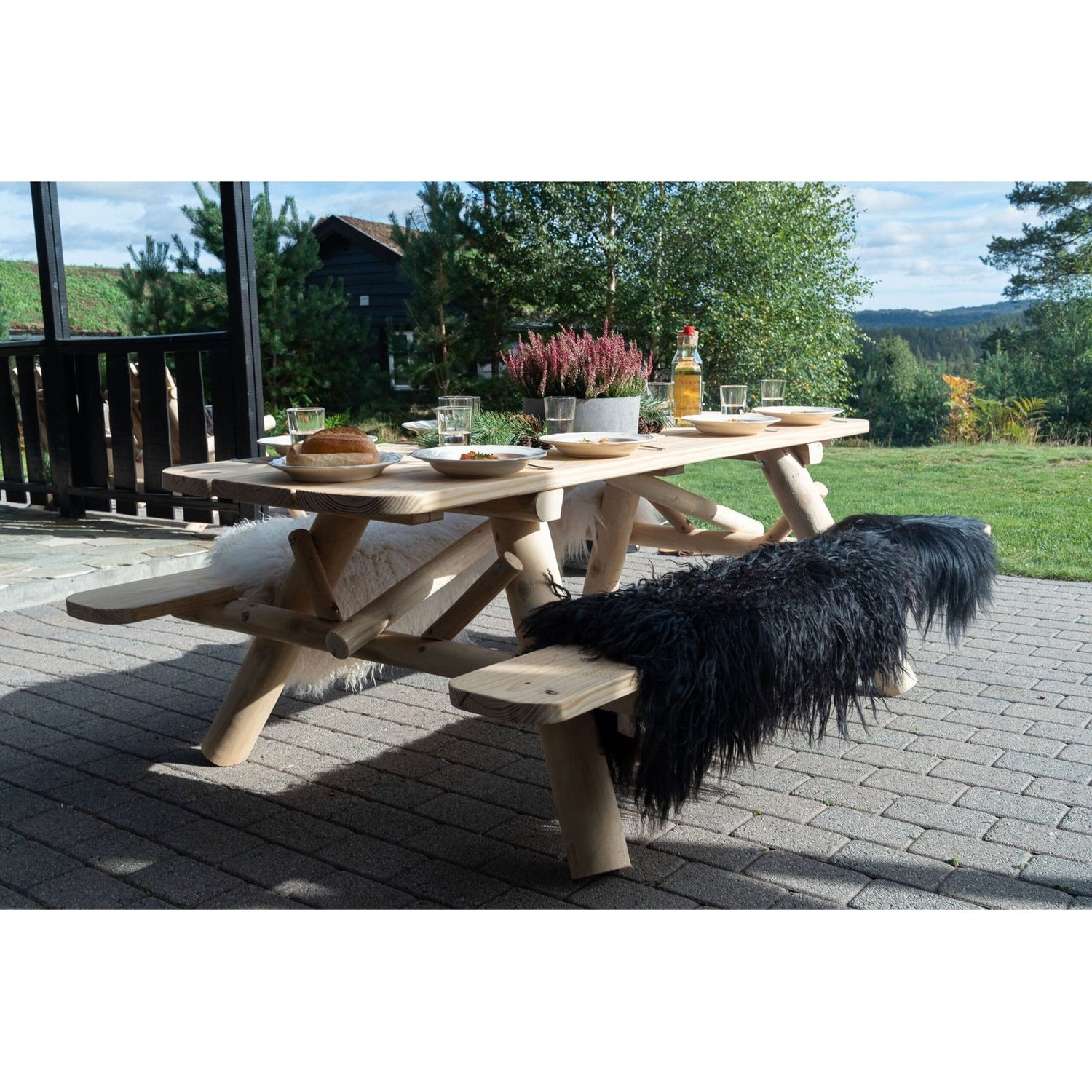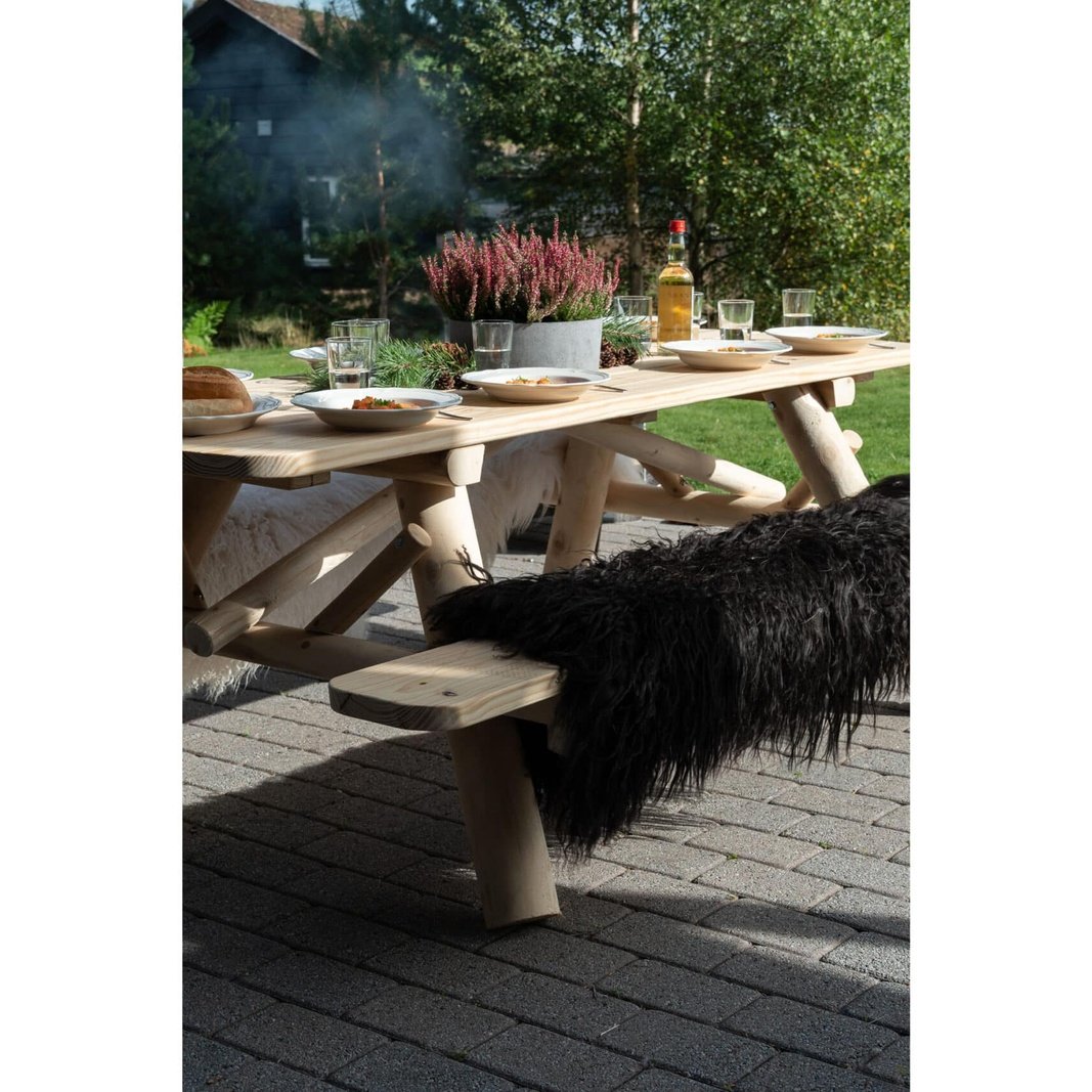 Solid og vakkert piknikbord, for 6-8 personer. Passer i den rustikke hagen, samt ute og inne på fjellhytta. Avrundede bordhjørner. Laget av solid, hvitt sedertre. Over tid vil treverket få en naturlig og vakker sølvgrå patina ved oppbevaring utendørs. Dette gjør ditt møbel helt unikt! Sedertremøbler har lang holdbarhet og er tilnærmet vedlikeholdsfrie. Oljen som finnes i sedertre virker beskyttende mot insekter og slitasje, og treverket er resistent mot råte.