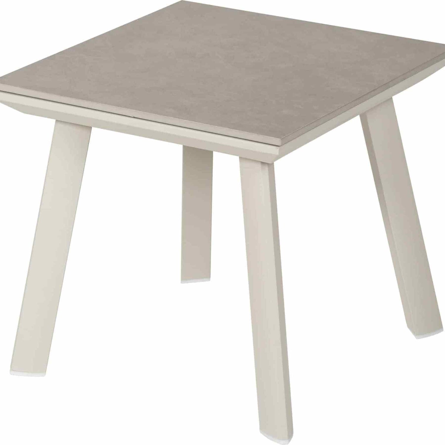 Orlando sidebord er et nett, lite bord til uteplassen. Passer godt som et lite cafebord til Orlando reclinerstol, eller som sidebord til Orlando hjørnesofa. Bordplaten i komposittstein har en melert, varm gråtone og aluminiumsrammen er pulverlakkert i en delikat kremfarge.
