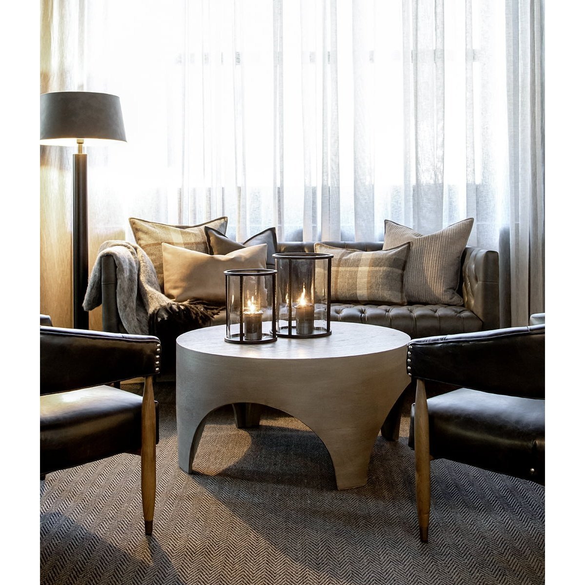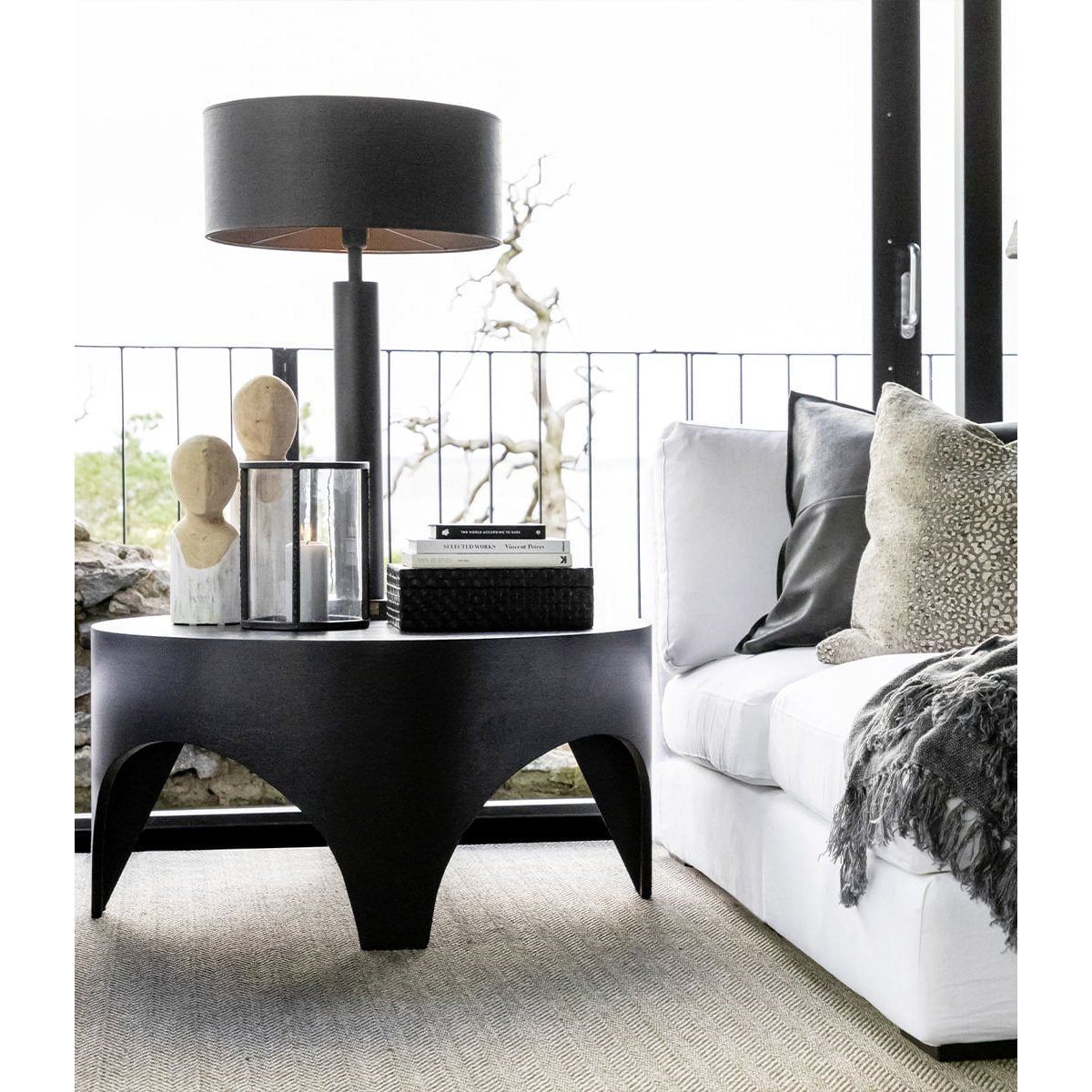 Owen sofabord kombinerer moderne design med robusthet, takket være sitt minimalistiske uttrykk og tydelige trestruktur. Laget av eikefinér, gir det en holdbar overflate som bevarer sitt naturlige utseende. Med en høyde på 45 cm og diameter på 90 cm, passer det perfekt i enhver stue. For optimal vedlikehold, bruk glassbrikker og tørk med en lett fuktig klut. Beskytt møblene med Protect Spraywax.