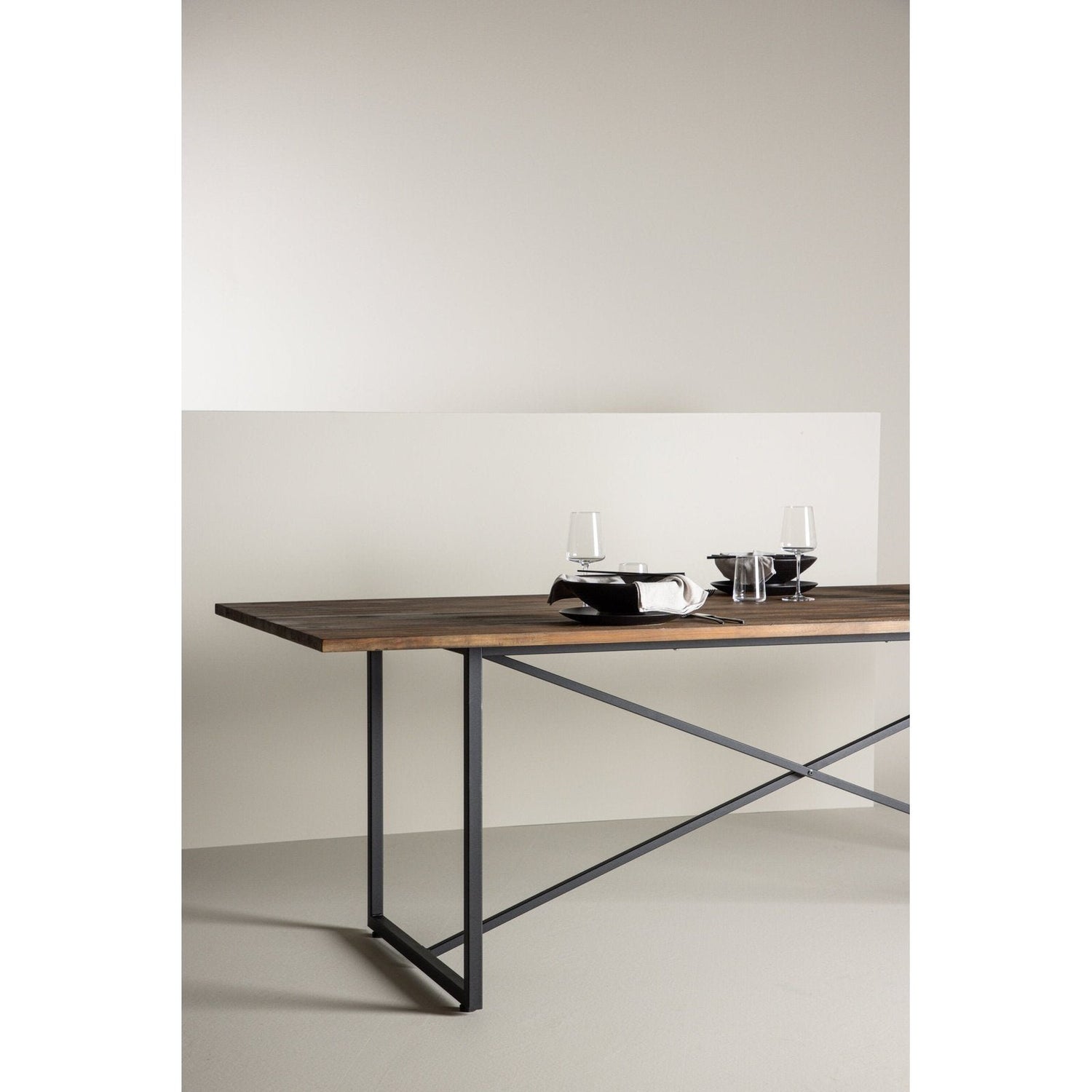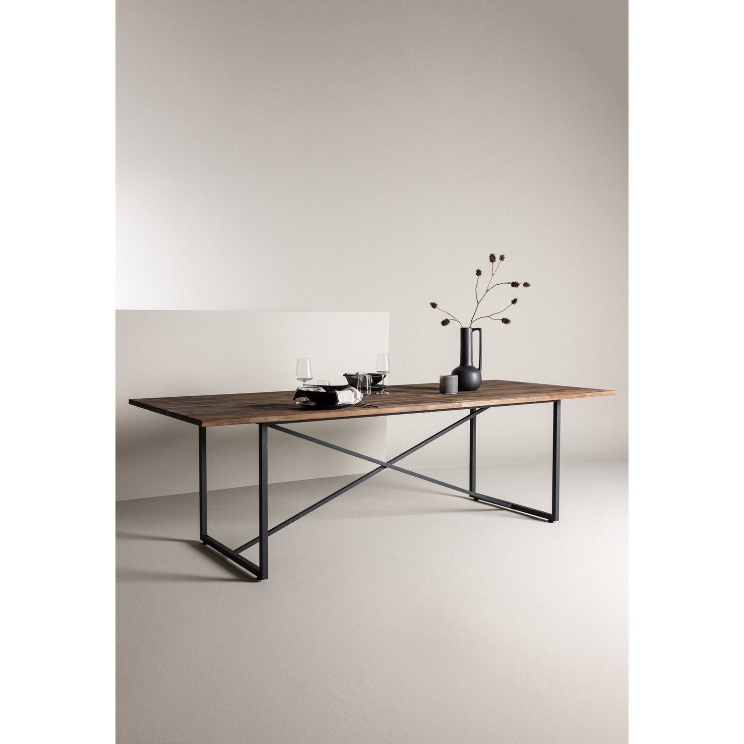 Møblér stuen i varme, jordnære toner med et spisebord fra Padang-serien. Den skandinaviske designen er gjennomtenkt med en rustikk bordplate i teak og smale bordben i metall. Med sitt klassiske, stilige utseende er Padang et fleksibelt, rektangulært spisebord som passer inn i de fleste miljøer og er lett å matche med annen dekor. Skap et sjarmerende midtpunkt for deg og familien din å samles rundt! Pleieanbefaling: For å utføre daglig rengjøring av teakmøbler innendørs, er en tørr klut den beste løsningen. Ved eventuelle flekker, bruk en fuktig klut, ikke bløt - og tørk umiddelbart. Både løsningsmidler og blekemidler bør unngås da det kan ødelegge te-overflaten. Du kan gjerne beskytte overflaten med glassbrikker for å unngå flekker fra sølt væske og varme gjenstander.