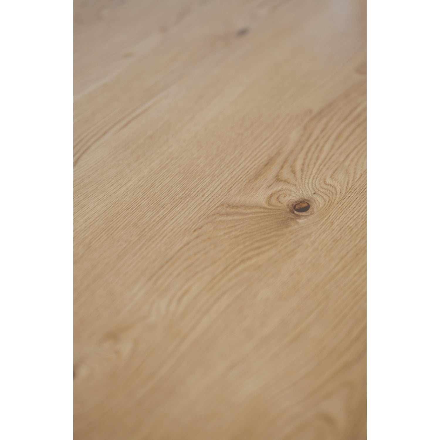 Bordplaten er semi-solid, med en topp laget av 3 mm solid eikefiner, noe som gir enestående holdbarhet og kvalitet. Med FSC®-sertifisering kan du være trygg på at treverket er bærekraftig og ansvarlig hentet. Hver bordplate har synlige kvister, noe som gir hvert bord en unik og naturlig karakter.