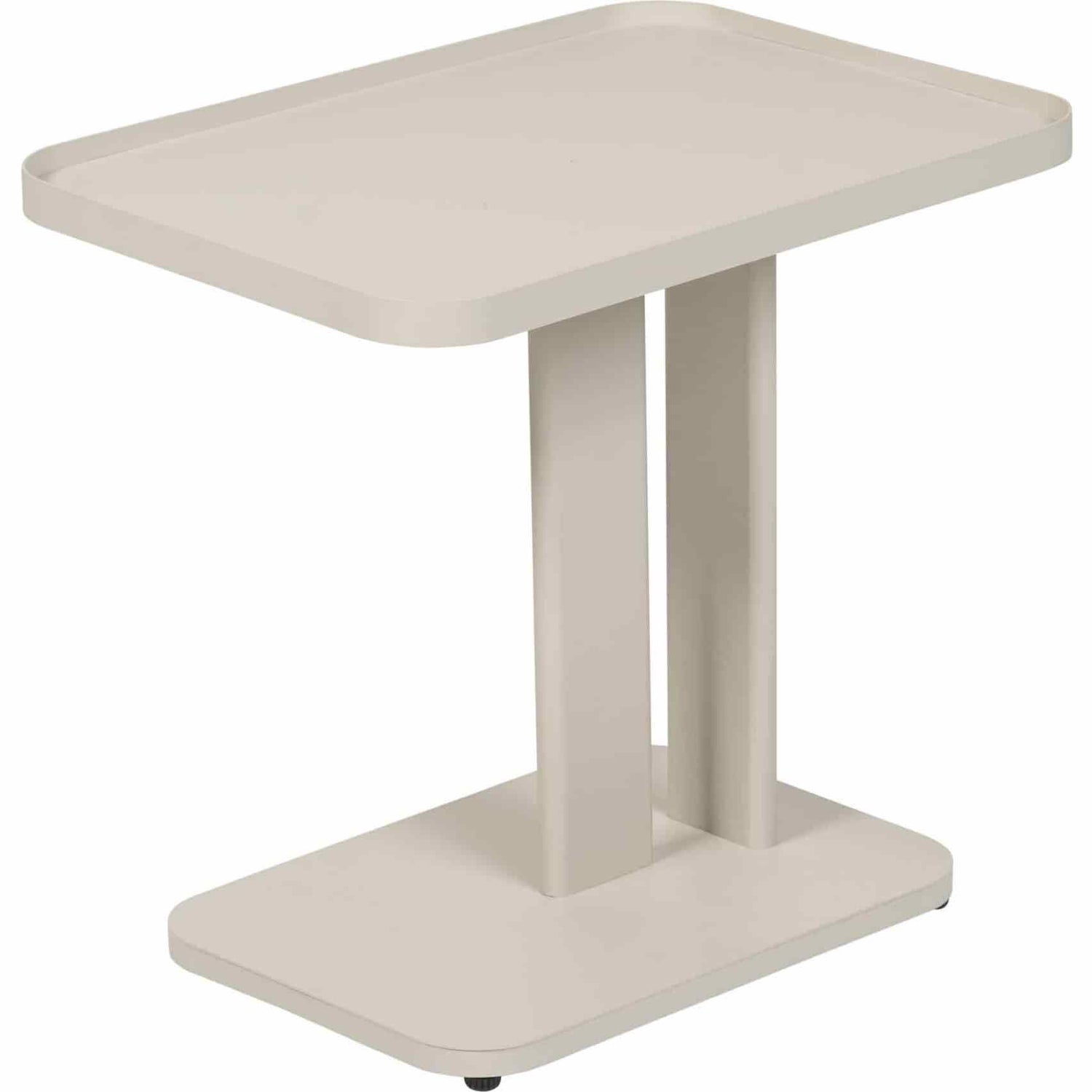 Ridge sidebord til uteplassen har et moderne og lekent design. Passer perfekt som cafebord til to lenestoler, som sidebord til en sofa, eller som praktisk avlastningsbord til solseng. Laget av pulverlakkert aluminium i en vakker dyp grønnfarge, er dette et robust og holdbart møbel som krever lite vedlikehold. Et stilig tilskudd til uteplassen din som tilfører karakter og personlighet. 50,5x35,5 H: 46,5