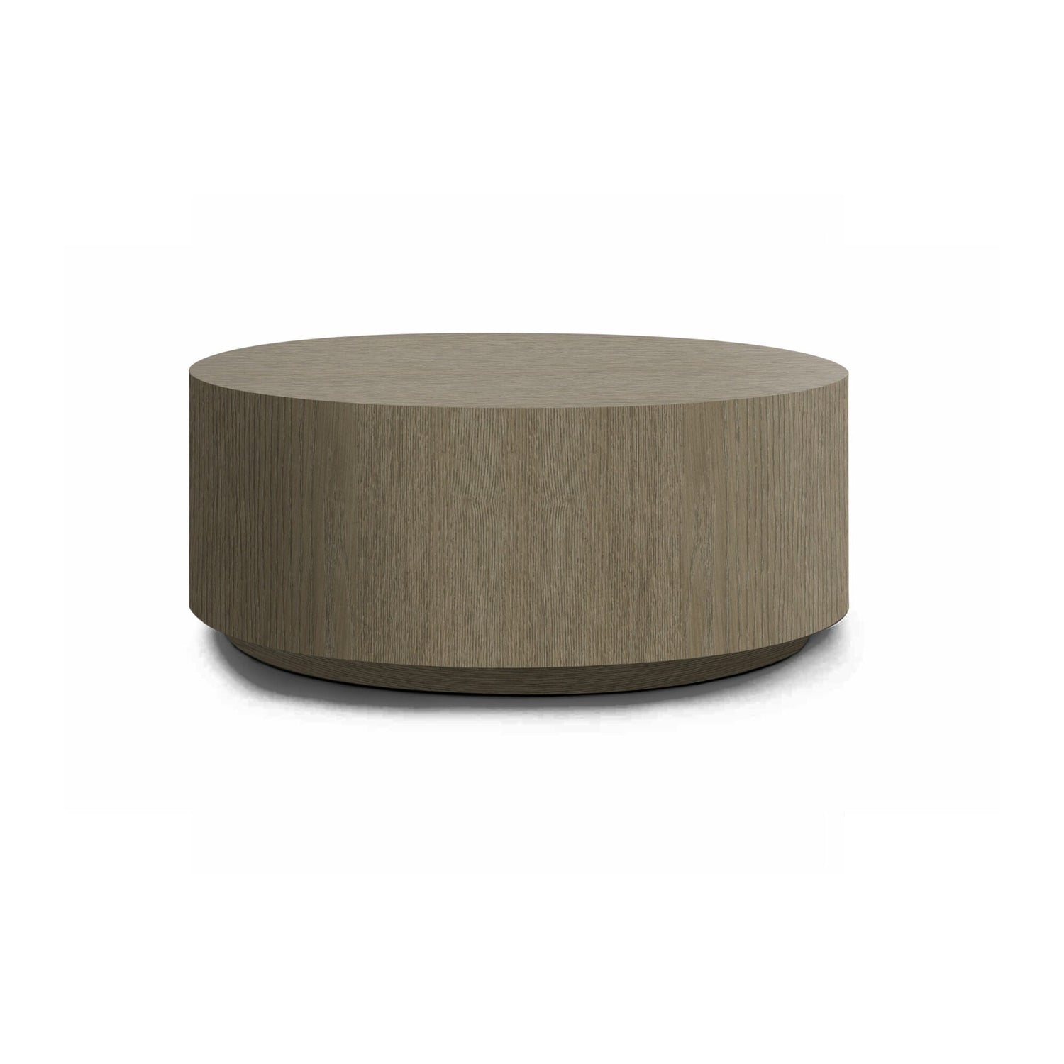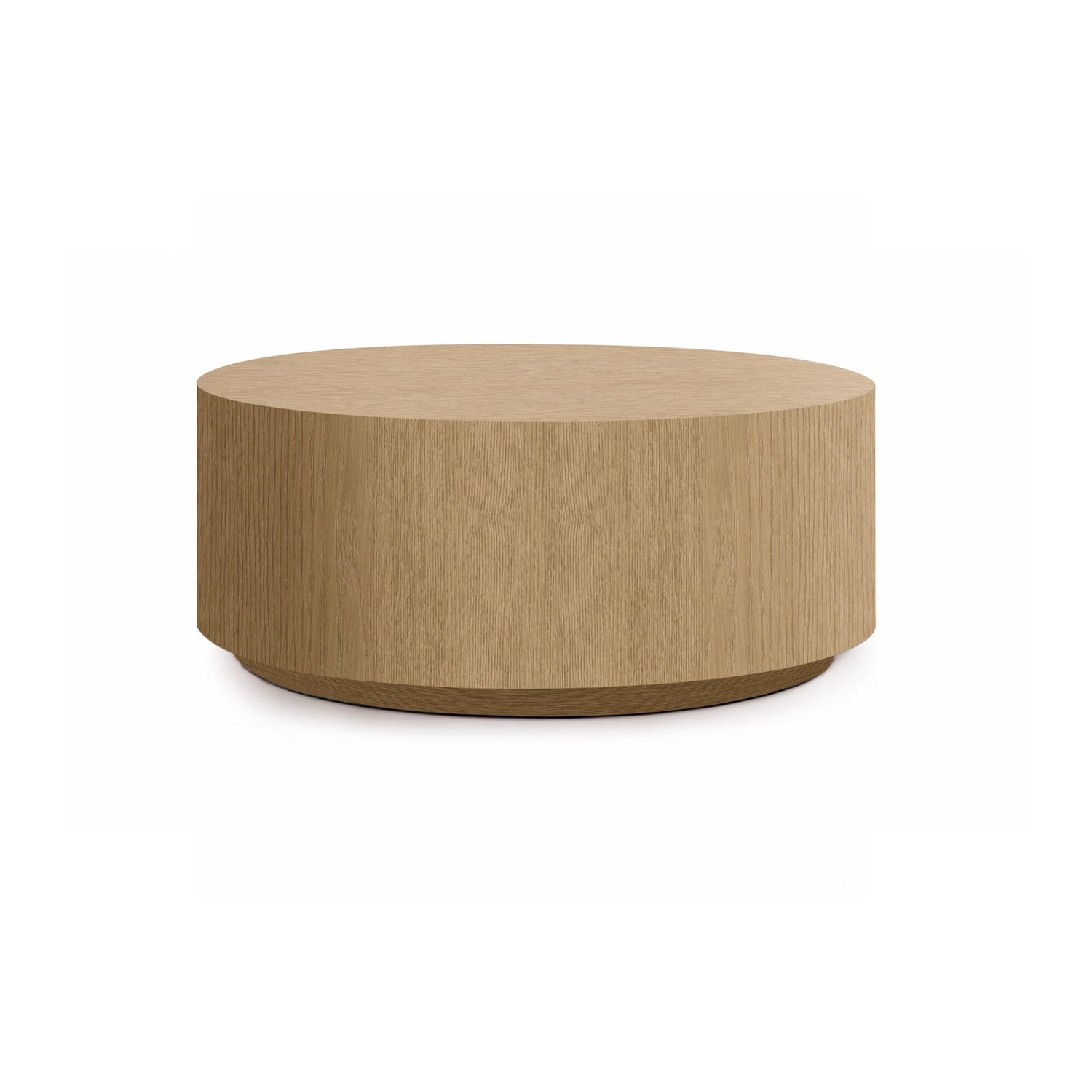 Qube er et rundt salongbord med bordplate i grov eikefinér og en beiset, lakkert overflate som fremhever den naturlige strukturen i treet. Den runde formen gir et mykt og harmonisk uttrykk, perfekt som midtpunkt i stuen.