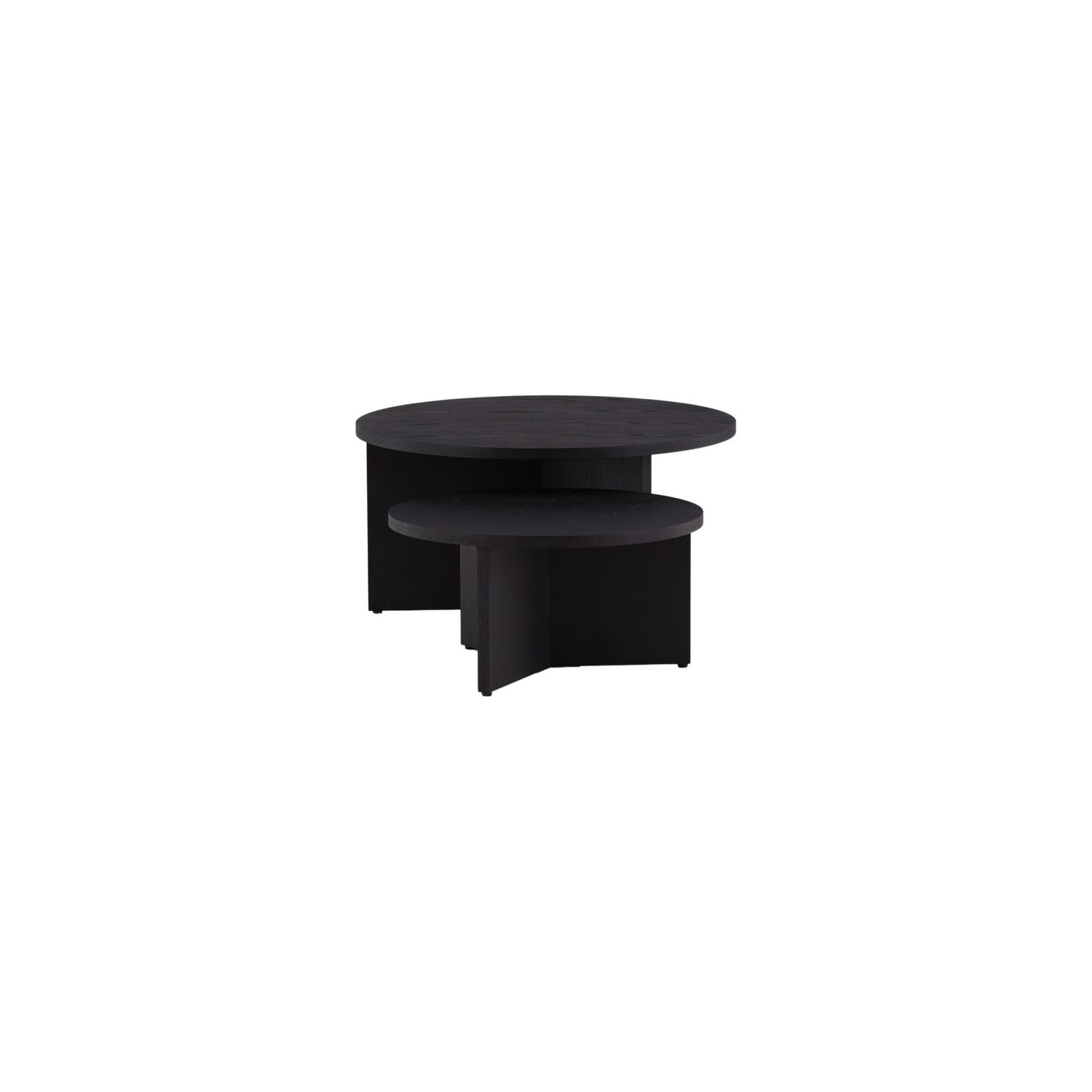Oppdag Saltö kaffebordsett med to elegante, svarte runde bord i ulike størrelser (85 cm og 65 cm). Stilrent, holdbart i MDF og finer, perfekt for moderne hjem. Legg til sofistikert eleganse og funksjonalitet i stuen din med Saltö!
