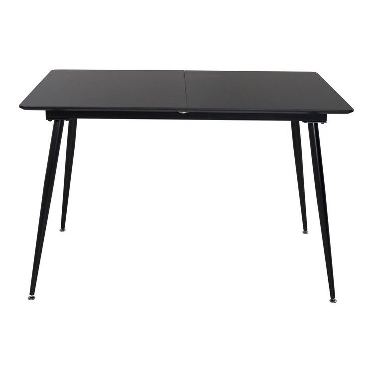 Uttrekkbart spisebord laget av MDF og metall. Bordets rette og stilige design gjør at det passer inn i de fleste hjem. Kle deg opp eller ned ved å kombinere bordet med ulike typer spisestoler. Her får du et fint spisebord som passer like bra til hverdags som til fest. Pleietips! MDF-plater som er malt eller lakkert er sensitive for riper og skader. Vær derfor forsiktig med platene for å unngå dette. Overflater malt med lakk eller maling har en pigmentering som gir en ikke-dekkende gjennomsiktig overflate. Matvarer som brus, rødvin og kaffe inneholder fargestoffer som lakken er ekstra sensitiv for.