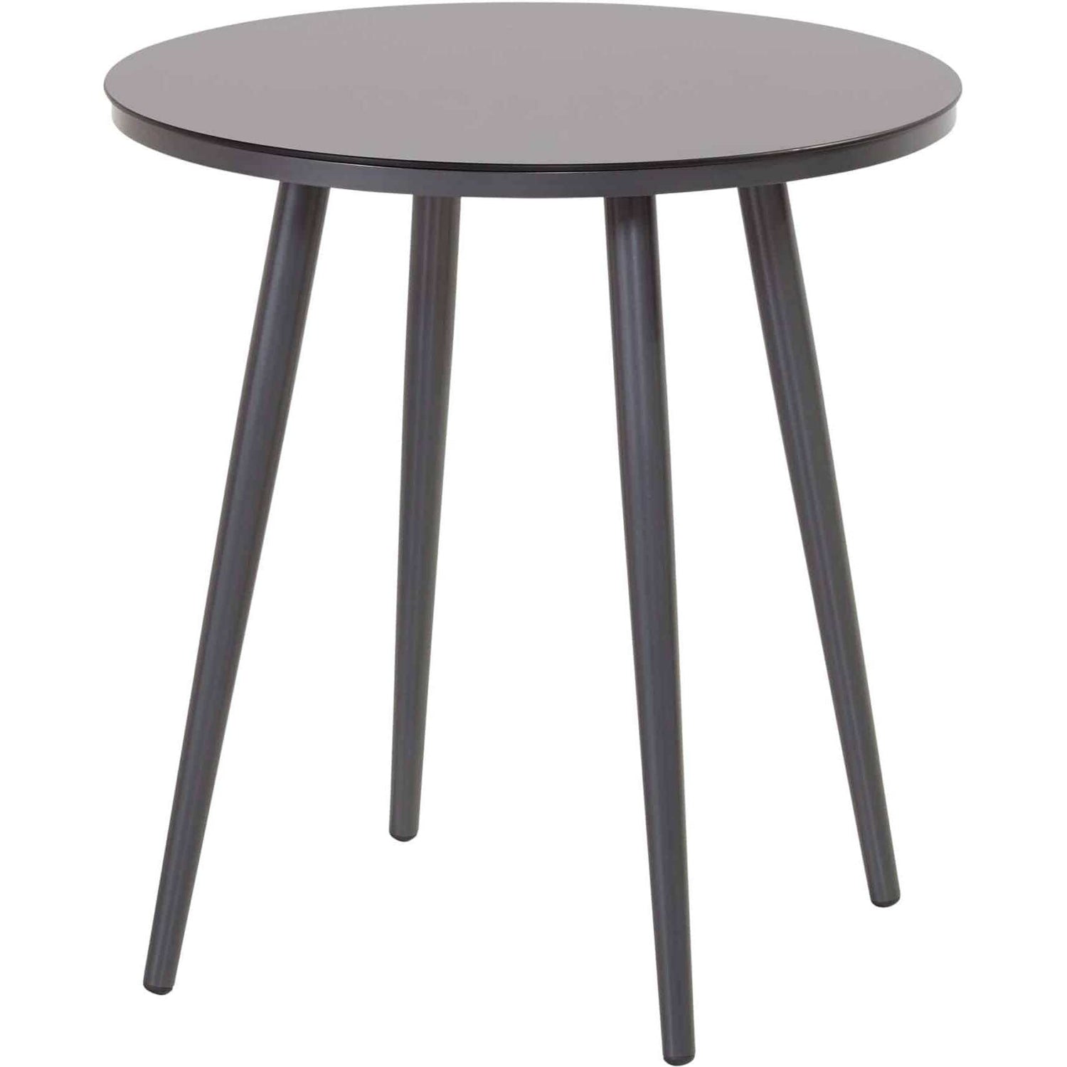 Kafébord i sort aluminium med grå HPL-bordplate (antrasitt). Perfekt til uteplassen, kompatibelt med Sophie-stoler. Værbestandig, lett å vedlikeholde og ideelt for utendørs bruk. Oppgrader uteområdet med stil og holdbarhet!