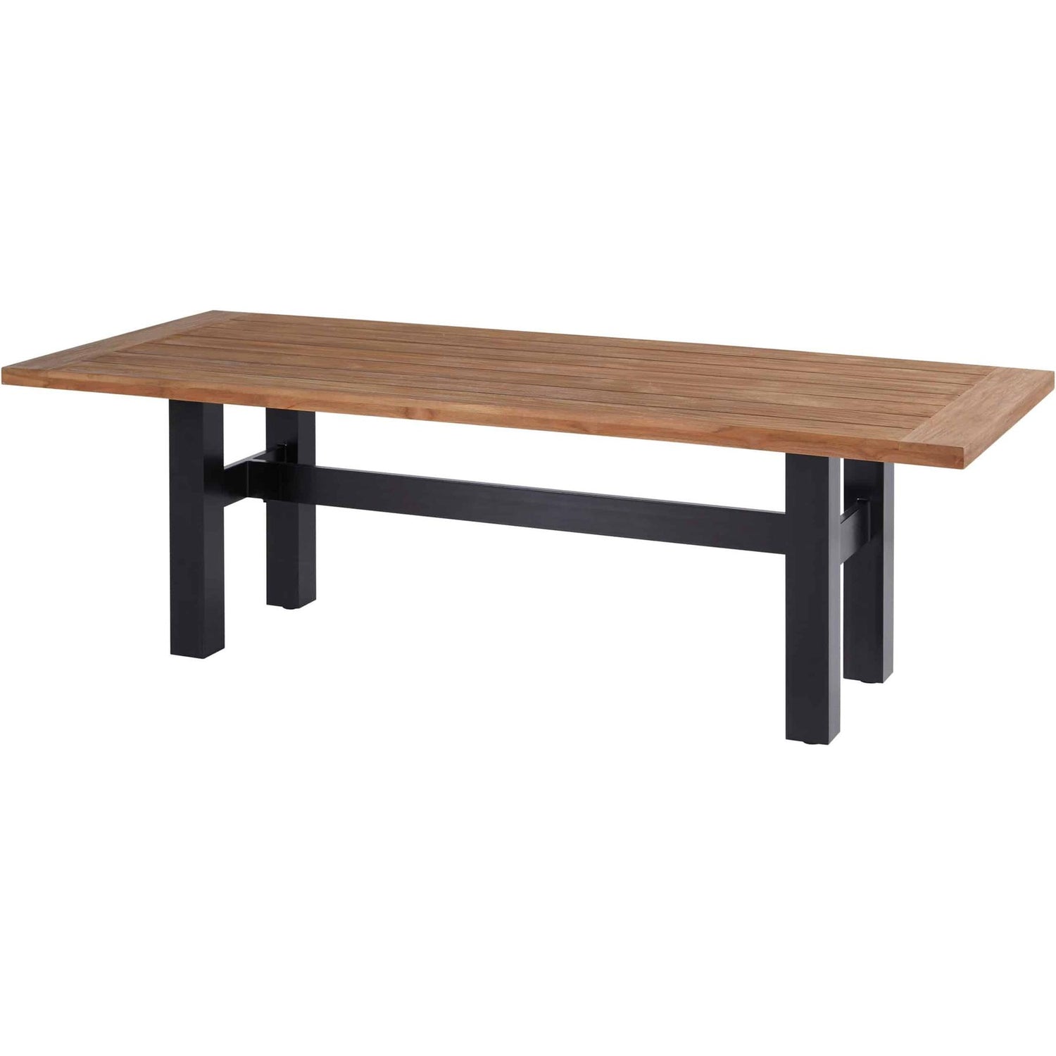 Stilfult og robust spisebord med bordplate i resirkulert, sertifisert teak. H-rammen på de sortlakkerte bena gir bordet både en stilig look, men også god stabilitet. Passer perfekt med for eksempel Sophie Yasmani-benk og tre Sophie-stoler i én eller flere farger. Bordplaten er innsatt med en pigmentert olje, og bør etterbehandles med Hartman Teak Protector Vintage Brown med jevne mellomrom.