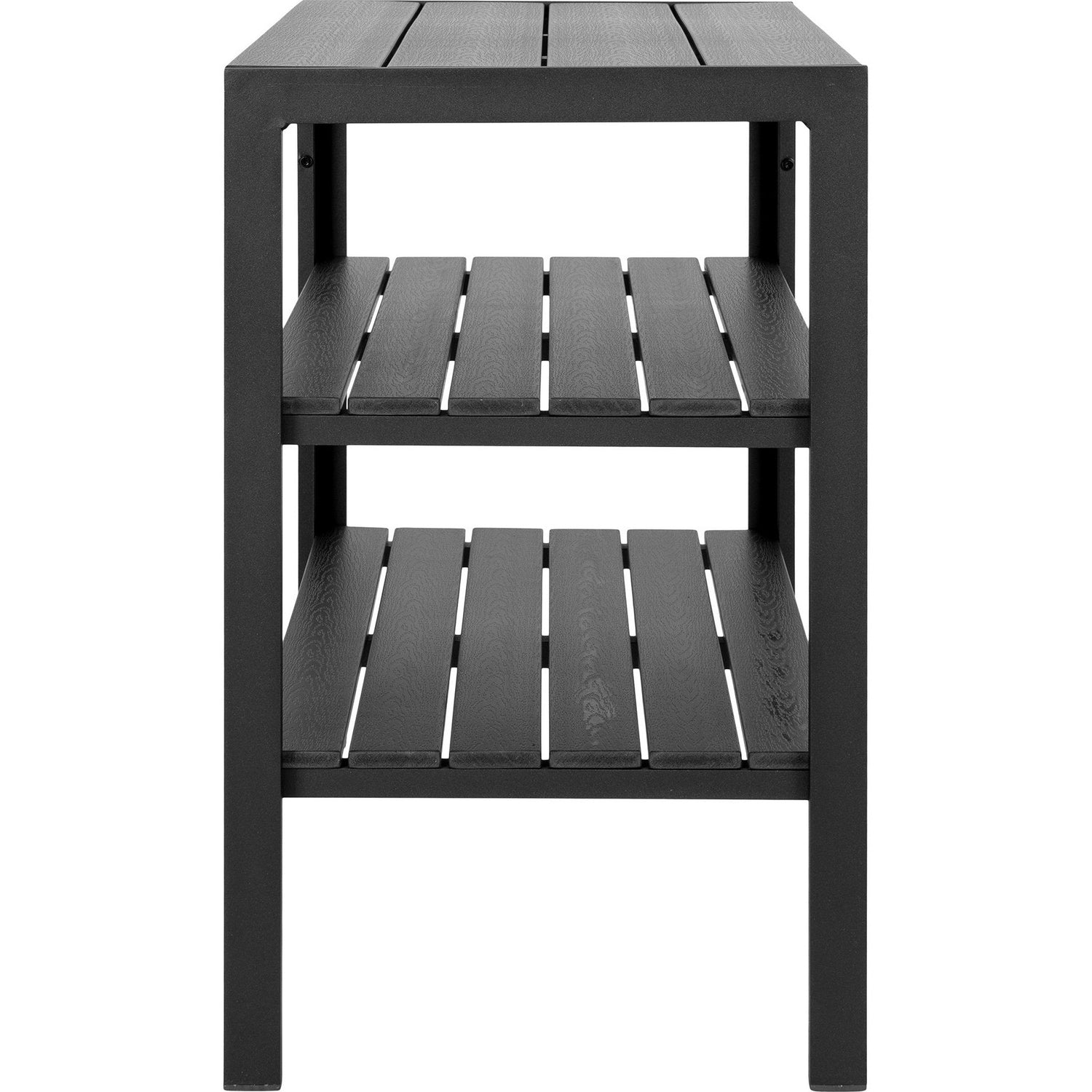 Denne elegante serveringsvognen kombinerer funksjonalitet og stil, og er et ideelt tillegg til ethvert hjem eller uteområde. Laget av slitesterk aluminium og nonwood-materiale, er den designet for å tåle daglig bruk og ulike værforhold. Vognen har tre praktiske hyller som gir rikelig med plass til servering av mat og drikke, eller til oppbevaring av nødvendige gjenstander. Med sitt moderne og minimalistiske design passer den perfekt inn i både klassiske og moderne omgivelser. De robuste hjulene gjør det enkelt å flytte vognen dit du trenger den, enten det er til en middag på terrassen eller en sammenkomst i stuen. Dette er en serveringsvogn som kombinerer funksjon og estetikk på en utmerket måte.