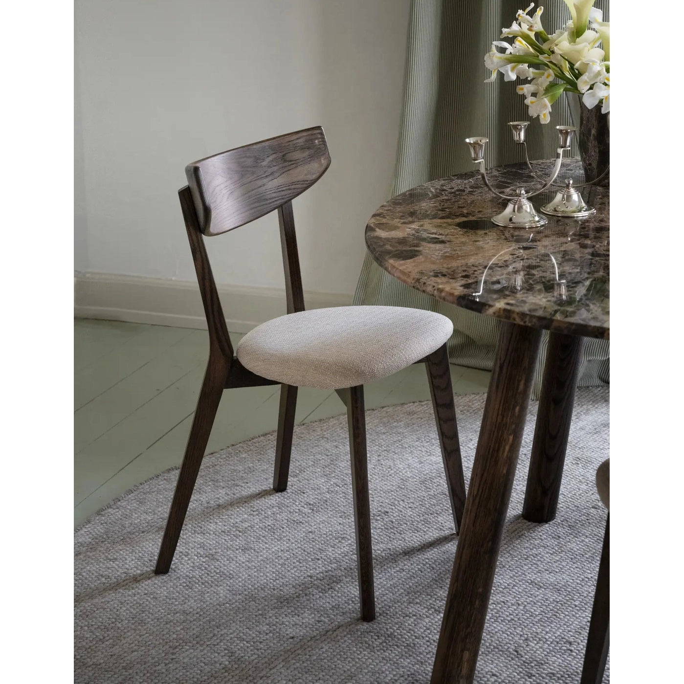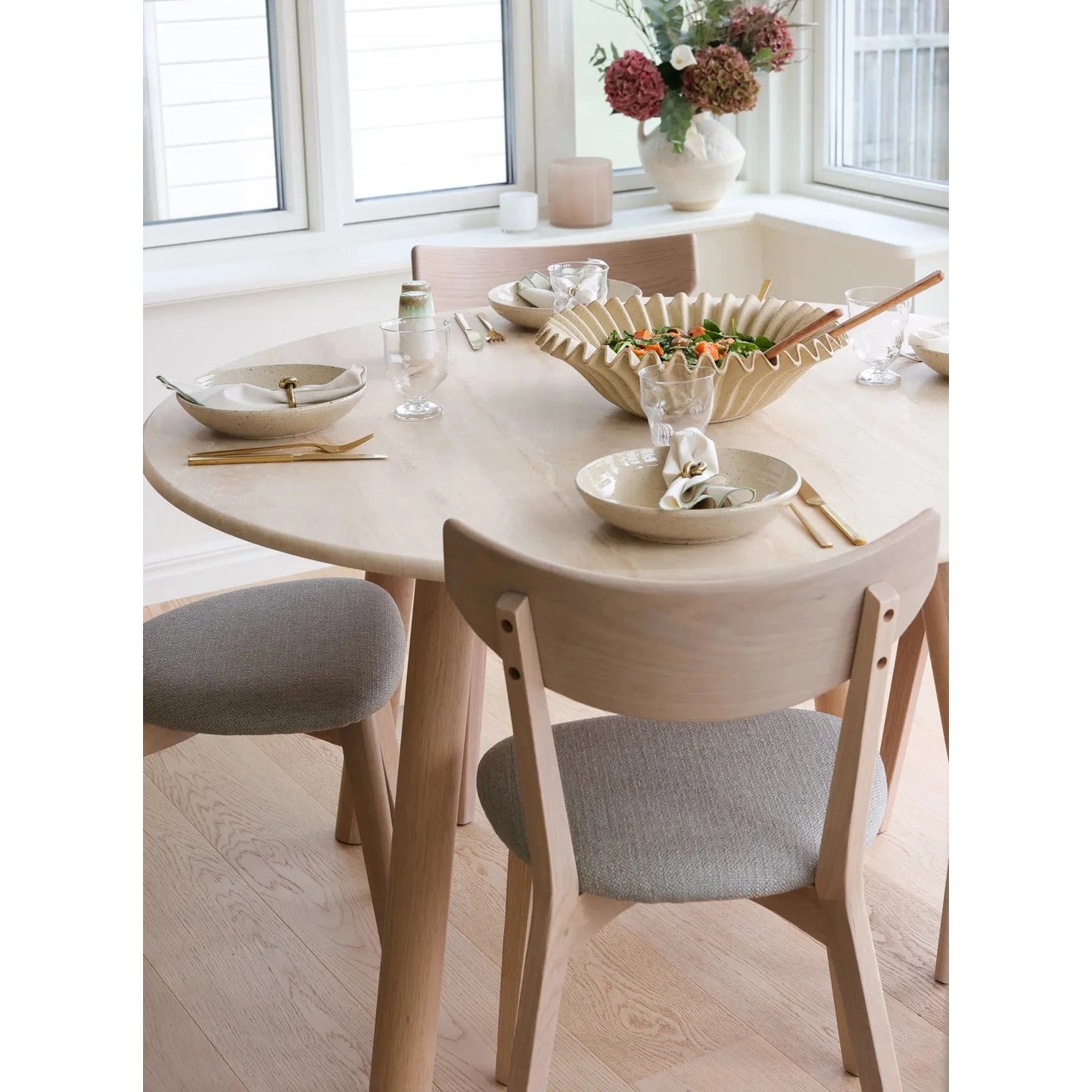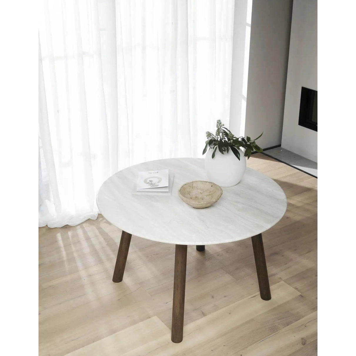 Oppdag den luksuriøse Taransay spisebordet, som er designet for å gi et eksklusivt preg til ditt hjem. Dette bordet har en imponerende steinplate laget av travertin fra Italia, kombinert med solide ben av brunt lakkert FSC-sertifisert eik. Travertin er en type kalkstein med en levende tekstur som gir bordet en naturlig skjønnhet, og over tid utvikler det en unik patina – noe som gjør at du kan oppdage nye detaljer i bordplaten hver dag.