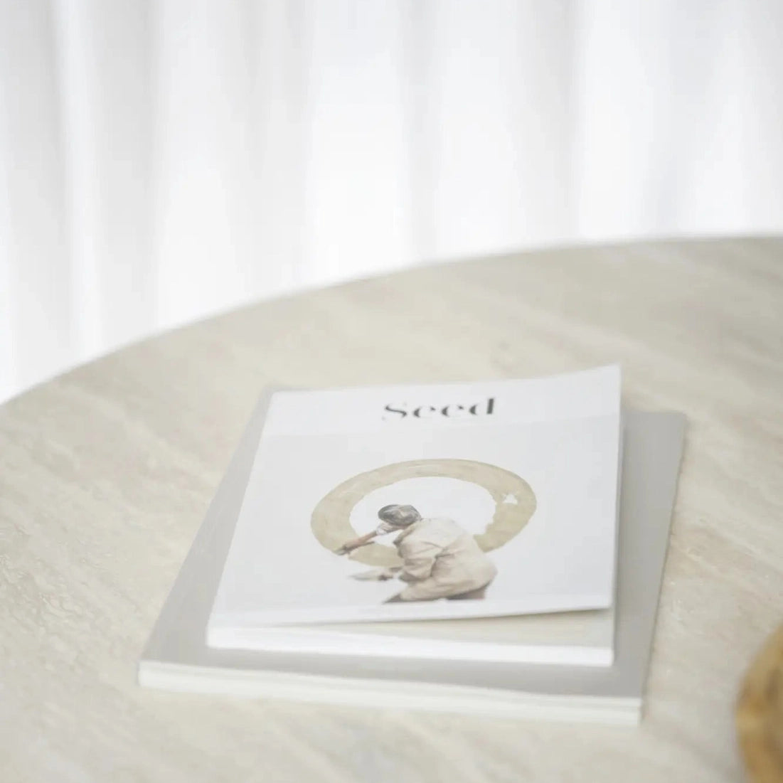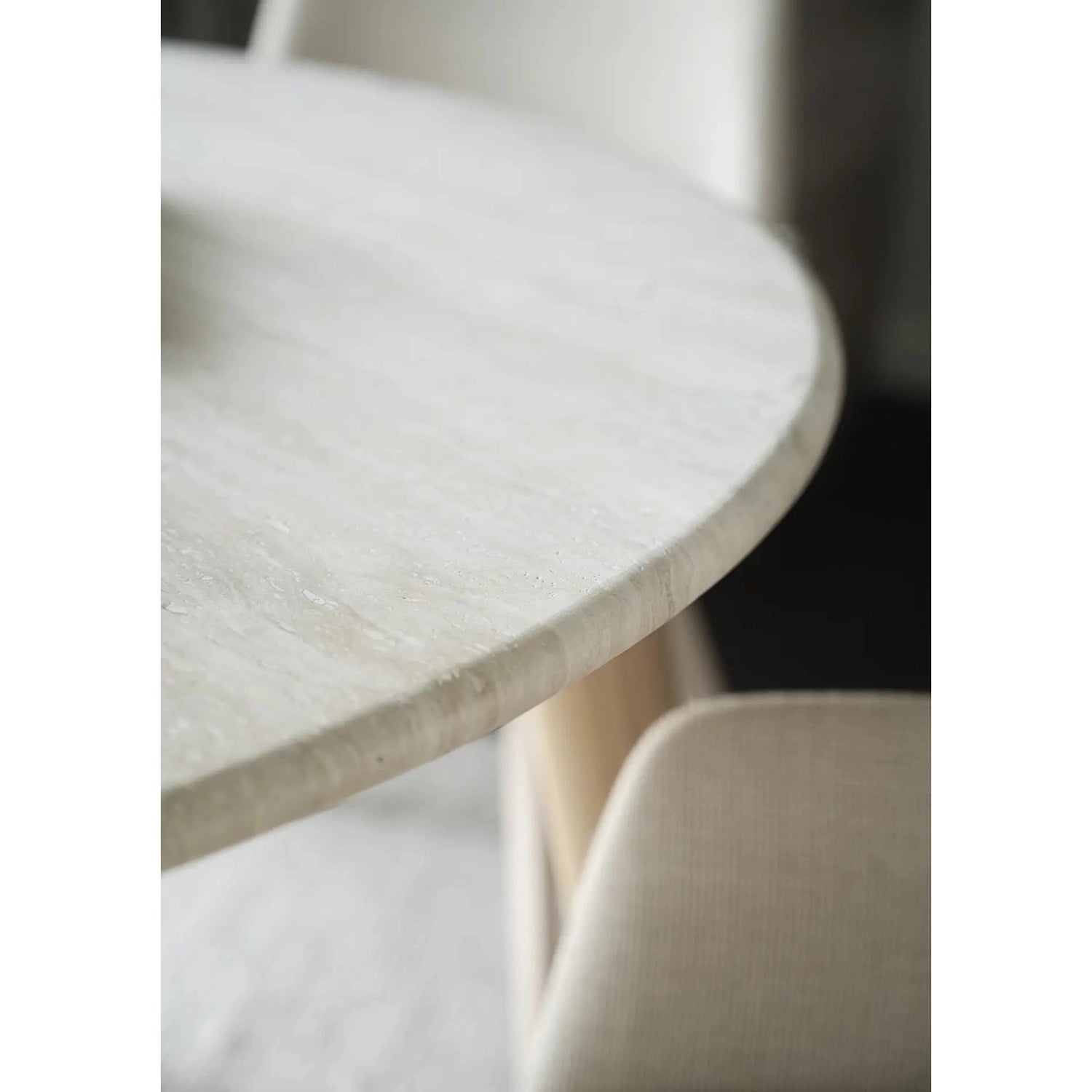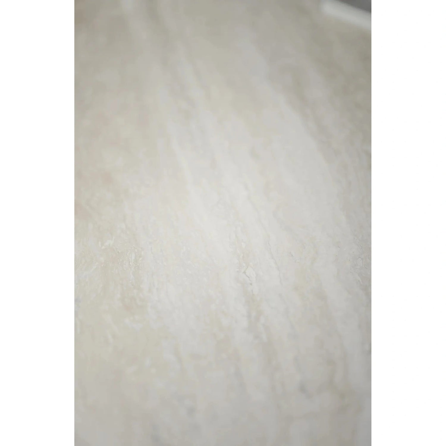 For å bevare bordets utseende, anbefales det å bruke bordmatter og umiddelbart tørke opp søl. Vær oppmerksom på at travertin er et naturlig materiale, og derfor kan variasjoner i tekstur og utseende forekomme. Små hulrom er ikke defekter, men unike kjennetegn ved hvert enkelt bord, som bidrar til dets sjarm og karakter.