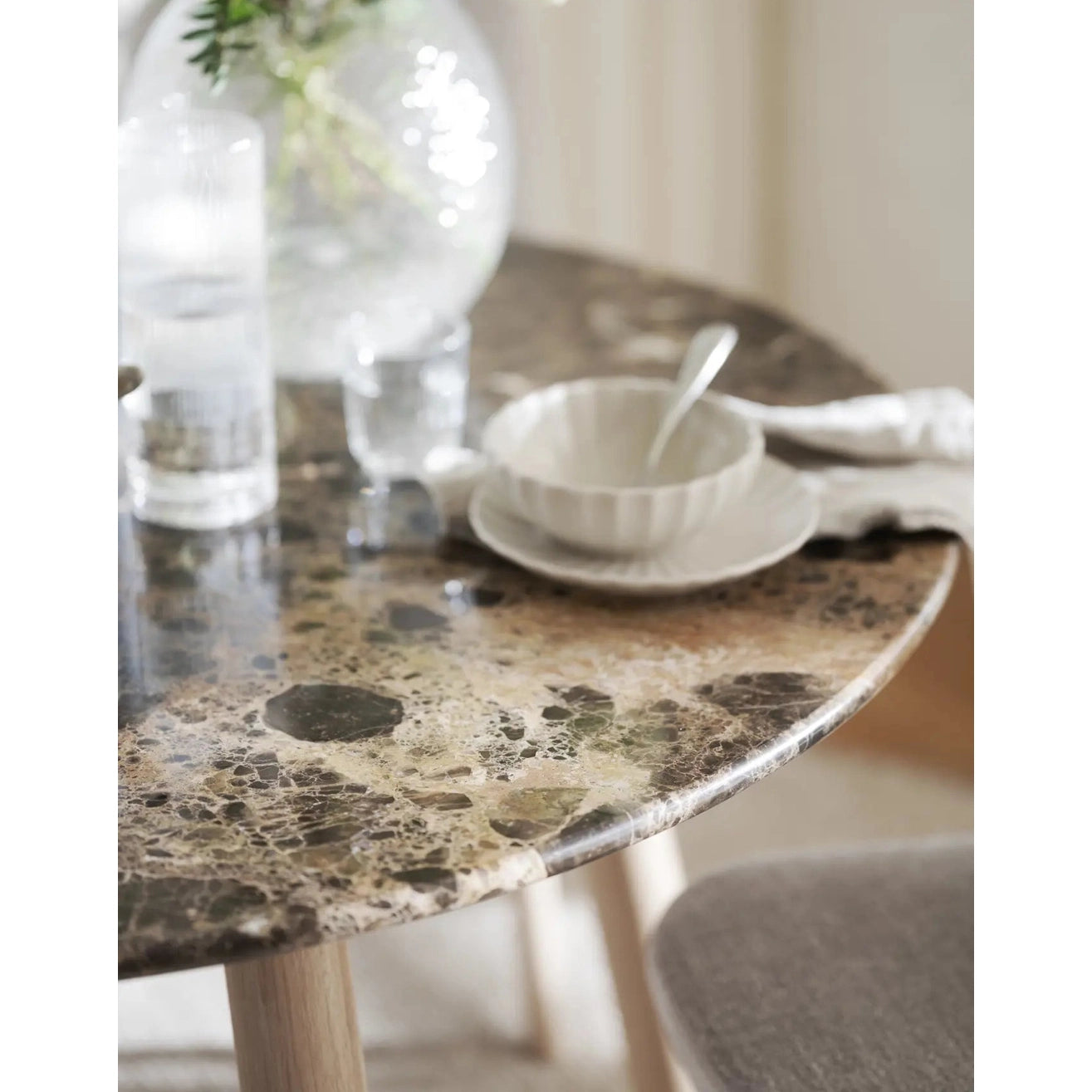 Det myke, runde designet på bordet skaper en vakker kontrast til den livlige og robuste steinplaten. Taransay spisebordet er tilgjengelig i flere design, noe som gjør det enkelt å finne en stil som passer perfekt til ditt interiør. I tillegg til spisebordet, inkluderer Taransay-kolleksjonen også sofabord, slik at du kan skape en sammenhengende stil i stuen.