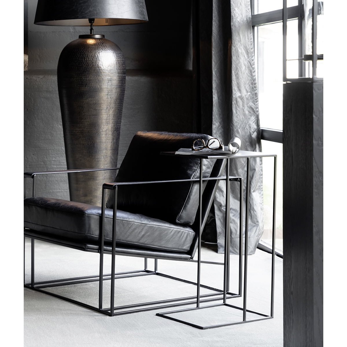 Tarly sidobord i metall kombinerer minimalistisk eleganse med funksjonell fleksibilitet, noe som gjør det til et perfekt tilskudd i hjemmet. Med sin stilrene design passer det utmerket som sidobord, nattbord eller avlastningsbord. Laget av høy-kvalitets metall, har det en slank og stabil konstruksjon, noe som gjør det både holdbart og lett å flytte. Den kompakte størrelsen gjør det ideelt for både små og store rom.
