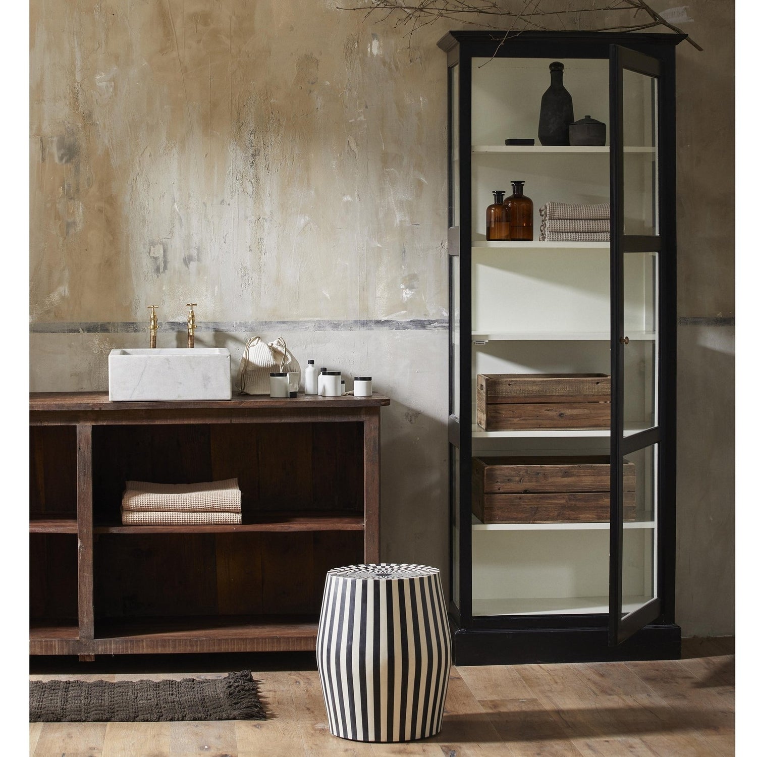 TAURA er et uttrykksfullt bord til din innredning. TAURA kan brukes både som et sidebord eller som en krakk når det er behov for en ekstra sitteplass. De svarte og hvite stripene er klassiske, men mønsteret gir innredningen din med TAURA et herlig og nytt uttrykk. TAURA er laget av en blanding av harpiks og mango tre. Bordet kan også fås i en annen modell.