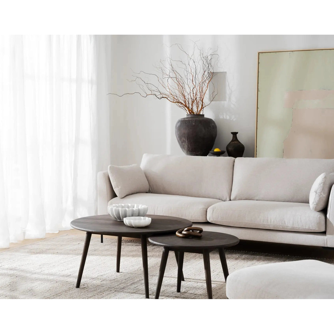 Tompkins kaffebord Ø90 er et klassisk møbel i skandinavisk design, laget av solid eik med olje. De avrundede detaljene på både bordplaten og bena gir en naturlig og myk følelse. Dette runde kaffebordet er tilgjengelig i to størrelser som kan brukes separat eller sammen som nestebord. I kolleksjonen finner du også elliptiske og firkantede kaffebord, som gir deg flere valgmuligheter for innredningen. Alle modeller er laget av FSC®-sertifisert treverk, noe som sikrer bærekraftige skogbrukspraksiser. Velg Tompkins kaffebord for et stilrent og tidløst preg i stuen din.