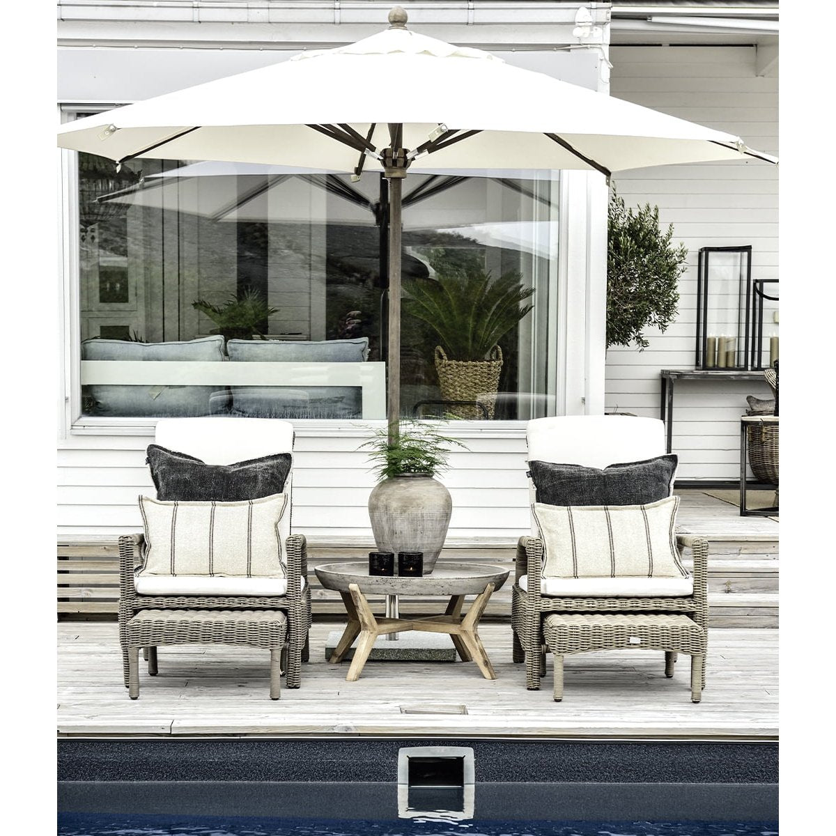 Tonga sofabord er ideelt for din uteplass eller terrasse. Den runde formen gjør det enkelt å integrere i ulike miljøer. Laget av naturlige materialer som granittmel og akasietre, gir dette bordet en solid og stilren løsning. Betongen er behandlet for å beskytte mot flekker og er håndlaget, noe som gir et unikt preg. Tonga-serien omfatter også spisebord og sidebord.