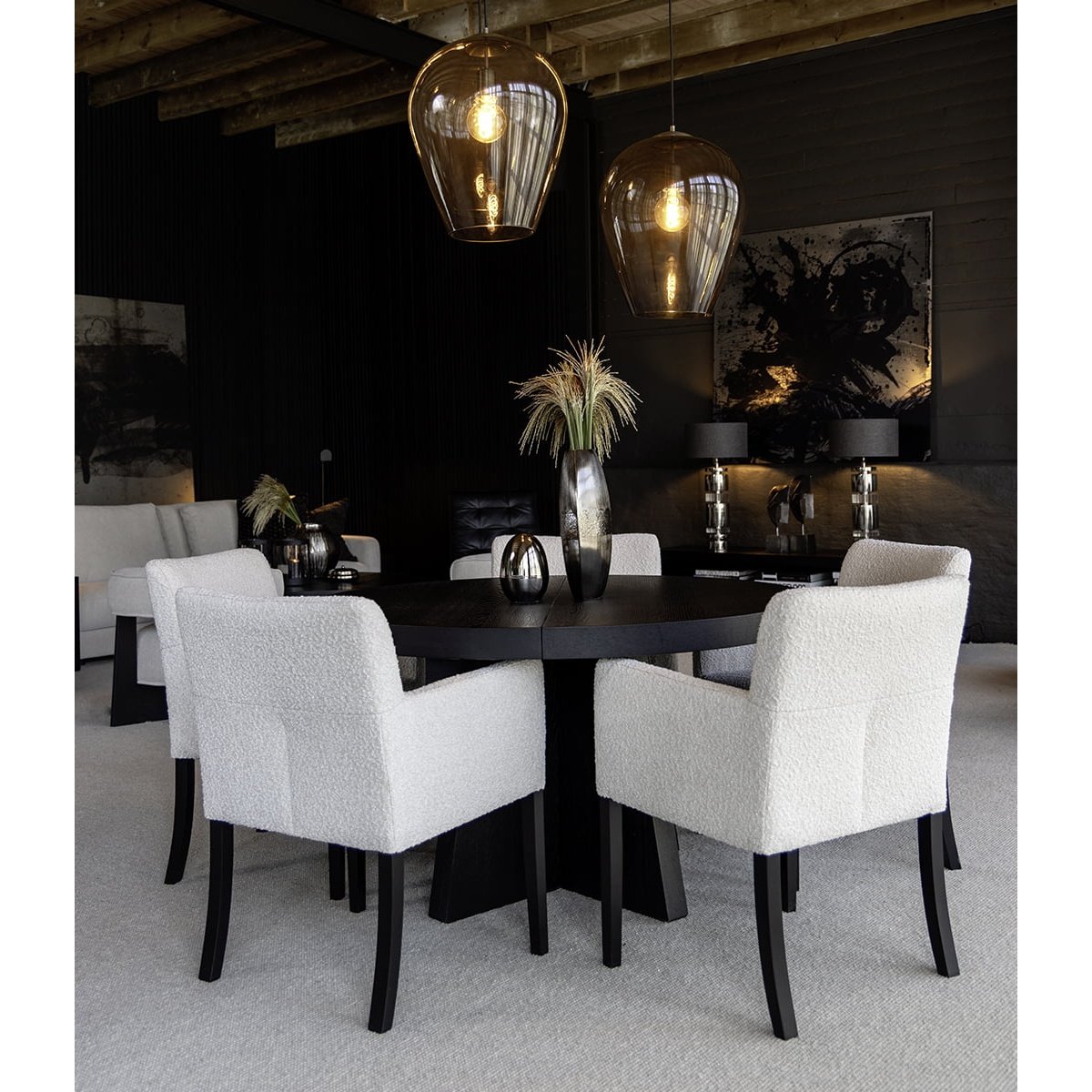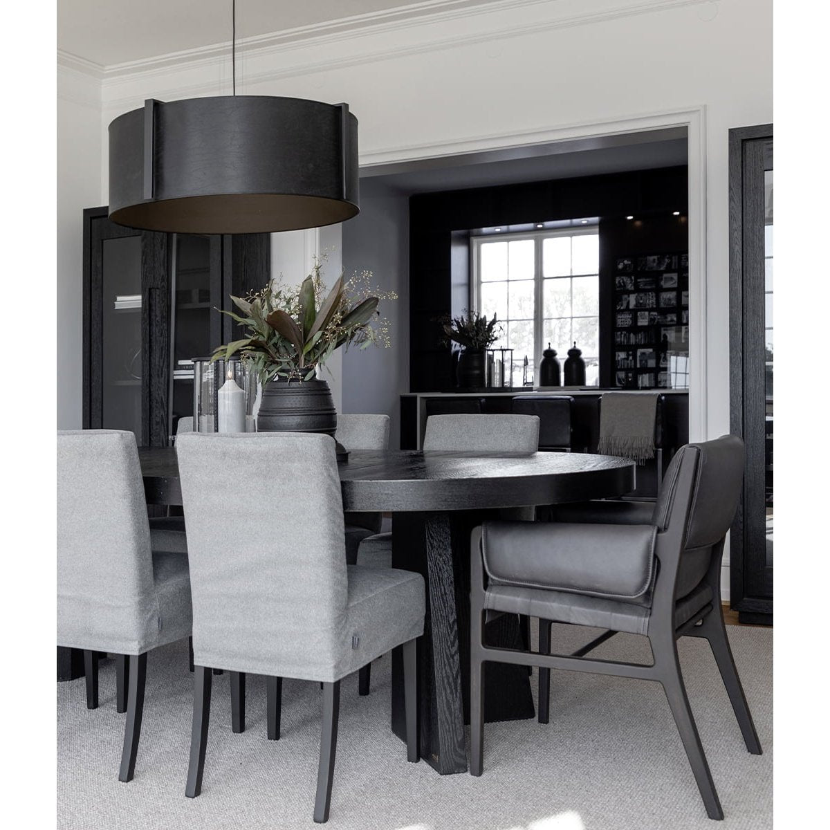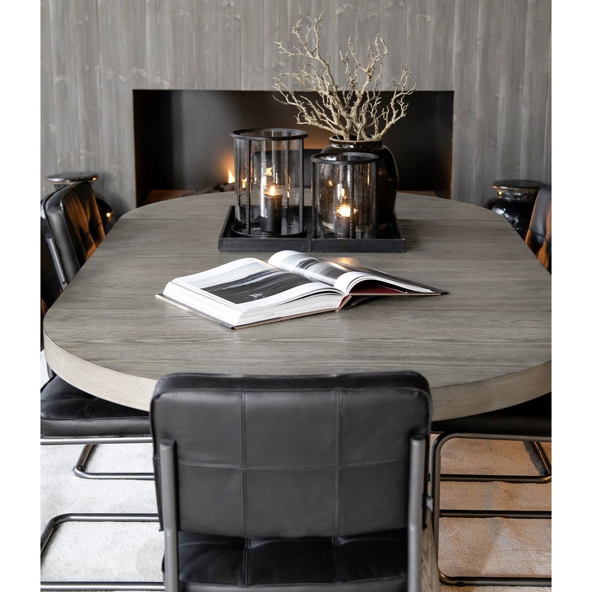 Trent-serien gir et moderne og robust inntrykk med sitt minimalistiske design og klare trestruktur. To bordforlengelser á 60 cm/stykke er inkludert. Eikefinèren er malt og lakkert i flere trinn, noe som gir en hard og holdbar overflate, samtidig som den beholder sitt naturlige utseende. I vår populære Trent-serie finner du både spisebord, salongbord i ulike størrelser og annen møbler.