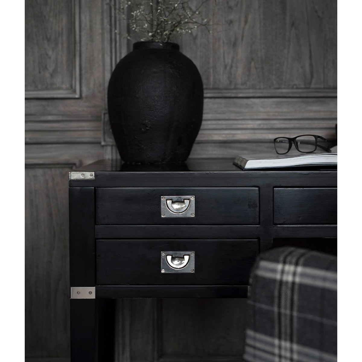 Skrivebordet Vermont består av massiv eik og eikefinér som er behandlet med voks. Vermont-serien gir et klassisk inntrykk og passer sømløst inn i mange forskjellige stiler. Detaljer i antikkfarget jern bidrar til et bearbeidet utseende. Eikefinéren er malt og lakkert i flere stadier, noe som gir en hard og holdbar overflate, men beholder sitt naturlige utseende.