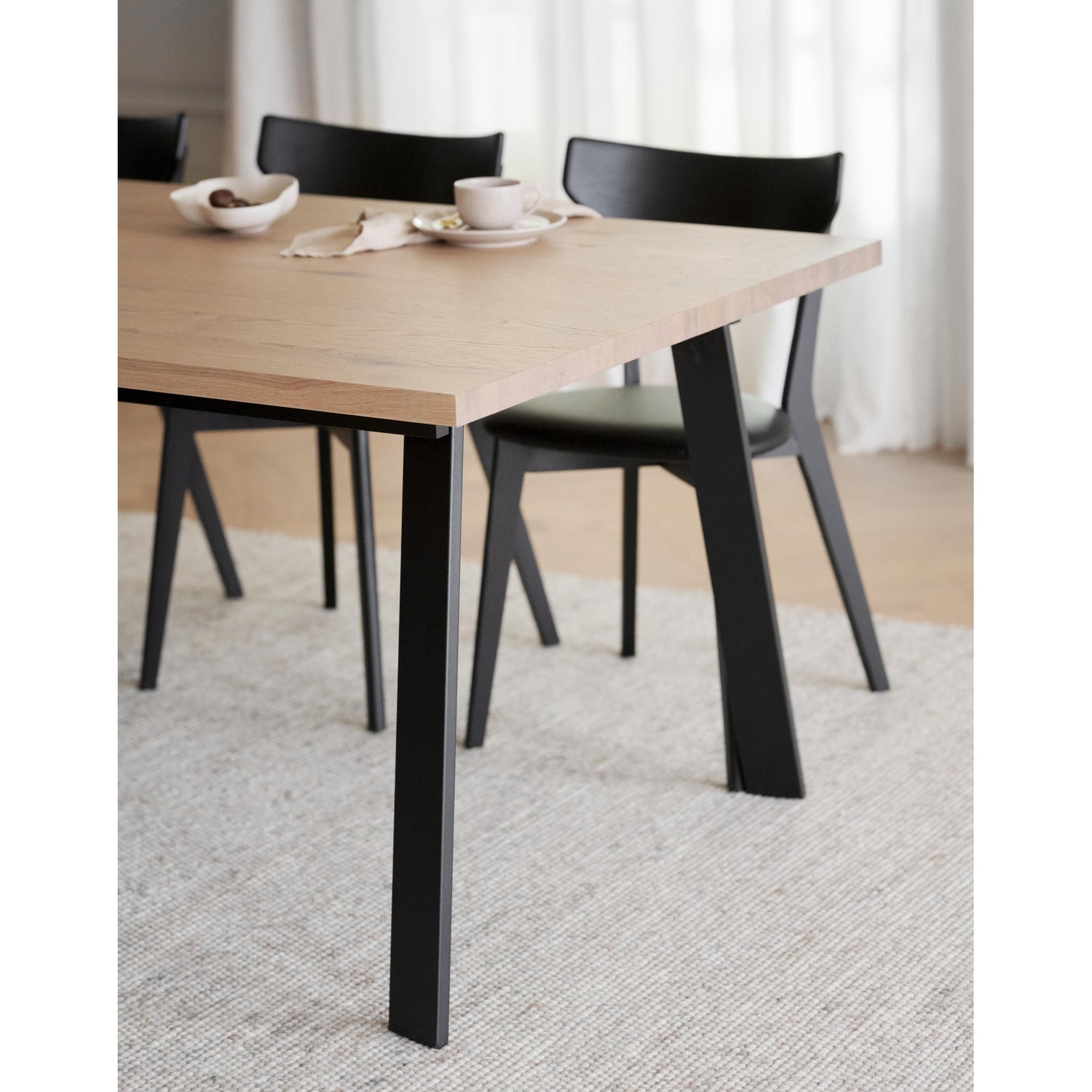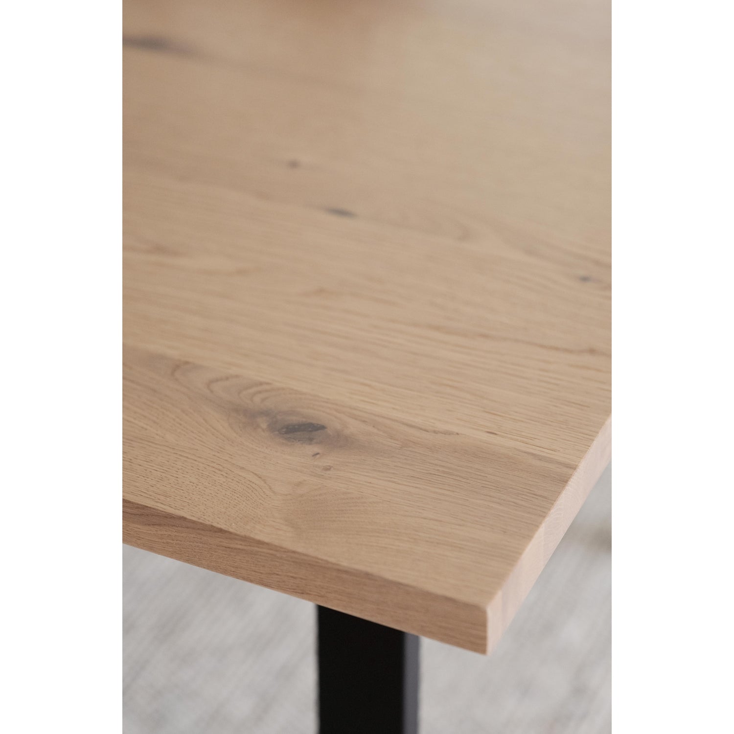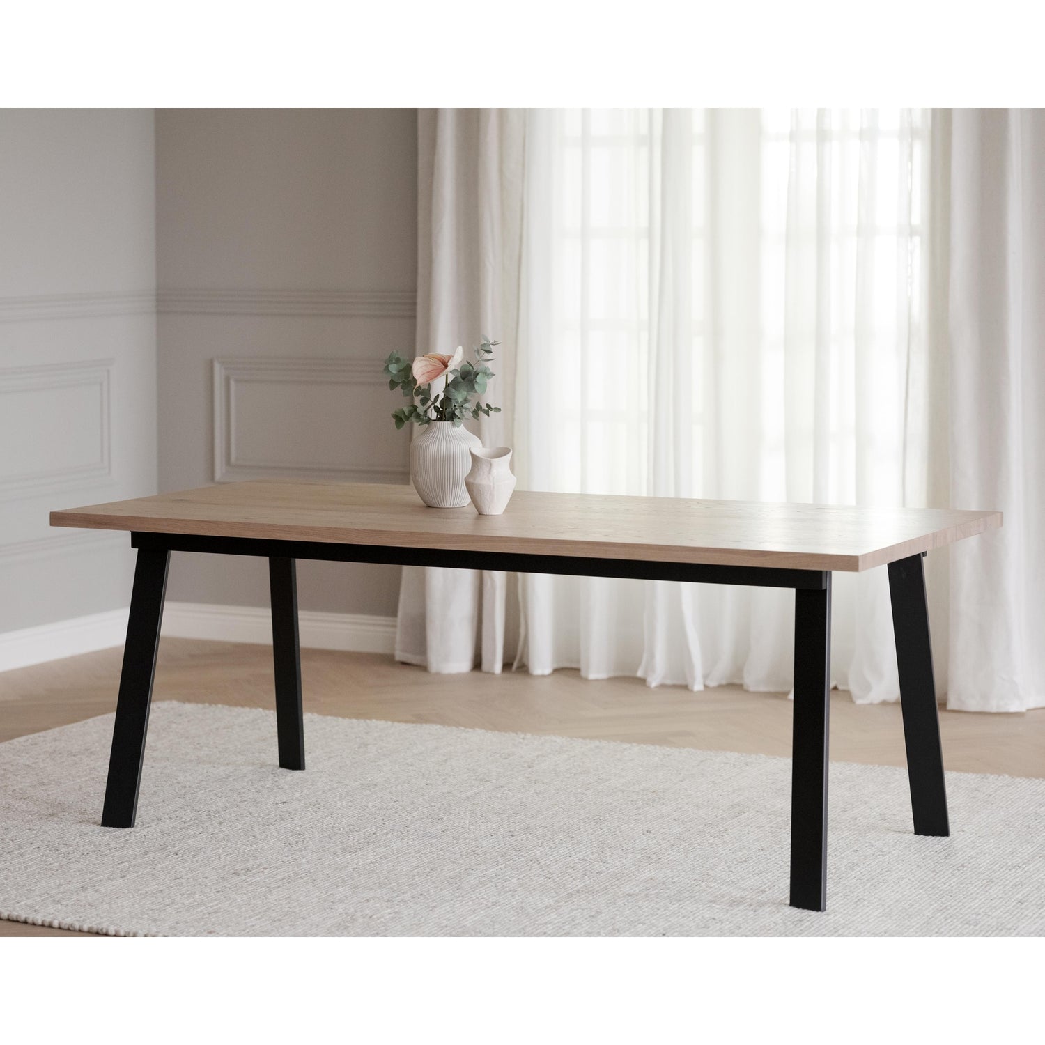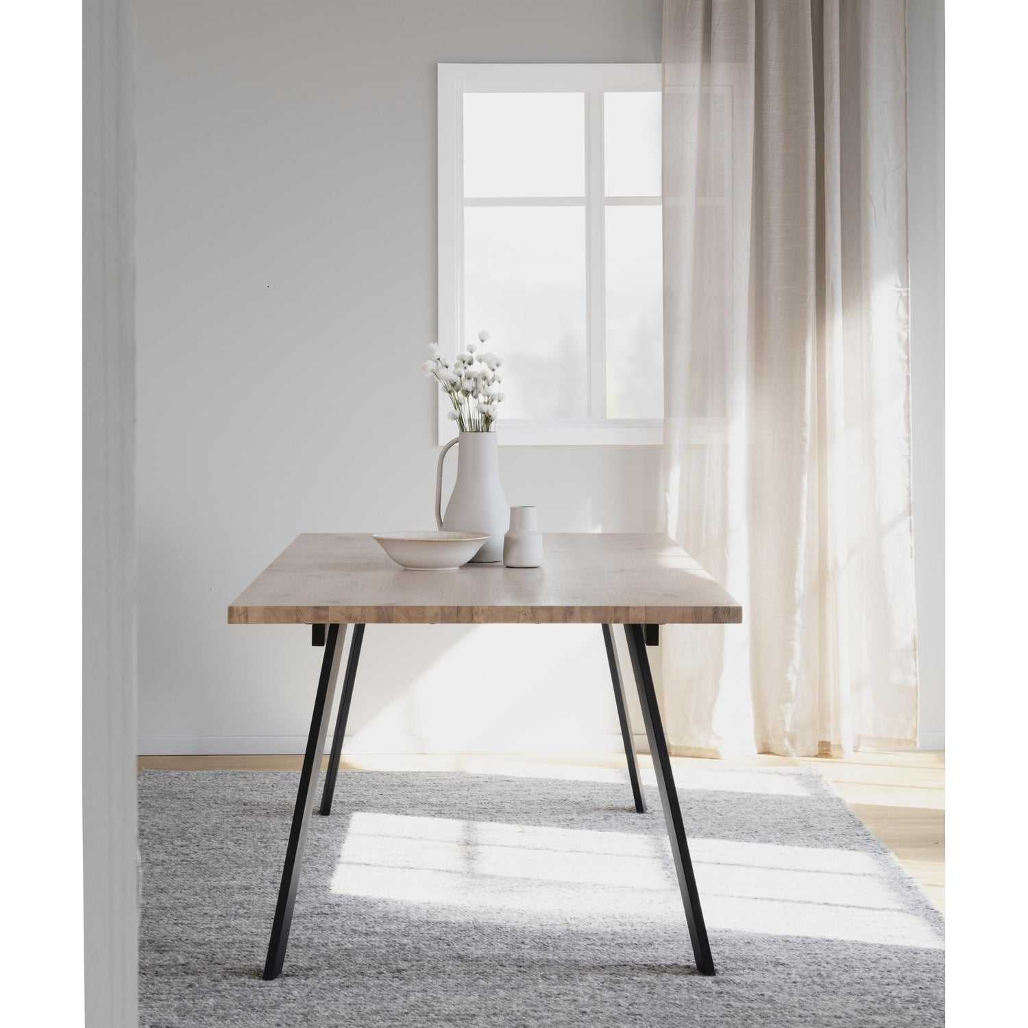 Bordet er laget av høykvalitets lakkert eik, som sikrer en robust og slitesterk overflate. De pulverlakkerte bena med en sandaktig struktur gir ikke bare et unikt utseende, men også ekstra stabilitet. Winnipeg spisebordet er designet for å vare, og vil være et midtpunkt i ditt spiseområde i mange år fremover.