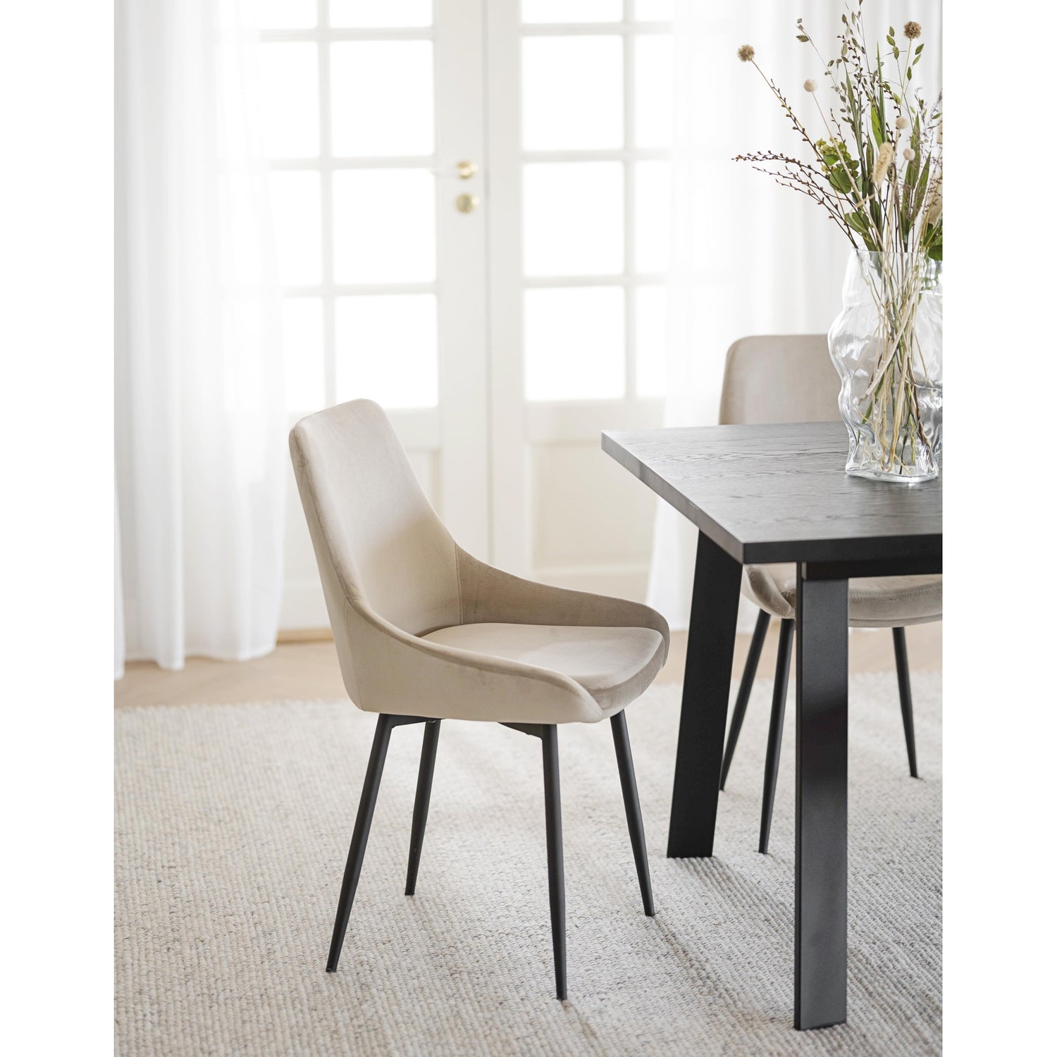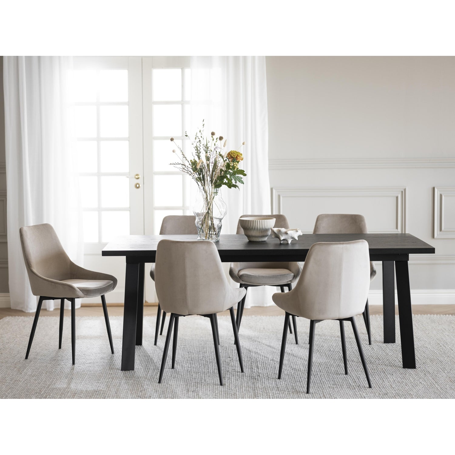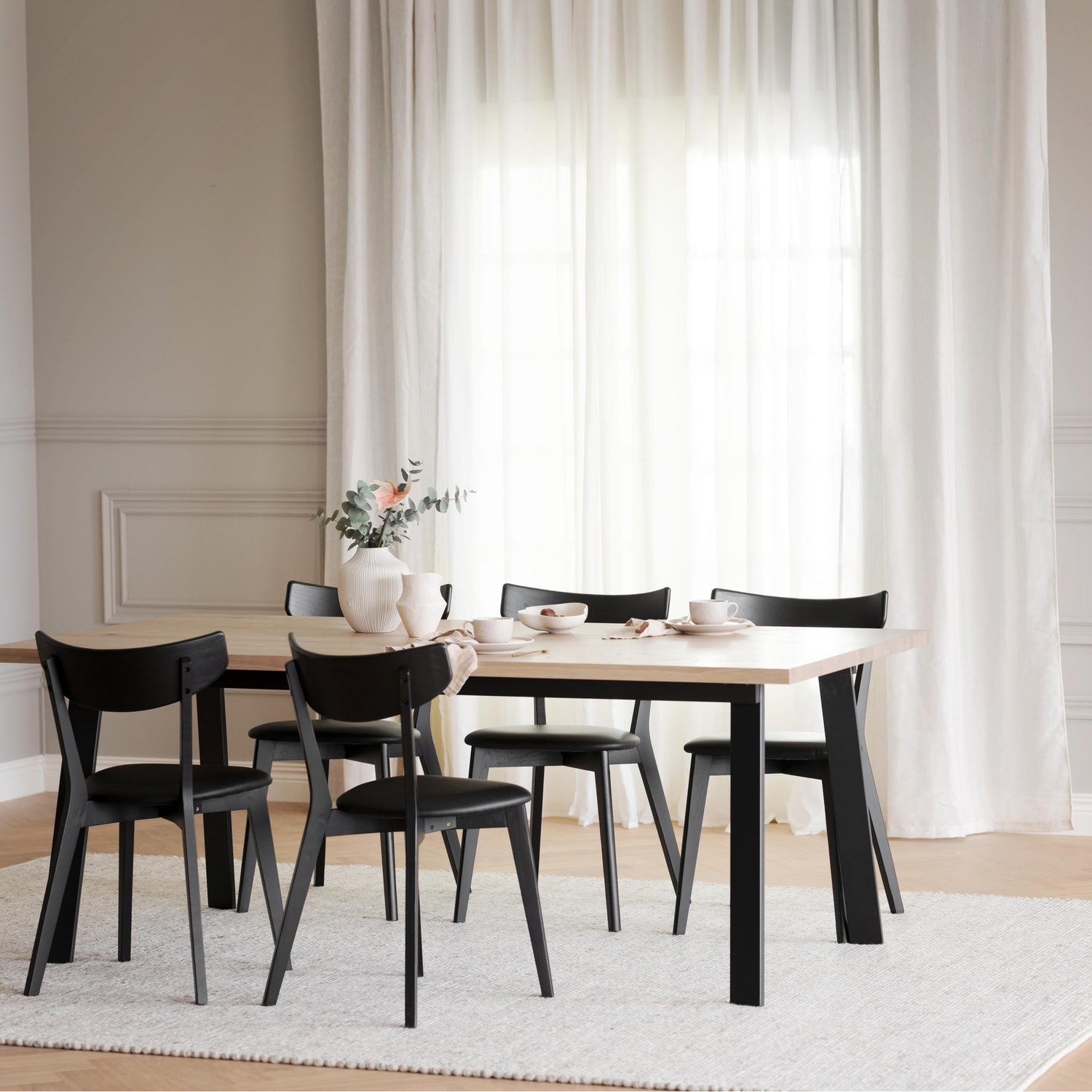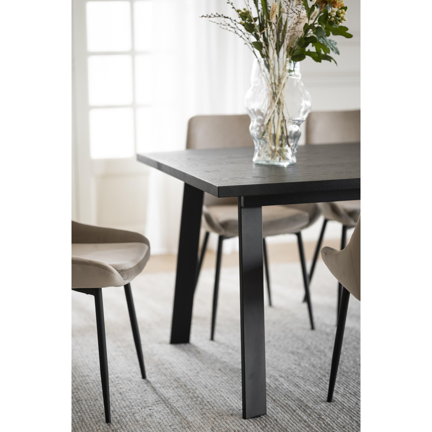 Bordet er laget av høykvalitets lakkert eik, som sikrer en robust og slitesterk overflate. De pulverlakkerte bena med en sandaktig struktur gir ikke bare et unikt utseende, men også ekstra stabilitet. Winnipeg spisebordet er designet for å vare, og vil være et midtpunkt i ditt spiseområde i mange år fremover.