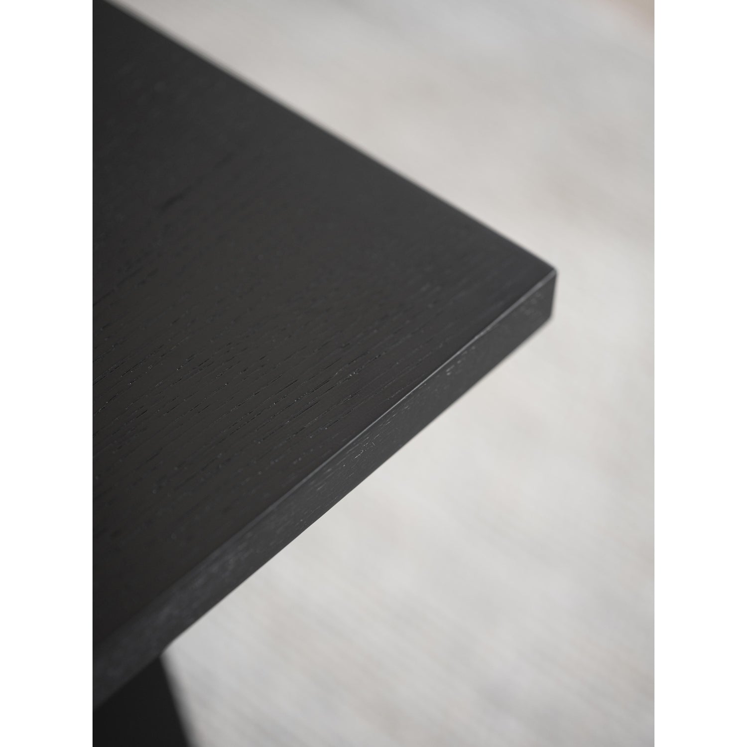 Materiale: Eik finer på partikkelbrett. Kanter i tykk finer med solid utseende. Forsterkningsbjelker i solid bjørk. Pulverlakkert metallben i sandstruktur.