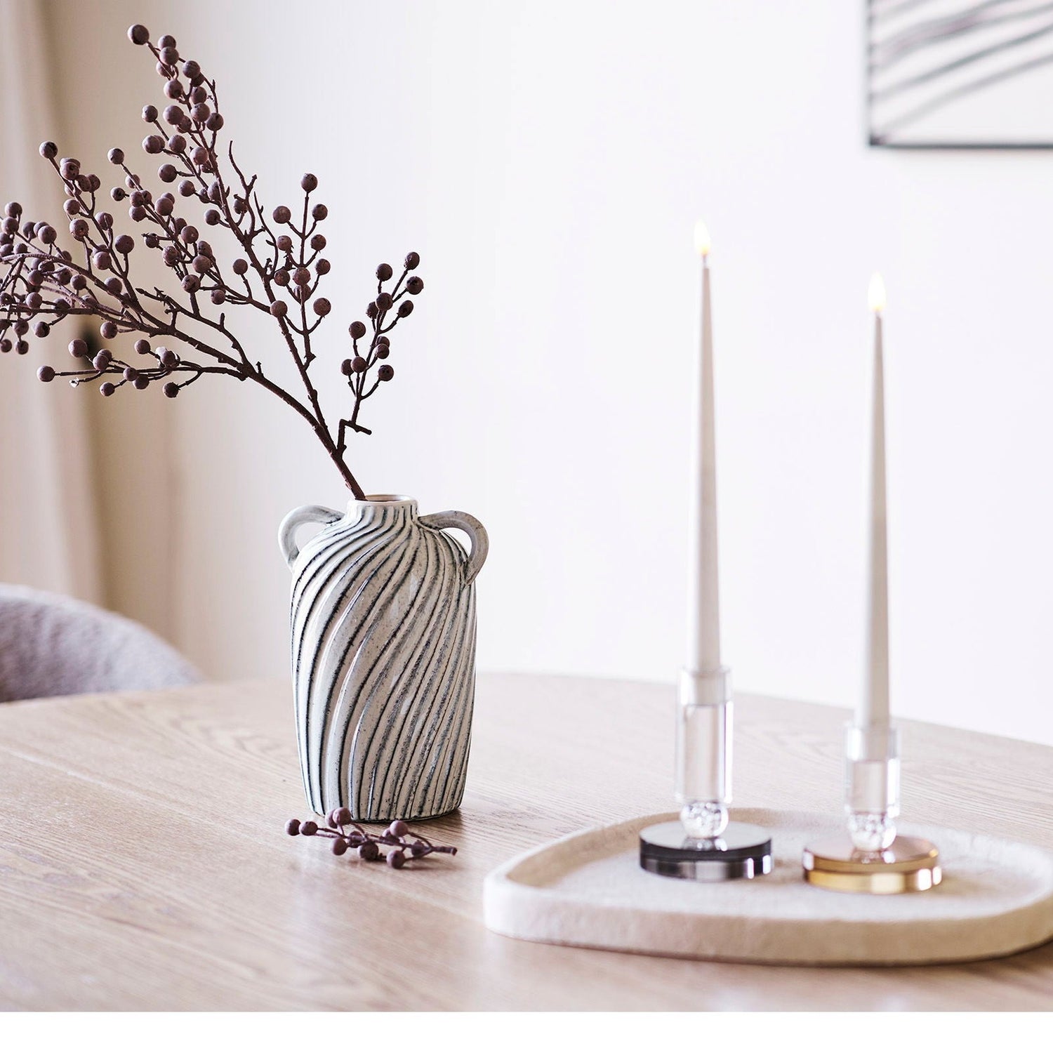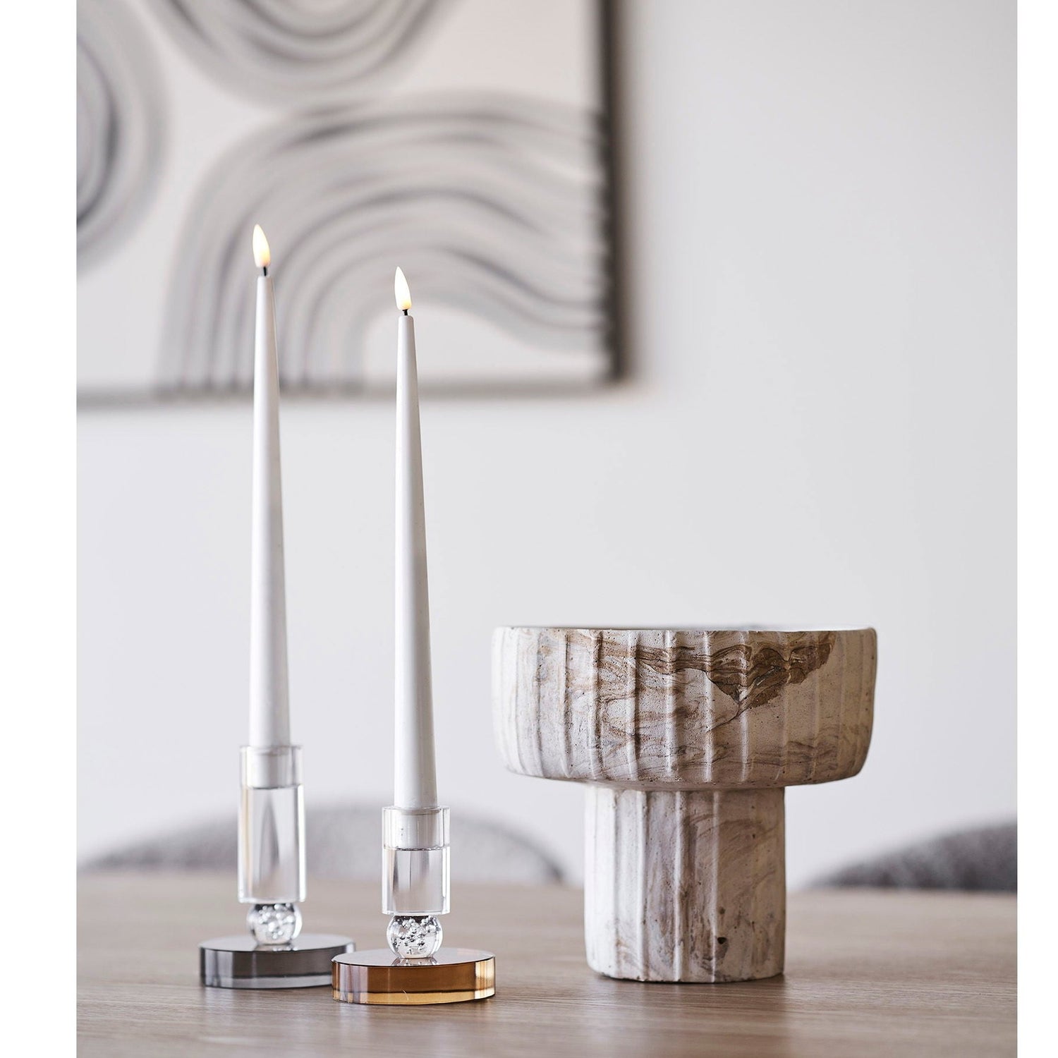 Lysestake i glass med en diameter på 8,5 cm og høyde på 10 cm. Denne elegante lysestaken passer perfekt til både stearinlys og LED-lys. Den gir en varm atmosfære i ethvert rom og er ideell for både hverdagsbruk og spesielle anledninger. Gjør hjemmet ditt mer innbydende med denne stilige lysestaken.