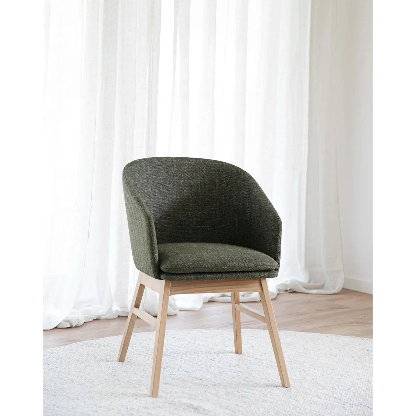 Windham lenestolen er laget av FSC-sertifisert treverk, noe som sikrer at du får et produkt av høy kvalitet som er bærekraftig og miljøvennlig. De solide bena i eik gir stabilitet og langvarig bruk, slik at du kan nyte stolen i mange år fremover.