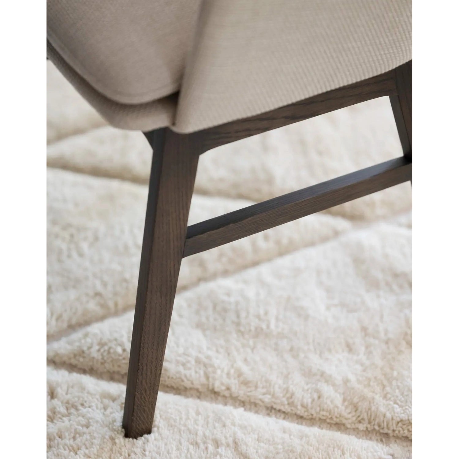 Windham lenestolen er tilgjengelig i to forskjellige tekstiler, slik at du kan velge det som passer best til din innredning. I tillegg kan du velge mellom fire forskjellige varianter av solid lakkert treverk for bena, slik at du kan tilpasse stolen til din personlige stil.