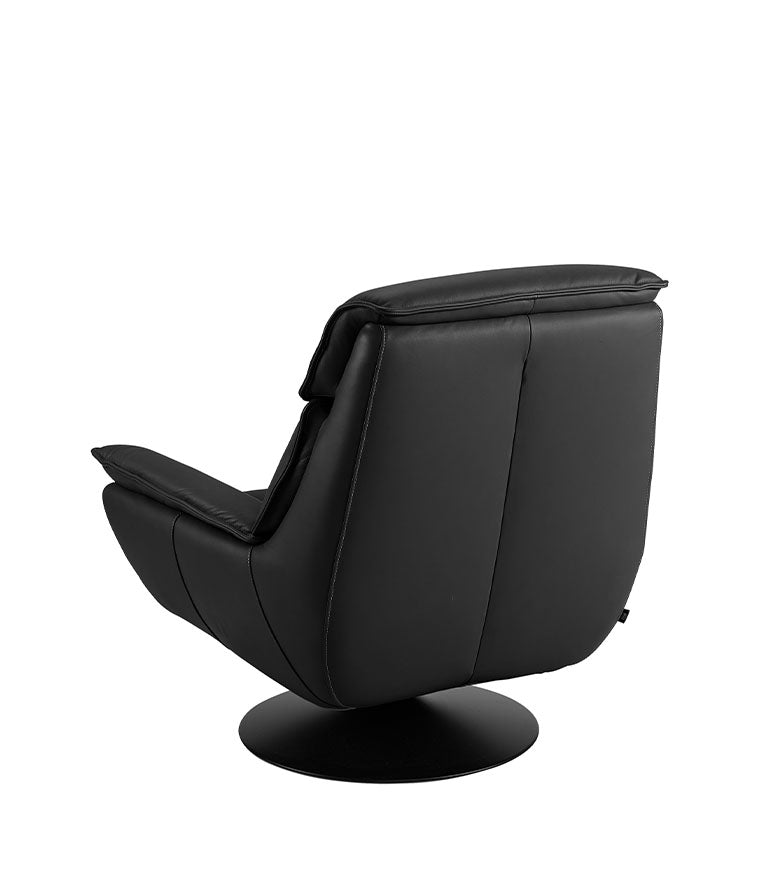 Denne lenestolen i lær med snurr kombinerer elegant stil med funksjonell komfort. Den ergonomiske formen gir høy sittkomfort og perfekt støtte for avslapning. Slitesterk lær gir et eksklusivt inntrykk, mens metallfoten gir stabilitet og et moderne preg. Den snurrbare designen gjør den fleksibel for ulike rom og bruksområder.