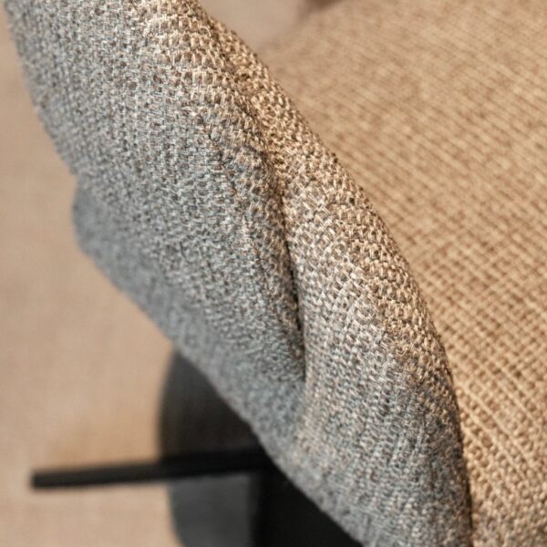 En moderne matstol med snurrfunksjon og elegant design som kombinerer komfort med praktisk fleksibilitet. Den rundede ryggen gir godt støtte, mens det strukturvevde stoffet tilfører dybde. Med 360-graders snurr og stabilt metallunderstell er denne stolen perfekt for spiseplassen, hjemmekontoret eller loungemiljøer.