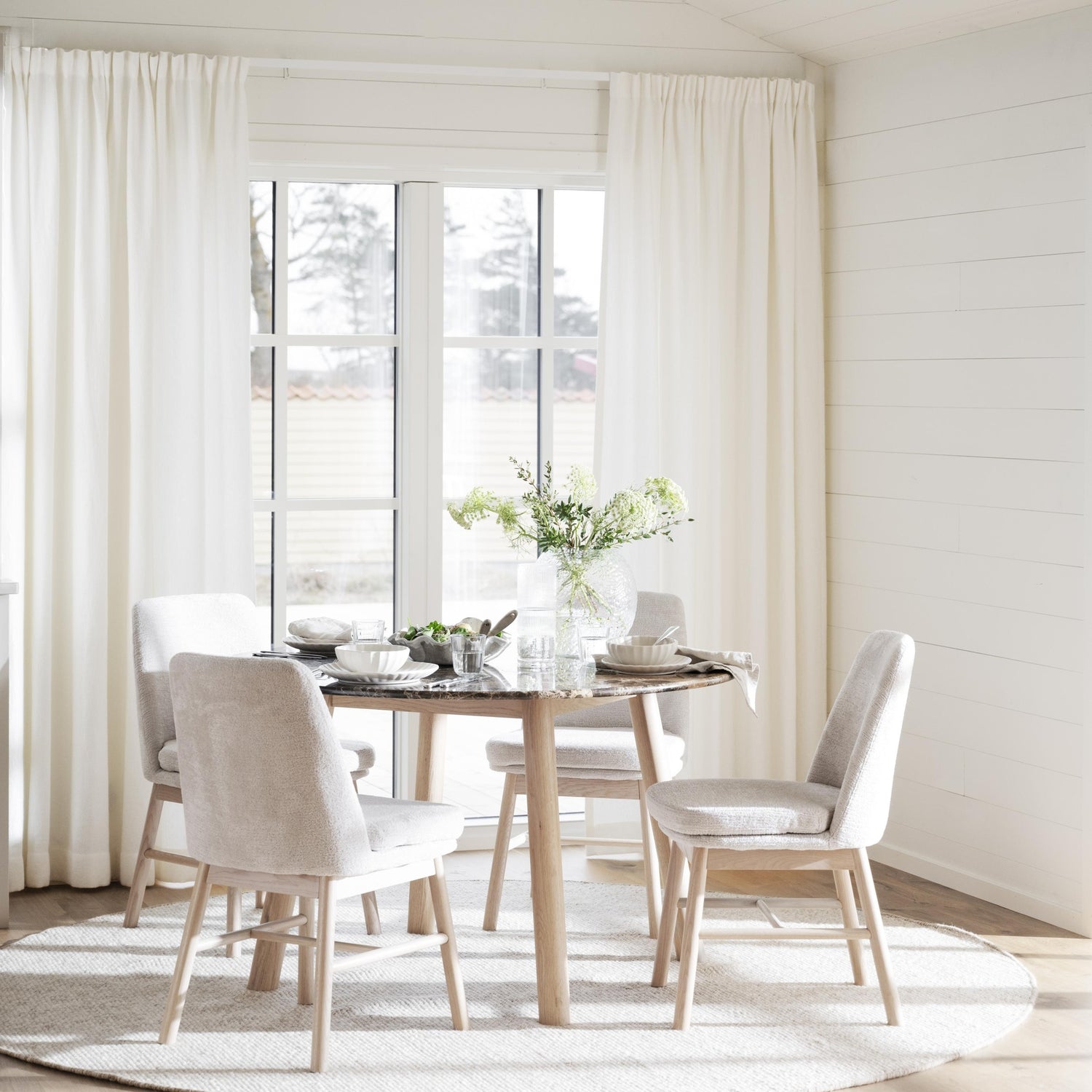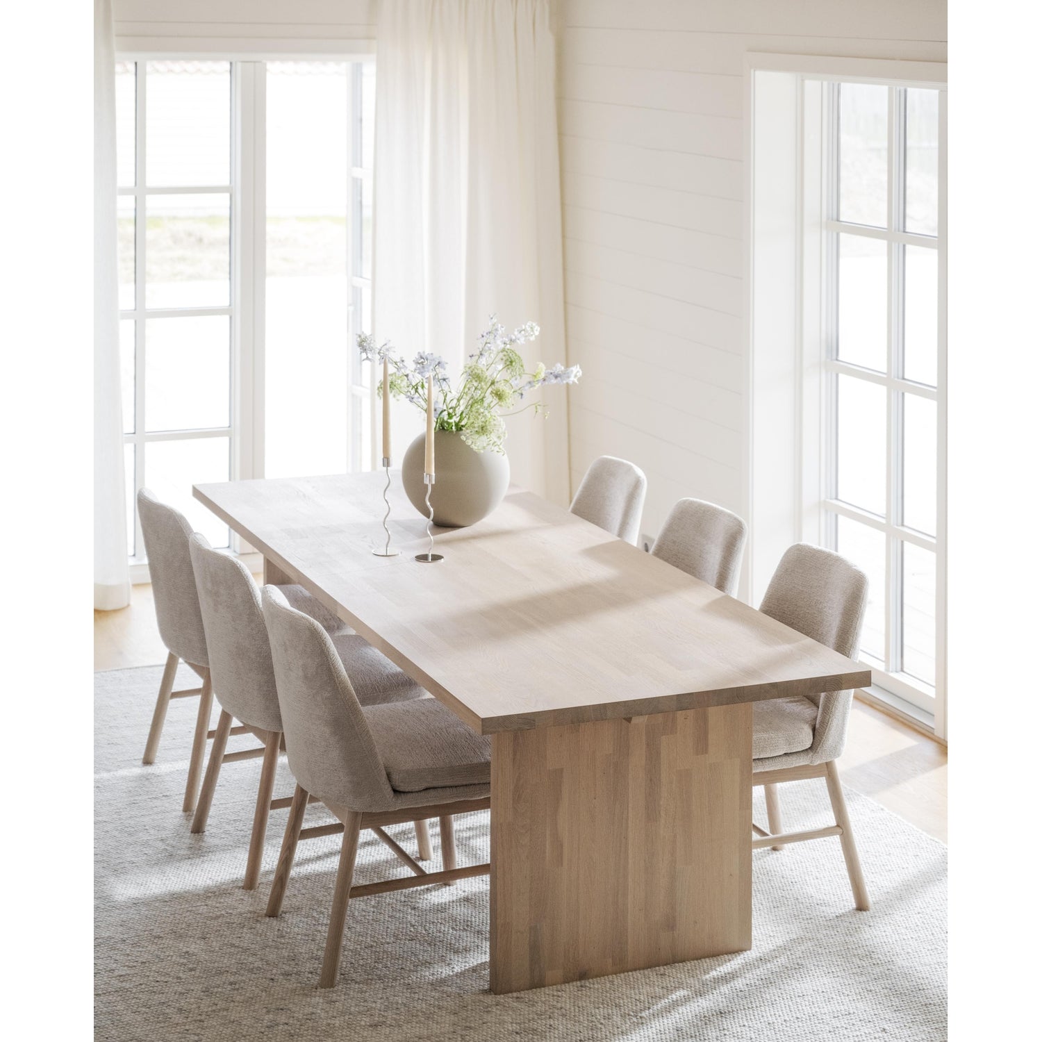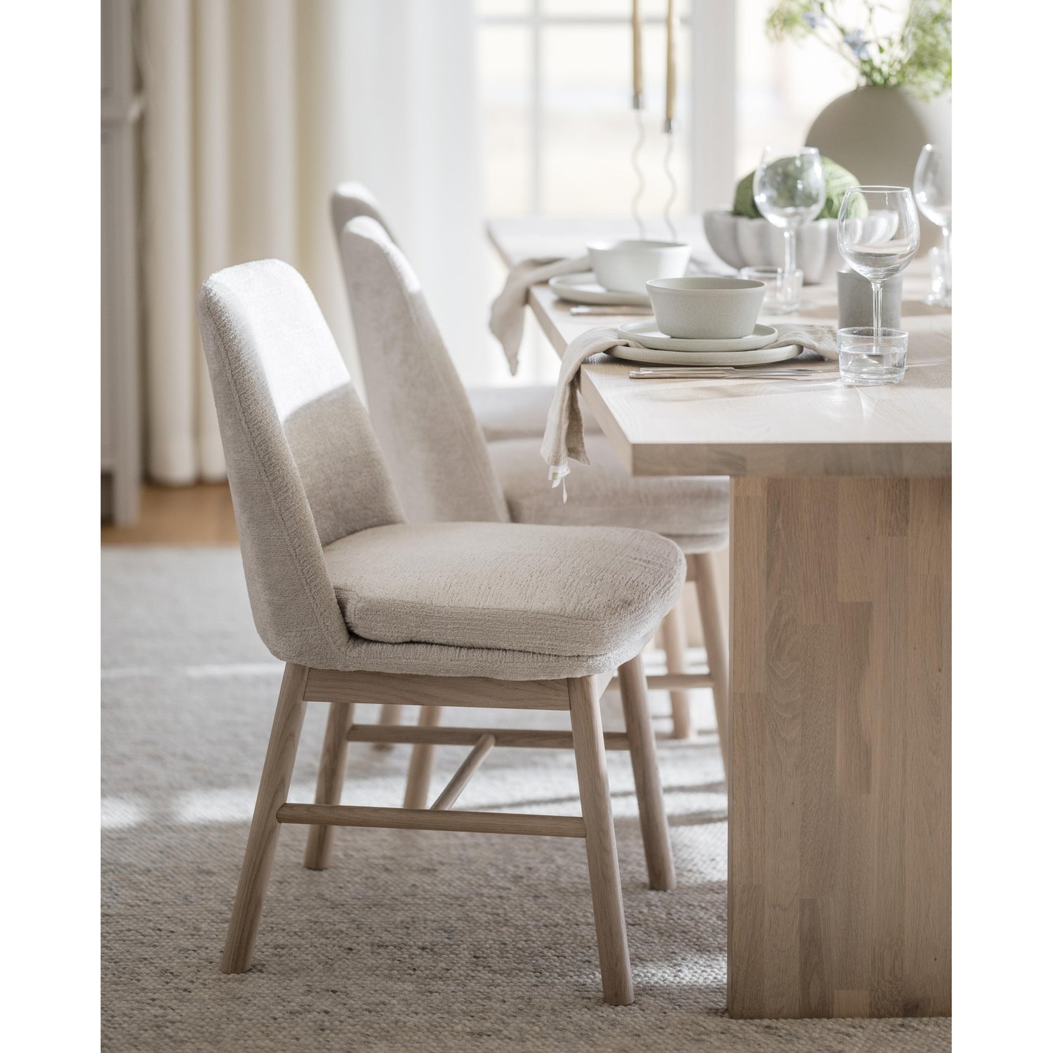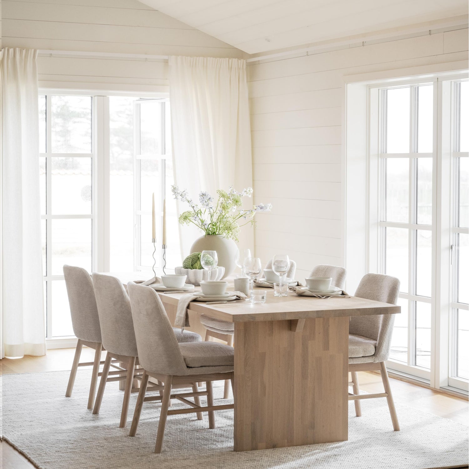 Amesbury-stolen med solide ben tilfører naturlig eleganse til hjemmet ditt. Denne stolen er polstret med et stoff som har en fin tekstur og er utrolig mykt, samtidig som det er svært slitesterkt. Den tykke puten, som også er avtagbar, gir deg muligheten til å sitte komfortabelt under lange middager og nyte hvert øyeblikk. Amesbury-stolen er et perfekt valg for både stuen og spisestuen, og den passer inn i enhver interiørstil. Med sitt tidløse design og høye kvalitet, vil denne stolen bli et kjærkomment møbel i hjemmet ditt.
