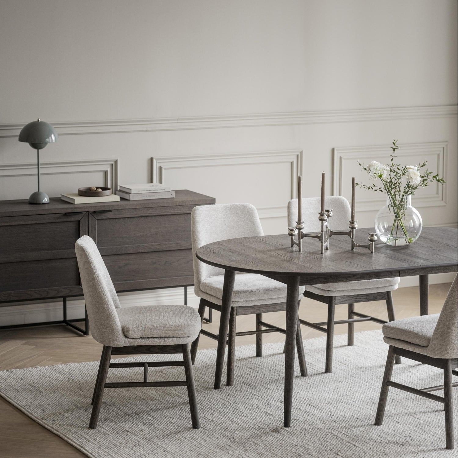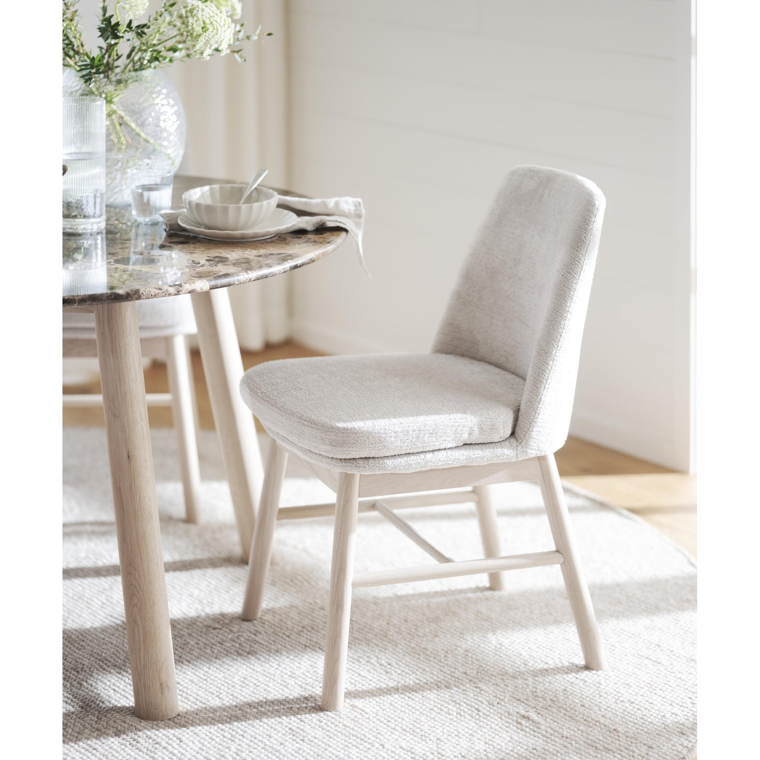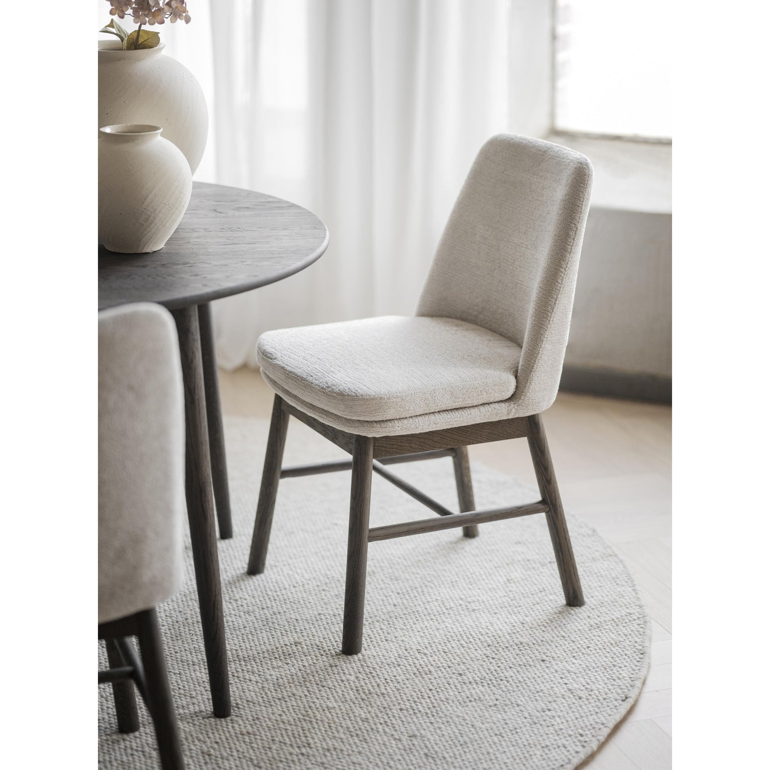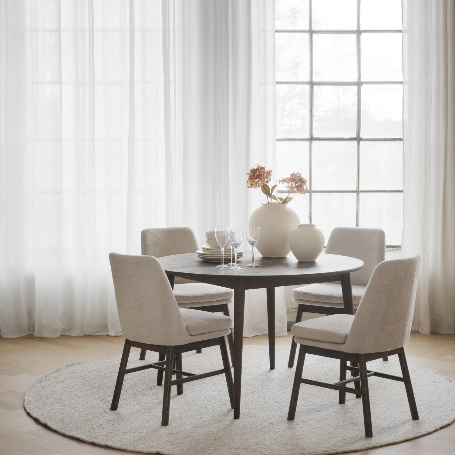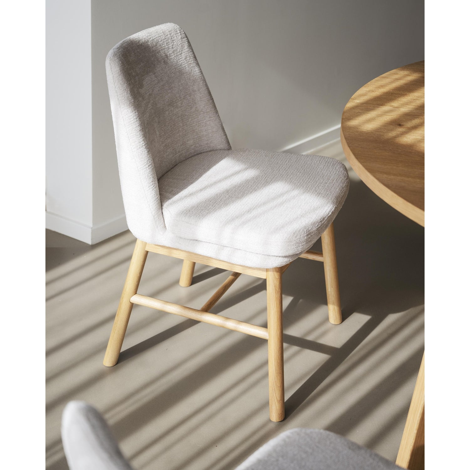 Amesbury-stolen med solide ben tilfører naturlig eleganse til hjemmet ditt. Denne stolen er polstret med et stoff som har en fin tekstur og er utrolig mykt, samtidig som det er svært slitesterkt. Den tykke puten, som også er avtagbar, gir deg muligheten til å sitte komfortabelt under lange middager og nyte hvert øyeblikk. Amesbury-stolen er et perfekt valg for både stuen og spisestuen, og den passer inn i enhver interiørstil. Med sitt tidløse design og høye kvalitet, vil denne stolen bli et kjærkomment møbel i hjemmet ditt.