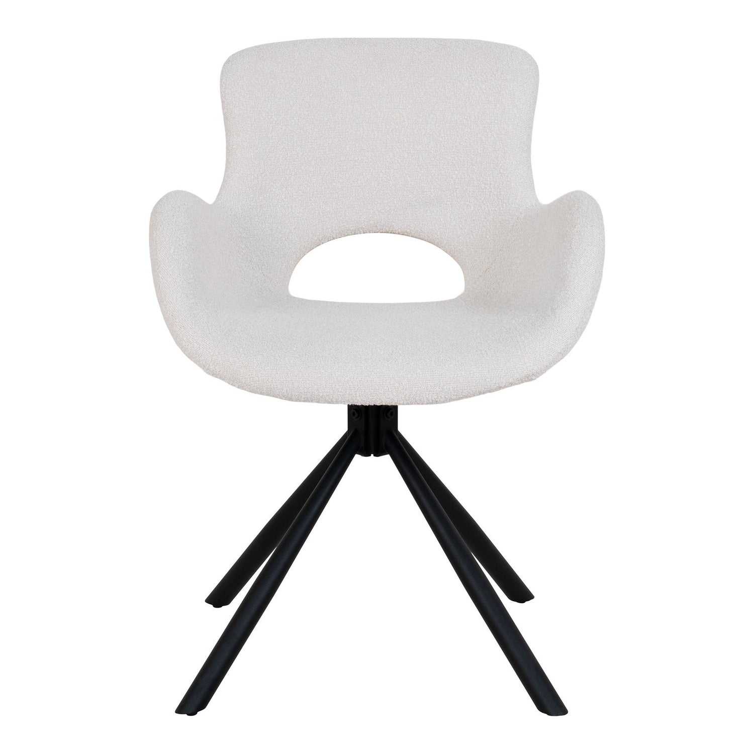 Denne spisebordsstolen kombinerer moderne eleganse med enestående komfort, og er et perfekt tilskudd til ethvert hjem. Stolen er trukket i myk bouclé, som gir en luksuriøs og innbydende følelse. Den unike dreiefoten gir både funksjonalitet og et stilfullt uttrykk, slik at du enkelt kan snu deg uten å måtte reise deg. Med sitt tidløse design og høye kvalitet, er denne spisebordsstolen ideell for både daglig bruk og spesielle anledninger.