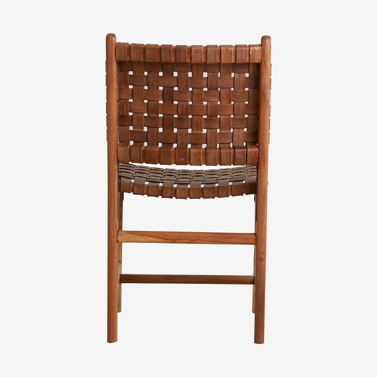 Flott, håndlaget spisebordstol bestående av en naturfarget trestamme med et vakkert flettet sete i brunt lær. En deilig stol i et moderne design og med et klassisk og tidløst utseende som passer inn i enhver innredning. Stolens sittehøyde er 46 cm - se øvrige mål under produktinfo.