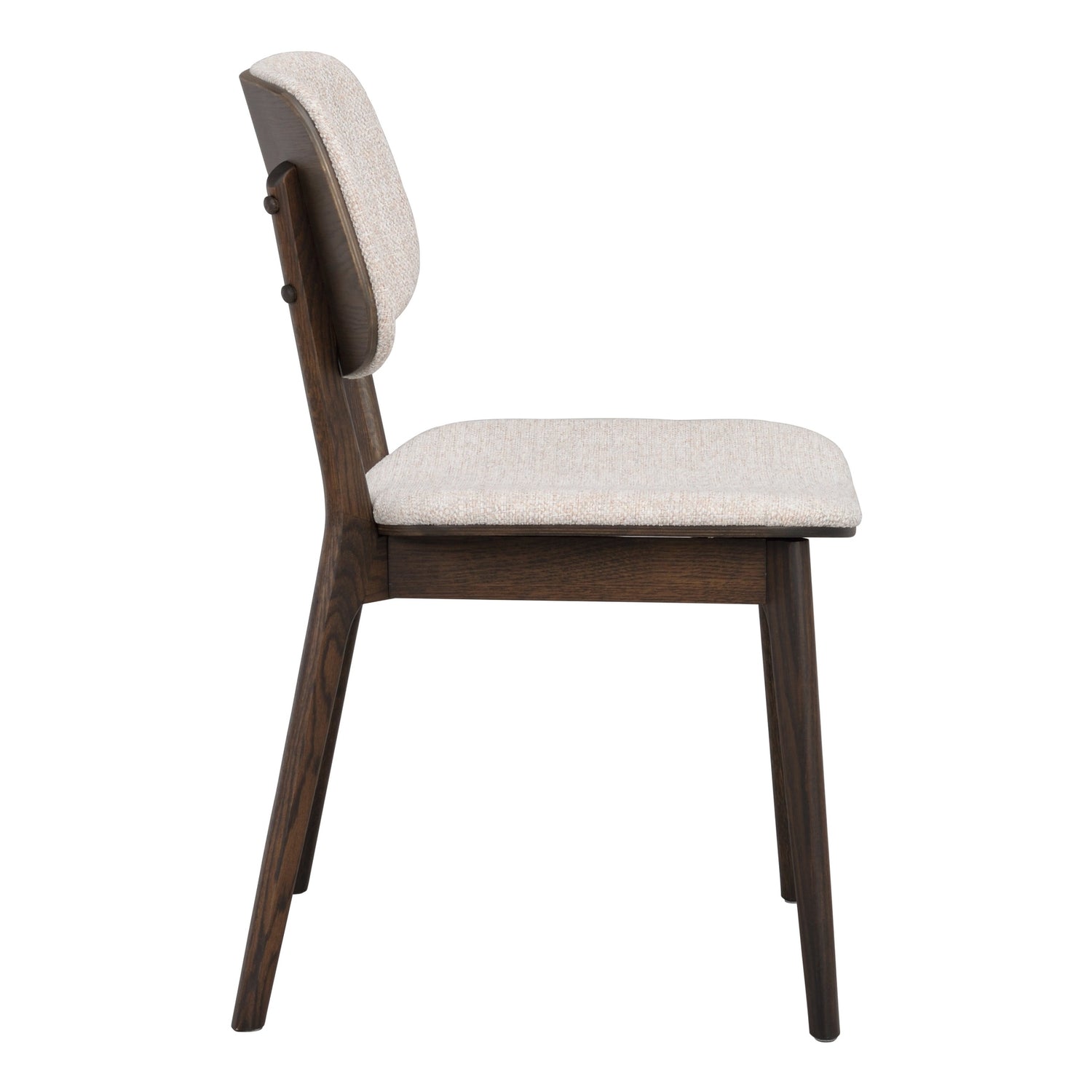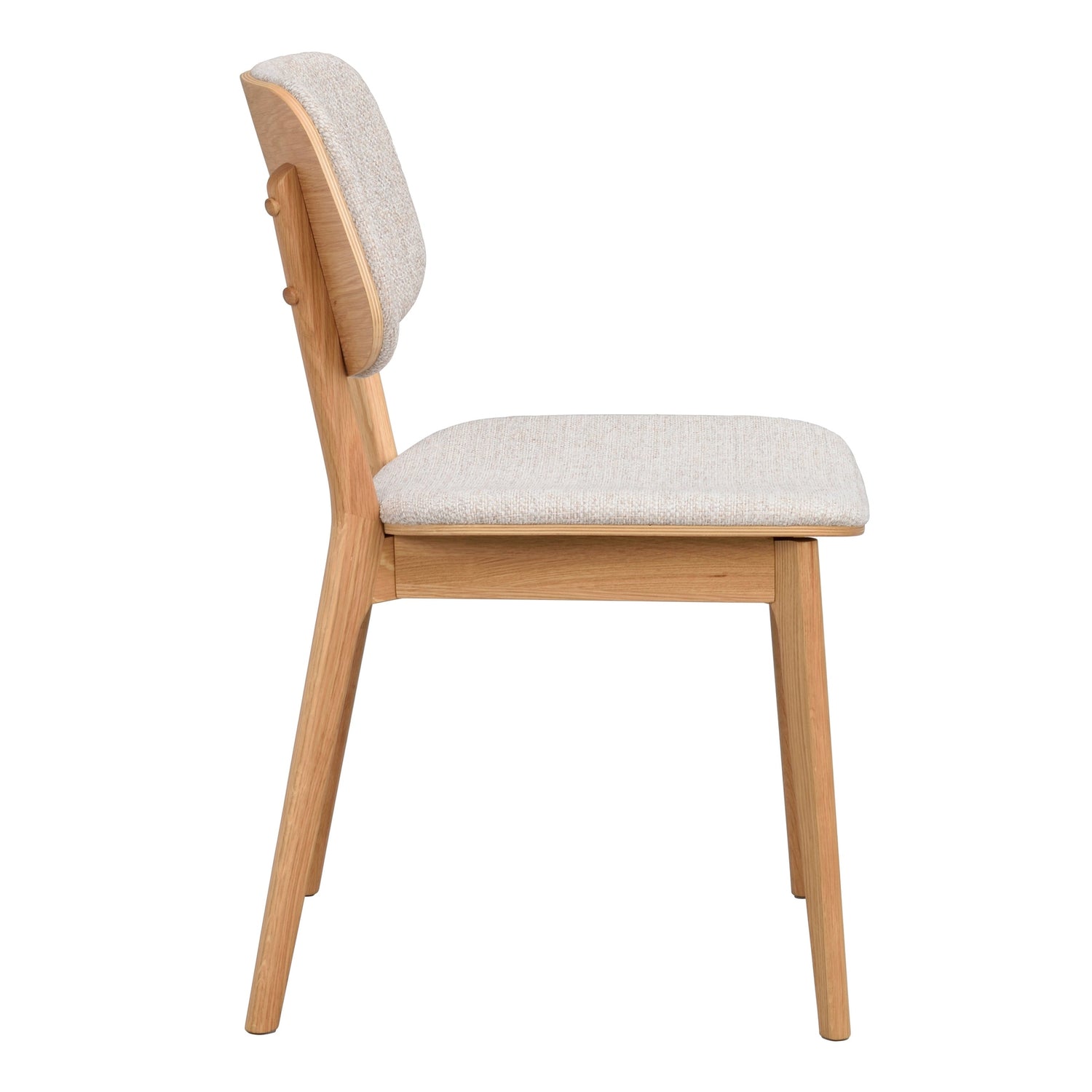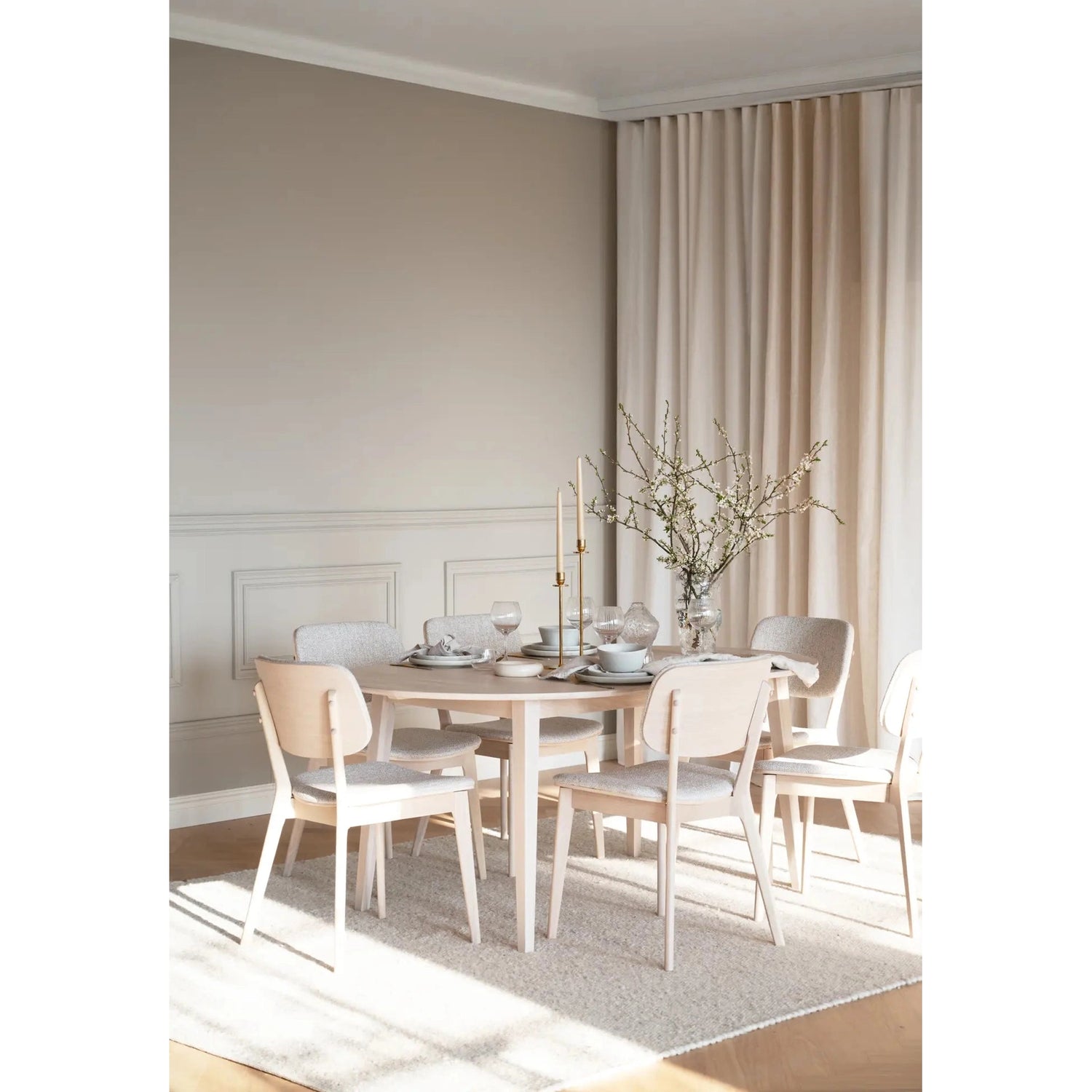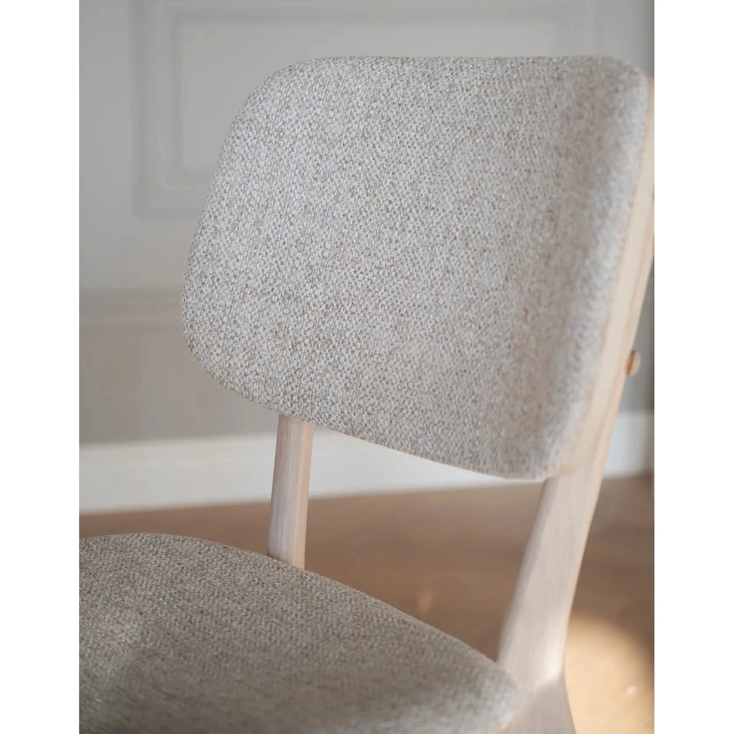 Stolen er trukket i et elegant beige stoff som enkelt kan kombineres med andre møbler. Den større ryggstøtten og de fine detaljene gir Barrett et mer sofistikert og eksklusivt uttrykk, samtidig som den bevarer sitt tidløse preg. En spisestol som passer like godt til moderne hjem som til klassiske interiører.