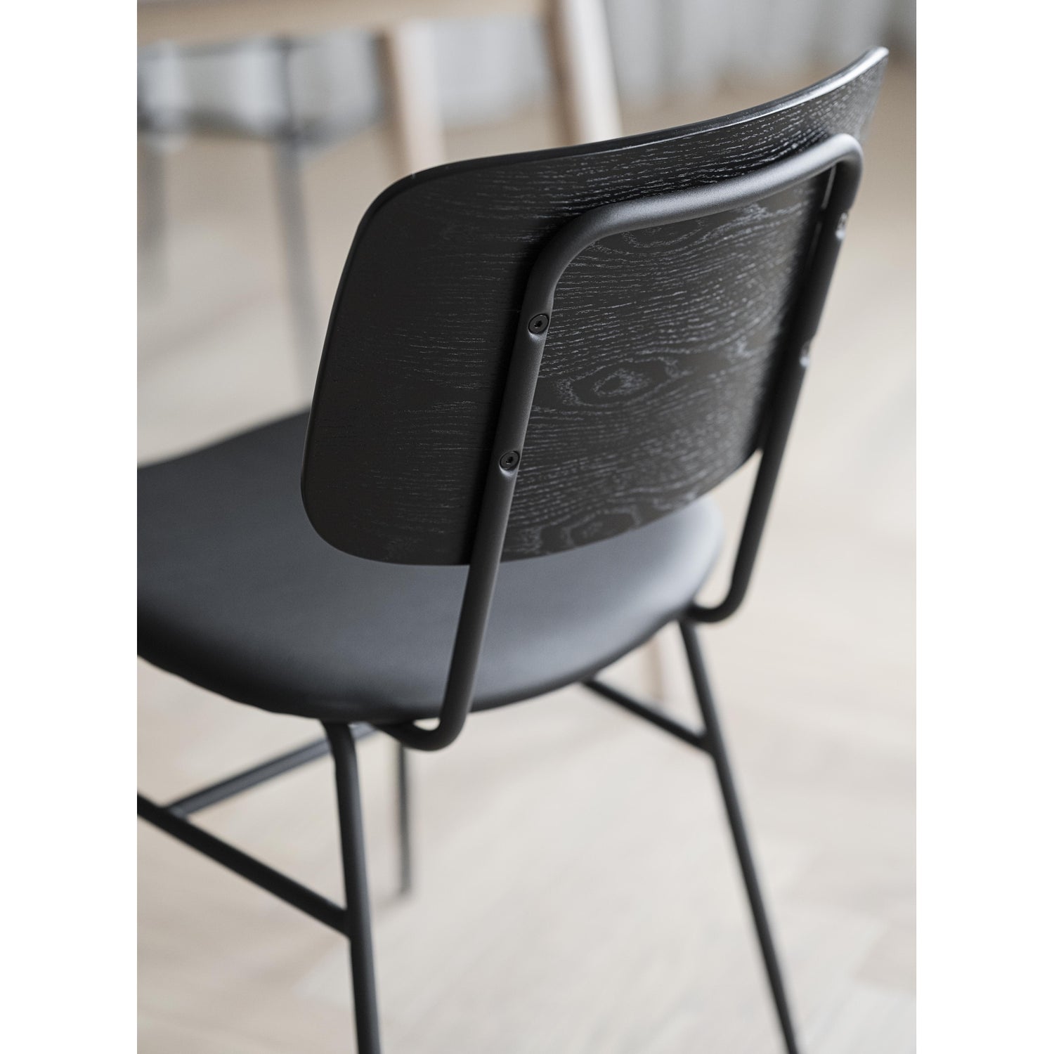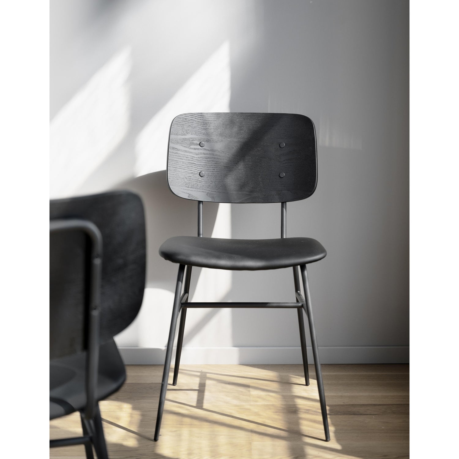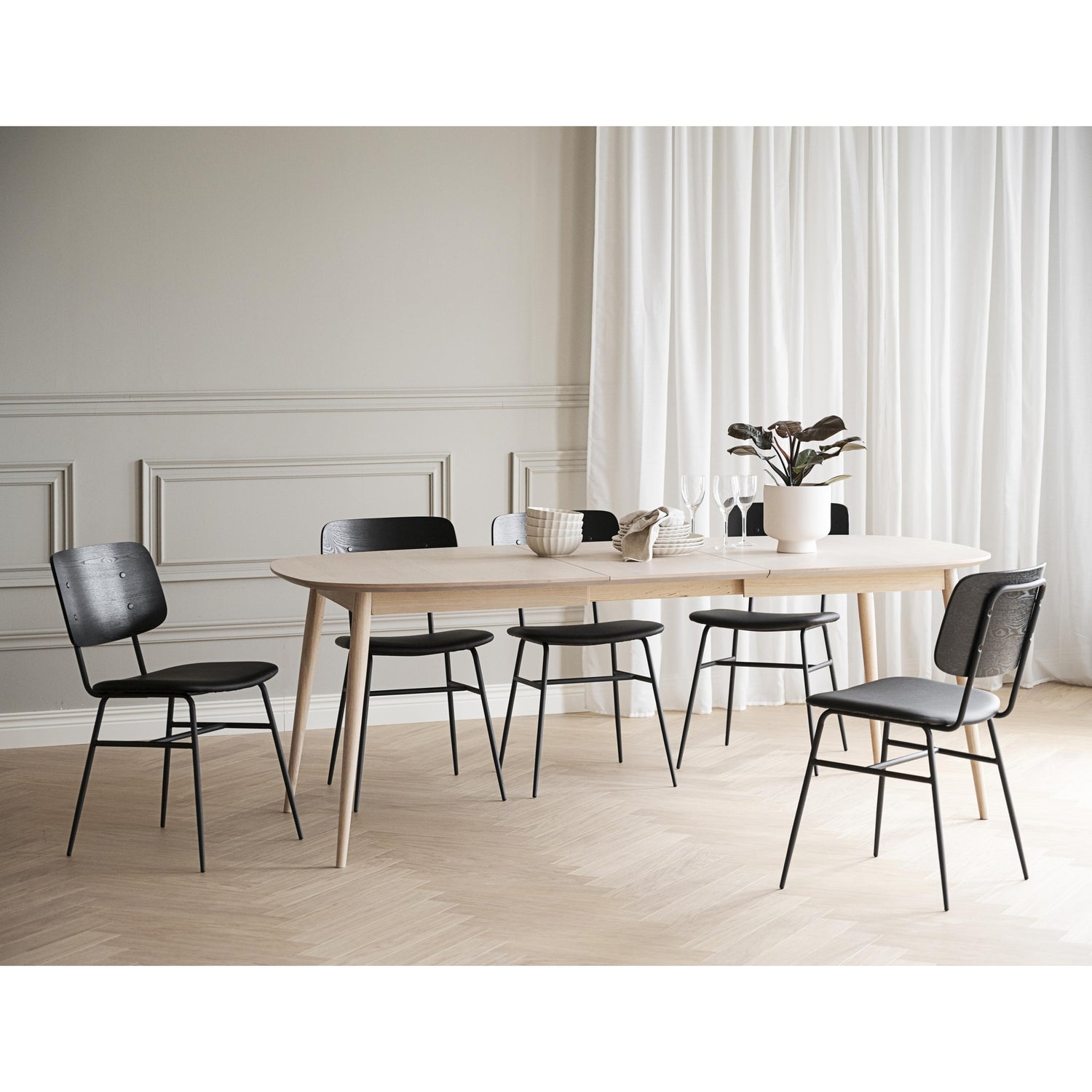 Oppdag Brent-stolen, en stilren og komfortabel stol som hever ethvert spisestue. Med en ryggplate i ask og en bred, polstret sete i kunstskinn, tilbyr Brent både stil og komfort. Den solide metallrammen har en rund profil, og bena har en elegant avsmalningseffekt som gir stolen et moderne preg.