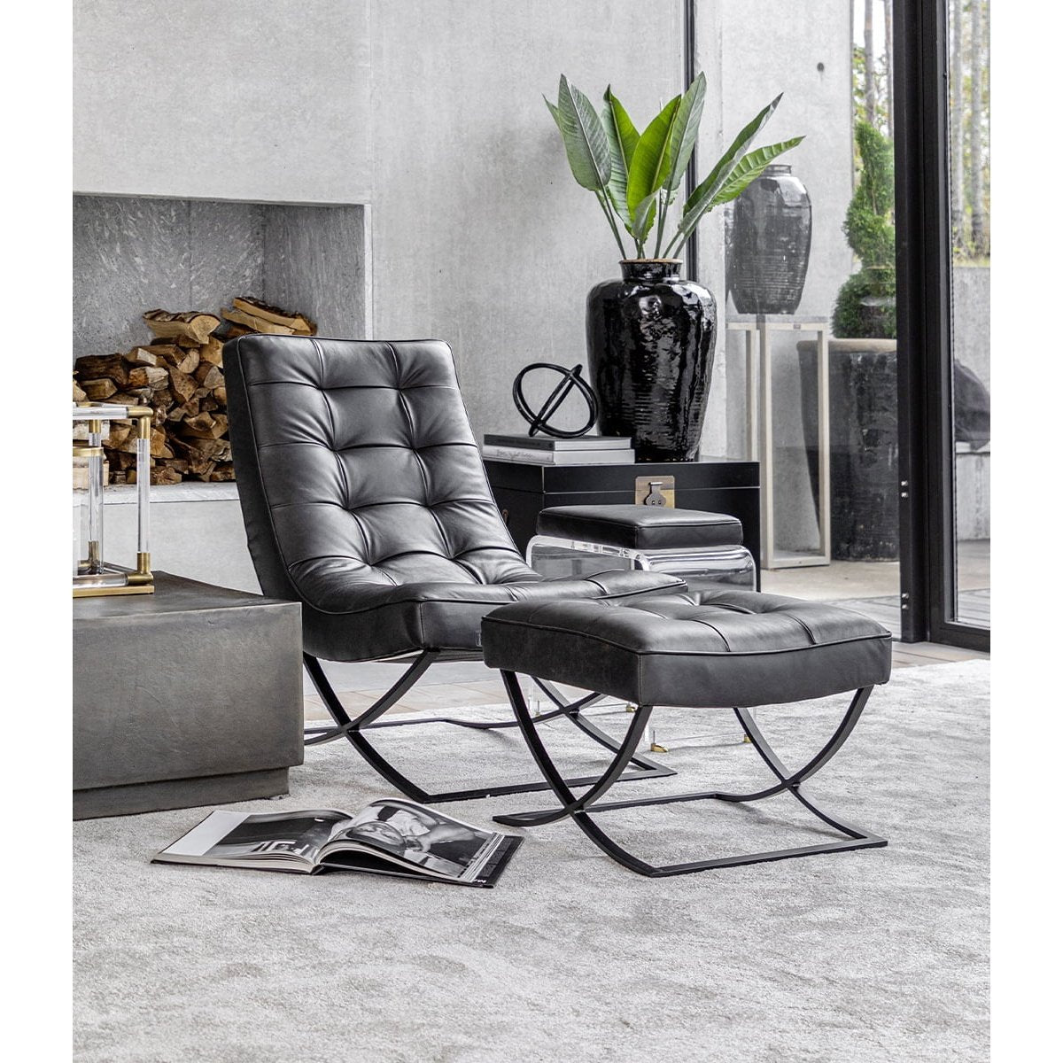 Brody i Mountain Black er en eksklusiv skinnstol som kombinerer høy komfort med tidløst design. Laget av førsteklasses fullkornsskinn fra Italia og Sør-Amerika, har denne stolen gjennomgått en omfattende garvningsprosess for en enestående finish. Med en solid ramme av metall og kryssfiner, samt kaldskum og syntetiske fibre i setet, gir Brody langvarig støtte og stil til ethvert rom. Match med en puff fra samme serie for et komplett uttrykk.