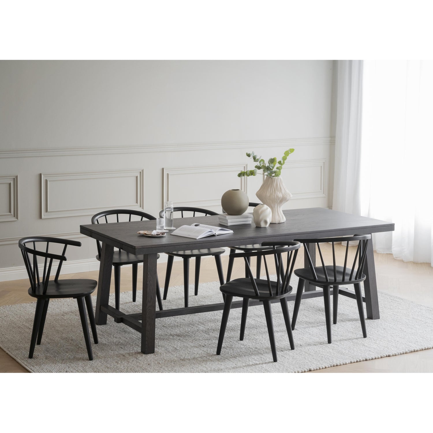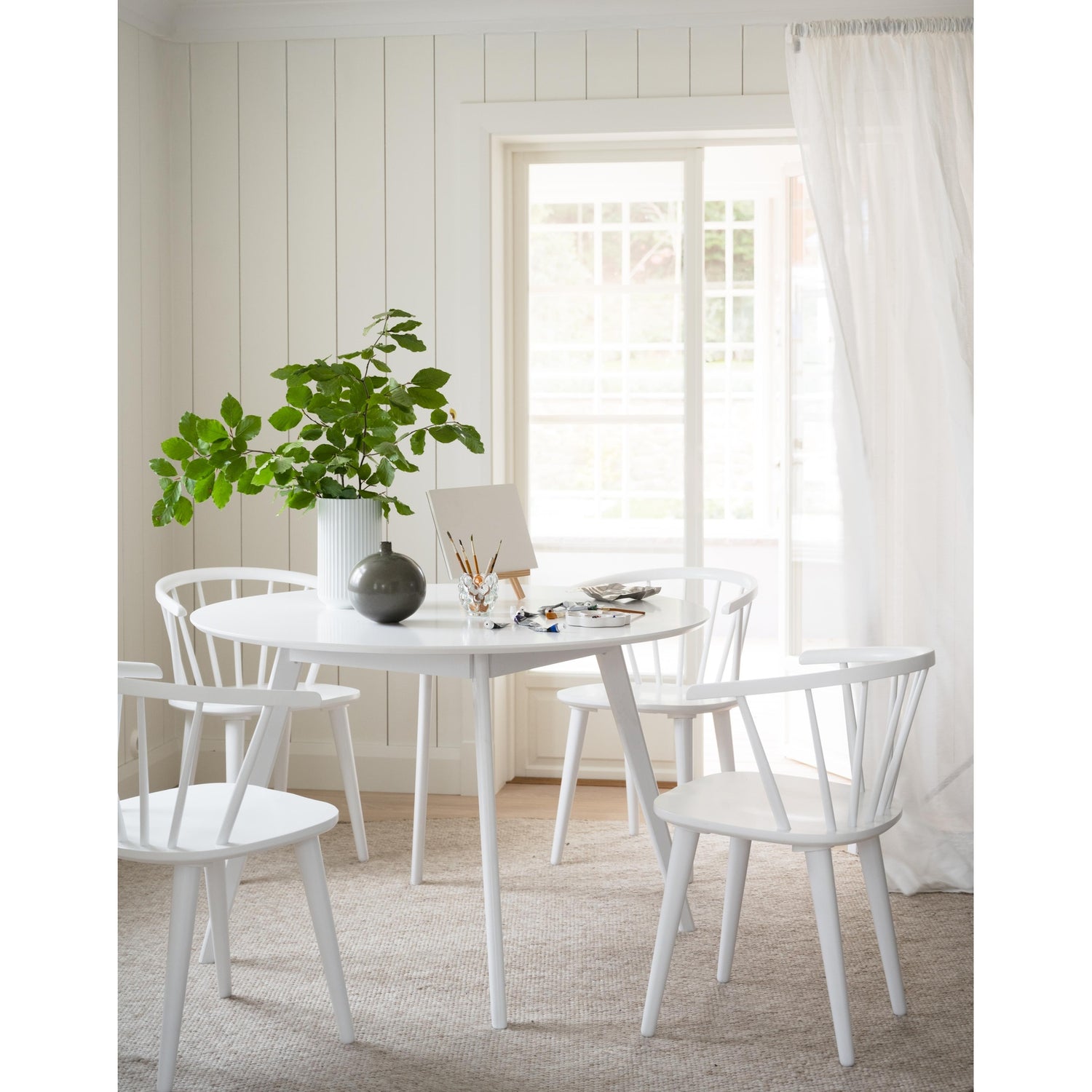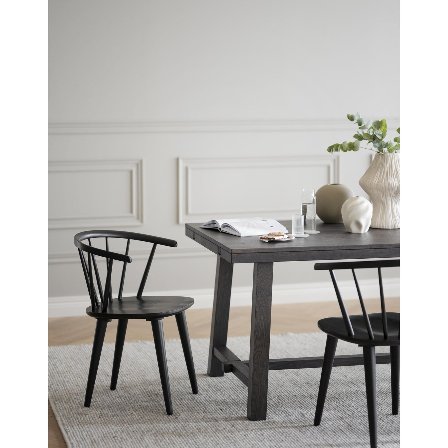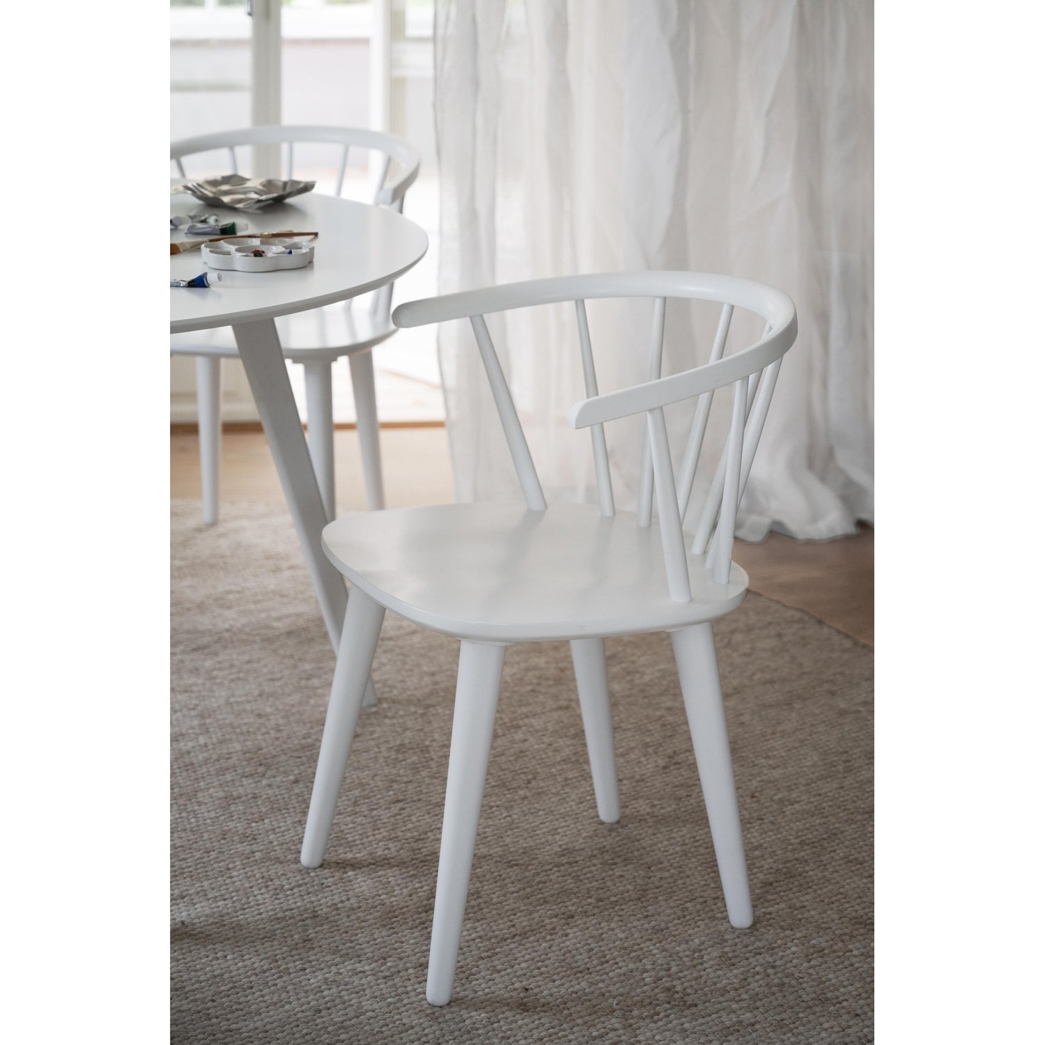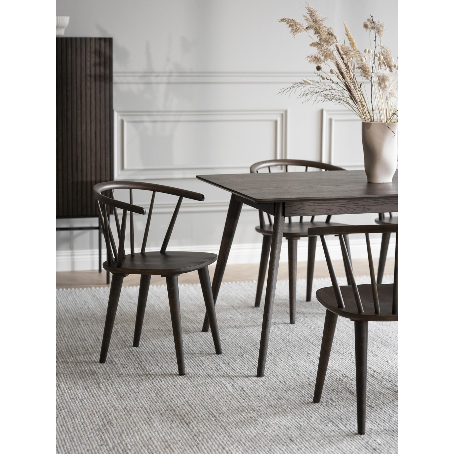Populær Carmen er en elegant formet, trestol av Windsor-type. Denne stolen har spiler som stråler ut fra det solide setet, noe som gir stolen både stabilitet og tilstedeværelse. Carmen-stolen er et tidløst design som passer perfekt sammen med mange forskjellige typer bord i ulike omgivelser. Enten du innreder stuen, spisestuen eller kontoret, vil Carmen-stolen tilføre en sofistikert touch til rommet. Med sin klassiske stil og robuste konstruksjon er denne stolen ikke bare et møbel, men også et stykke kunst som vil vare i mange år. Velg Carmen for å skape en innbydende atmosfære i hjemmet ditt.