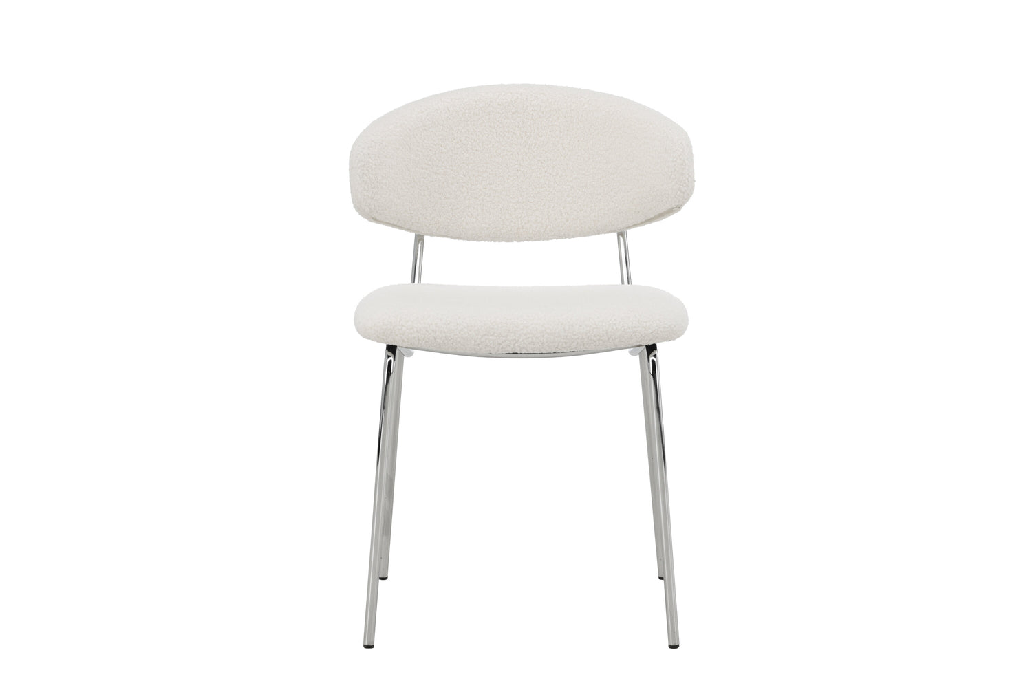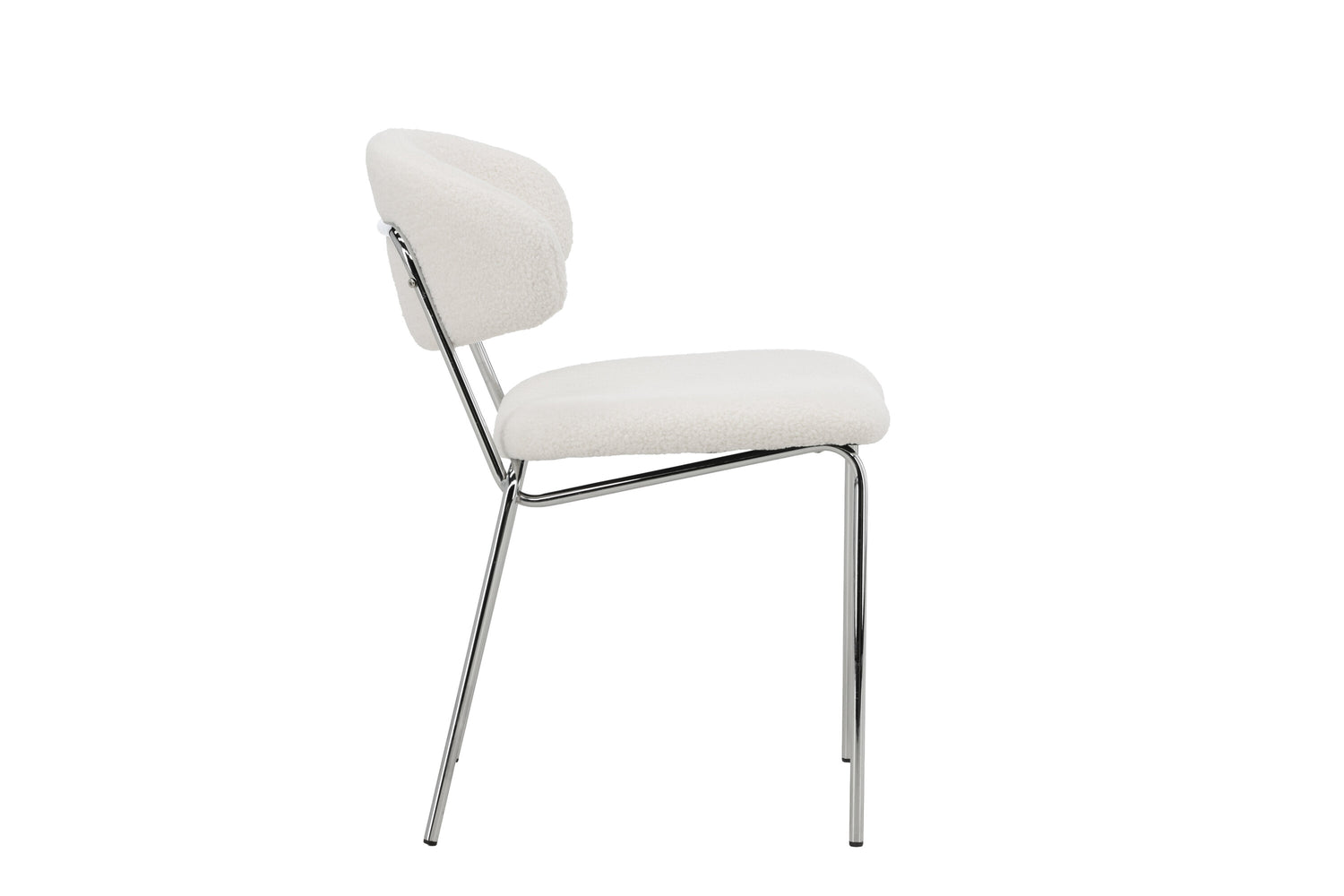 Chico er en moderne spisestol som kombinerer stilrent design med høy komfort. Sete og rygg er polstret i bouclé-stoff som gir en myk og innbydende følelse, samtidig som det tilfører tekstur til rommet.