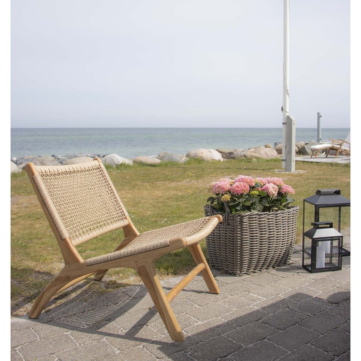 Denne elegante stolen kombinerer moderne design med naturlige materialer for å skape et tidløst møbel som passer perfekt både innendørs og utendørs. Setet er laget av slitesterk polyrattan, som gir en behagelig og fleksibel sitteopplevelse, samtidig som det er motstandsdyktig mot vær og vind. Benene er laget av høykvalitets teaktre, kjent for sin styrke og holdbarhet, samt sin vakre, naturlige glød. Denne stolen er ikke bare et funksjonelt møbel, men også et stilig tillegg til enhver innredning, enten det er på terrassen, i hagen eller i stuen.