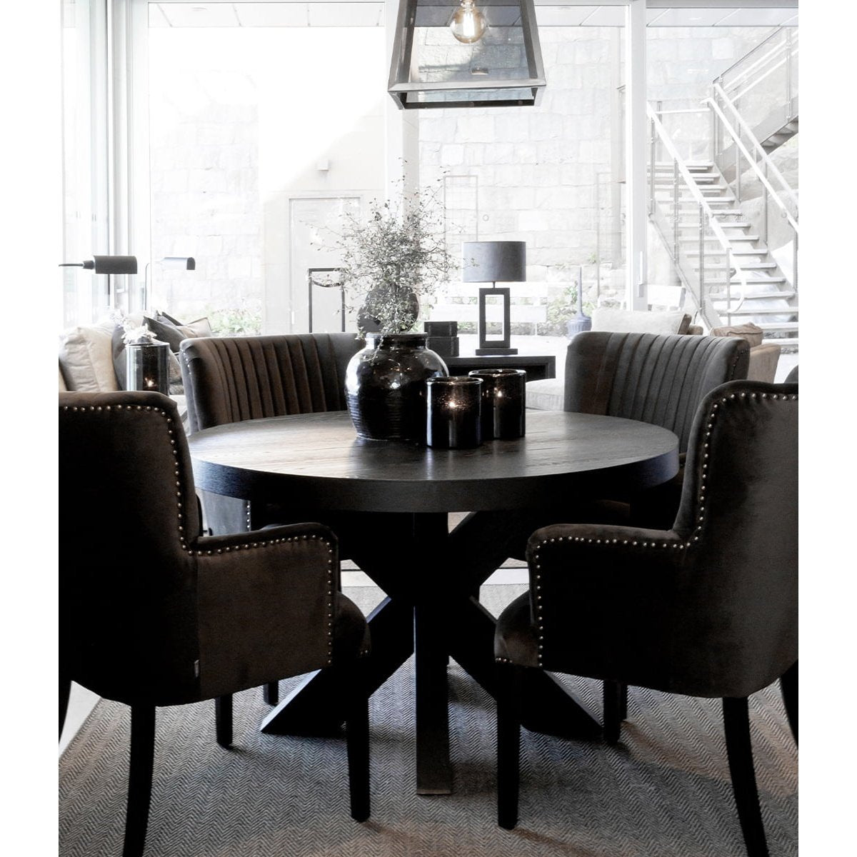 Dylan er en komfortabel og elegant spisestol med dekorative nitter. Stolen passer inn i mange forskjellige hjem og miljøer. Rammen på stolen består av massivt tre og kryssfiner med elastisk bånd. Ben i svart asketre. Sete og rygg består av kaldskum og syntetiske fibre. Dekorative nitter er i antikkfarget metall. Dylan er tilgjengelig i to forskjellige design. Linen Sand - 100% lin.