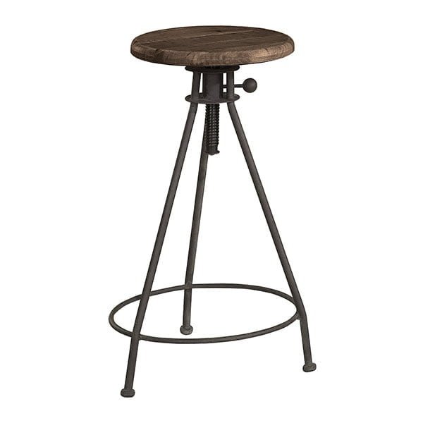Barstolen Elmwood kombinerer rustikk sjarm med vintage stil. Laget av resirkulert alm tre fra Sentral-Asia, gir denne justerbare stolen et solid preg til ethvert rom. Alm treet eldes vakkert, og dets ubehandlede utseende med små uregelmessigheter gir hvert møbel sin unike karakter. Ideell for innendørs bruk, og en del av en serie med salongbord, spisebord og skap.