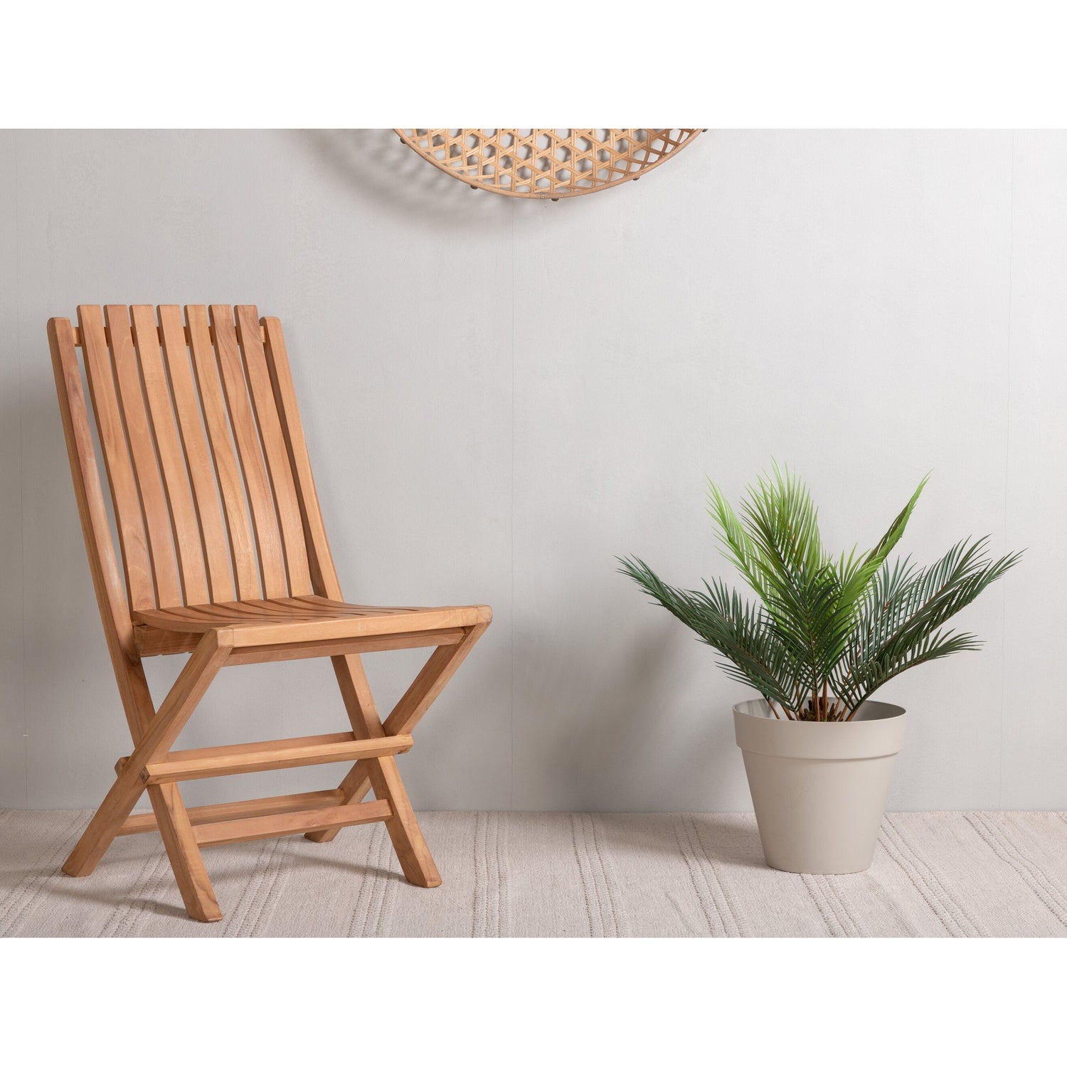 Ghana spisestol er laget av teak og er perfekt for hagen, man kan si - en ekte klassiker! Det ribbede designet er like moderne som stilfullt, og den sammenleggbare funksjonen er utrolig praktisk. Her får du en stol som du enkelt kan skape koselige omgivelser med. Ta med kaffen ut i hagen og nyt solfylte dager! Stolen er stablerbar.