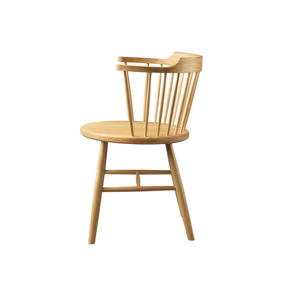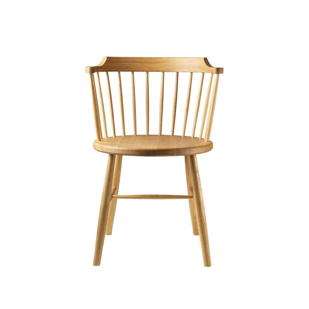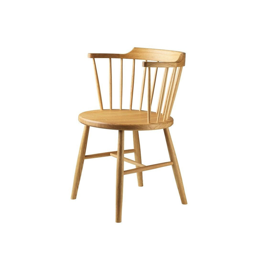 J18-stolen, designet av Børge Mogensen i 1945, er en tidløs klassiker som kombinerer funksjonalitet og skandinavisk enkelhet. Denne stolen, som er inspirert av de tradisjonelle Windsor-stolene fra 1700-tallet, er et mesterverk i minimalistisk design. Med et solid ryggstøtte som flyter sømløst inn i armlenene, passer den perfekt under de fleste spisebord. Det skålformede tresetet er ergonomisk utformet med en lett bakoverhelling for optimal sittekomfort.