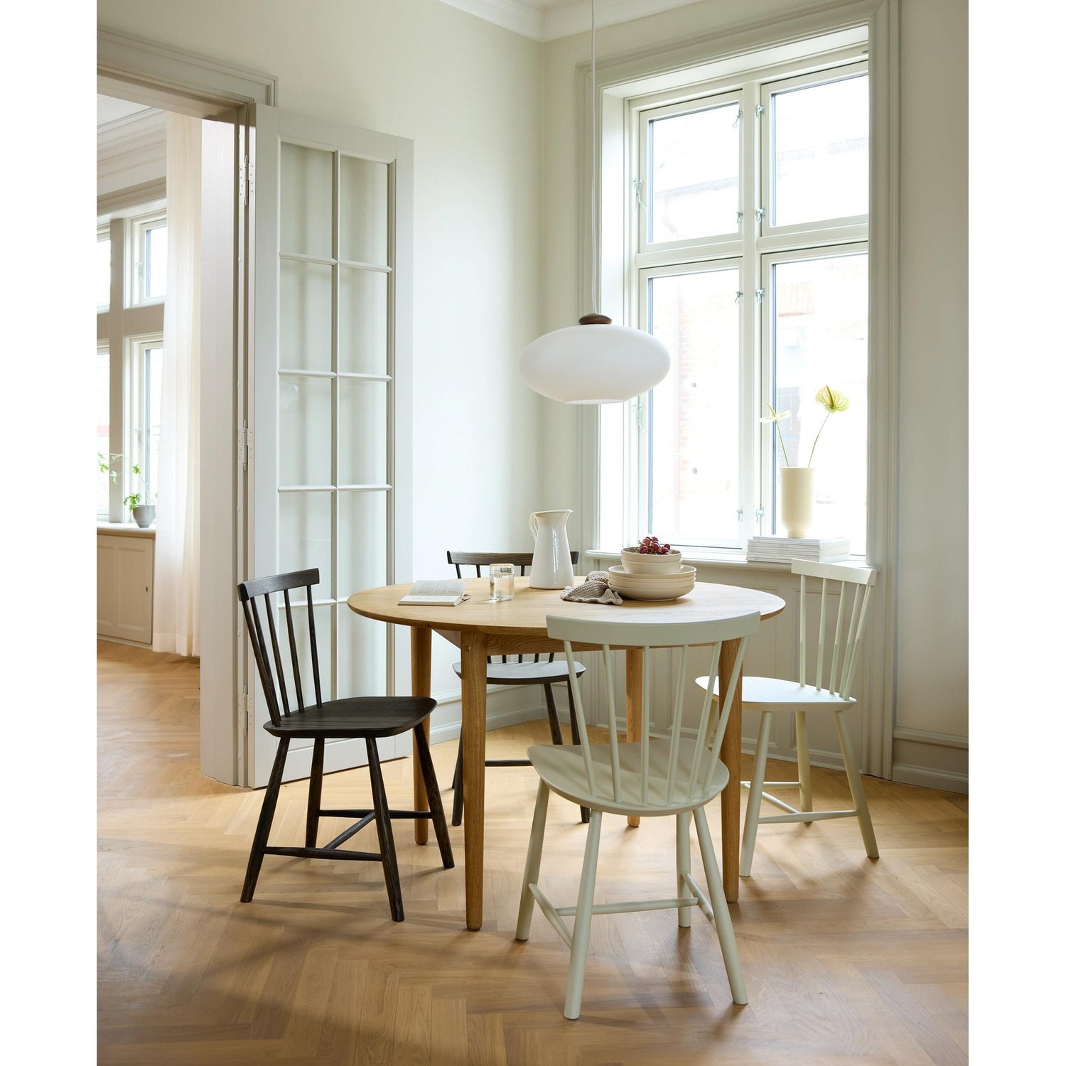 J46 spisestol med spile-rygg, designet av Poul Volther i 1956, er en av FDB Møblers mest solgte produkter gjennom tidene. Denne tidløse klassikeren har vært blant de mest populære stolene i Danmark i flere tiår. Stolen utmerker seg med sitt elegante design og høye sittekomfort, som gjør den like godt egnet som kjøkkenstol som til spisestuen. Laget med fokus på både funksjonalitet og estetikk, er J46 en perfekt kombinasjon av skandinavisk enkelhet og praktisk bruk.