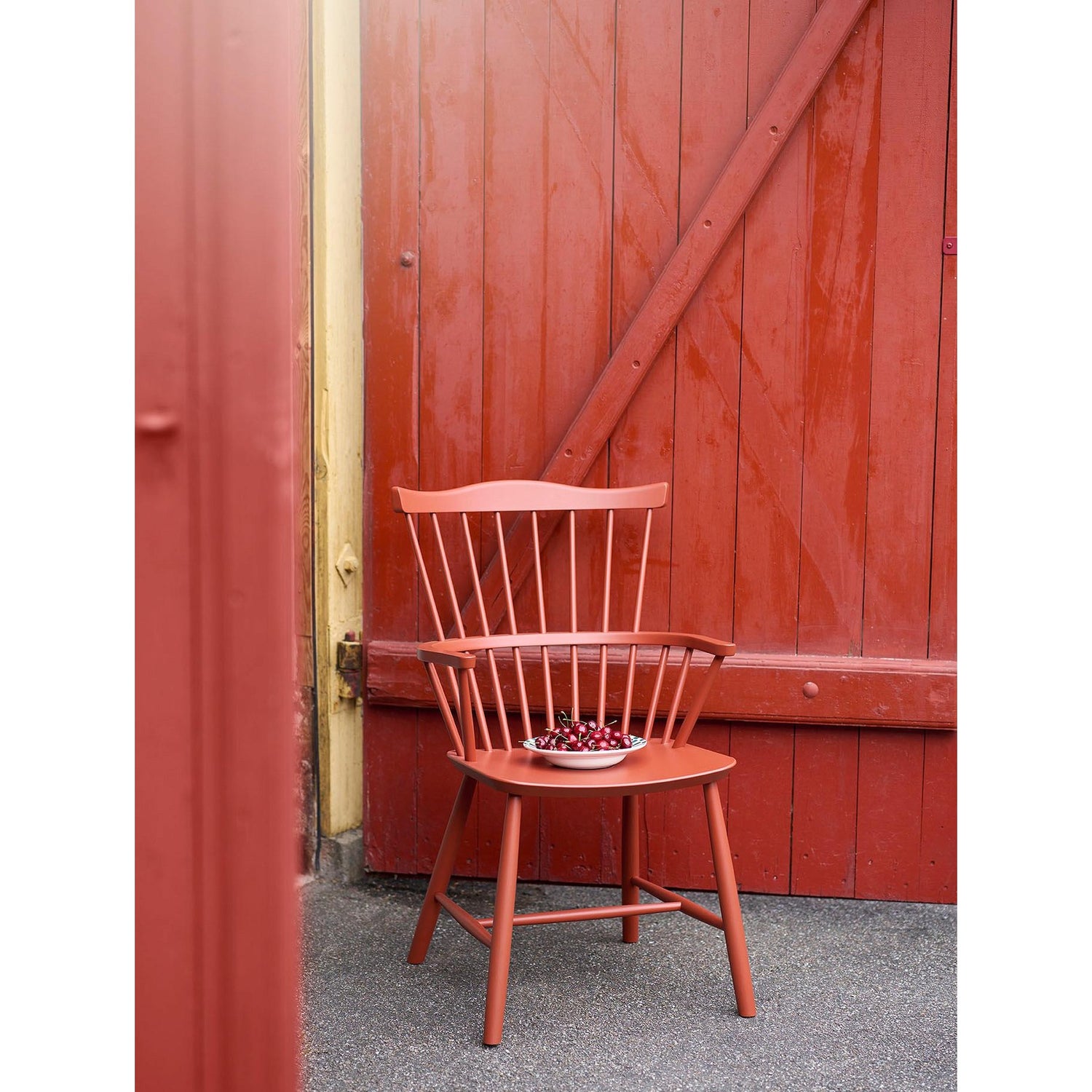 Børge Mogensen hentet inspirasjon fra historiske klassikere da han designet J52B i 1952, hans moderne tolkning av den engelske Windsor-stolen. Med røtter i 1500-tallets England var Windsor-stolen kjent for sin solide konstruksjon og høye komfort. Mogensen, som var sjefsdesigner hos FDB Møbler, forenklet uttrykket ved å bruke rene og enkle spiler, noe som resulterte i en stol som kombinerer funksjonalitet og estetikk på en tidløs måte.