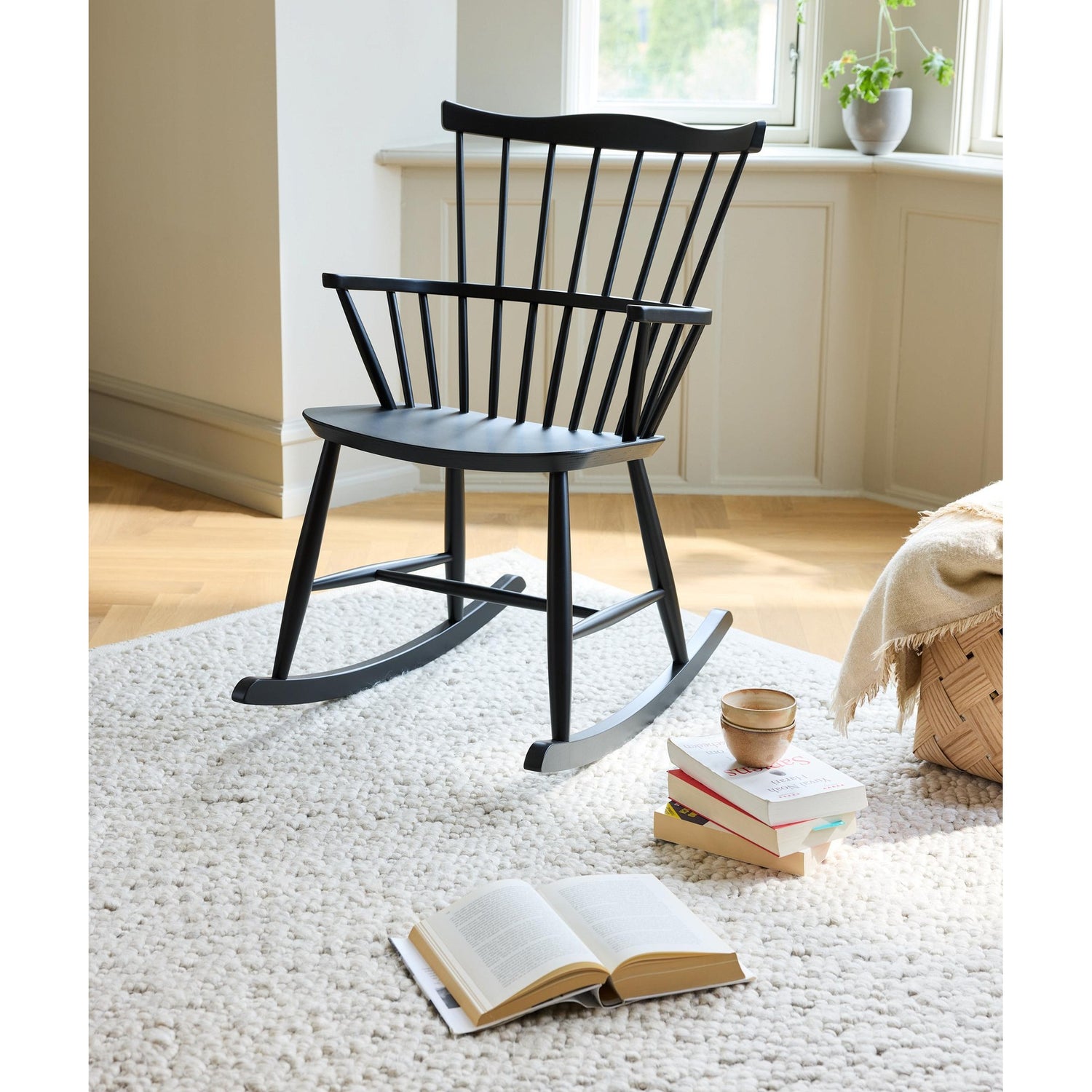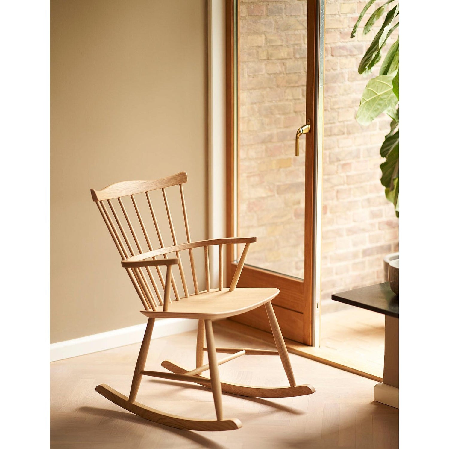 Børge Mogensen og Hans Wegner designet begge gyngestoler for FDB Møbler, og i 1950-årene tok Mogensen komforten til den allerede ikoniske Windsor-stolen til et nytt nivå ved å legge til gyngestoler og skape J52G-gyngestolen. Denne stolen reflekterer Mogensens elegante og rene linjer, samtidig som den leverer optimal komfort.