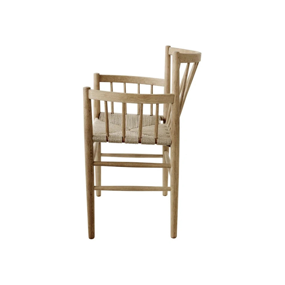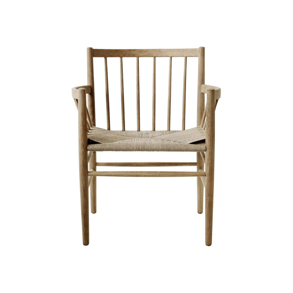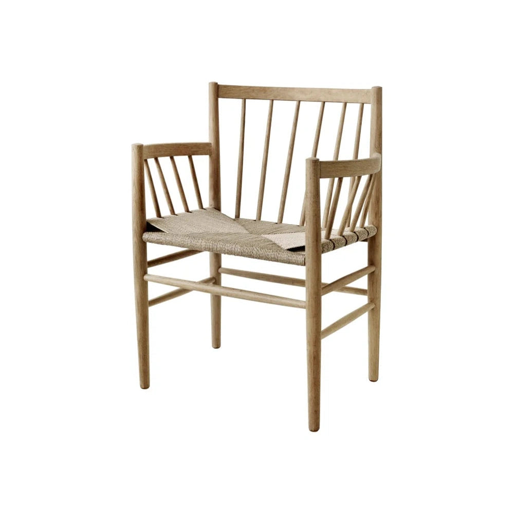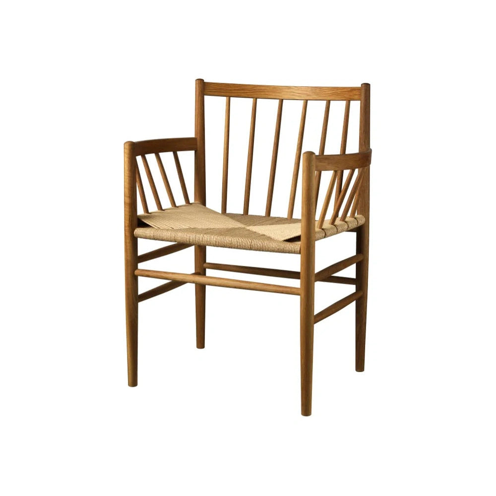 J81 er en klassisk spisebordsstol fra den ikoniske Fletteserien designet av Jørgen Bækmark på 1950-tallet. Denne versjonen, med armlener, er både funksjonell og elegant, og kan brukes som en frittstående stol i ethvert rom. Med sitt tidløse design og utmerkede sittekomfort har J81 overlevd tidens tann og forblir et populært valg for moderne hjem.